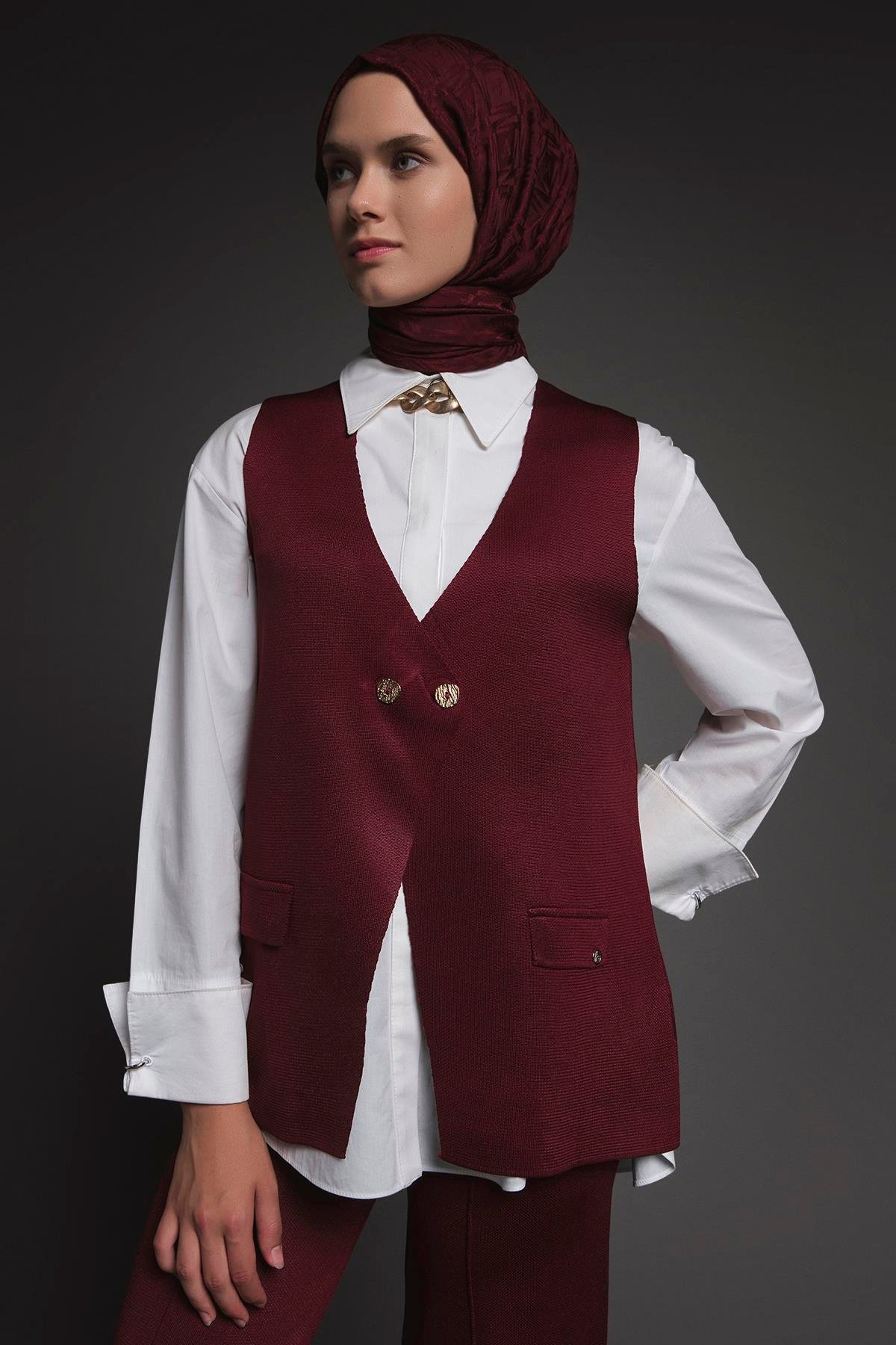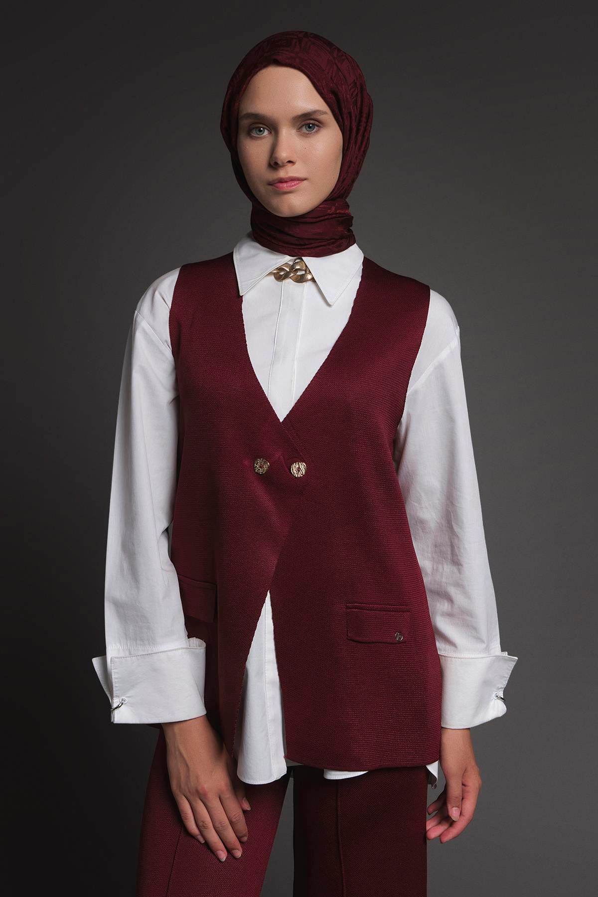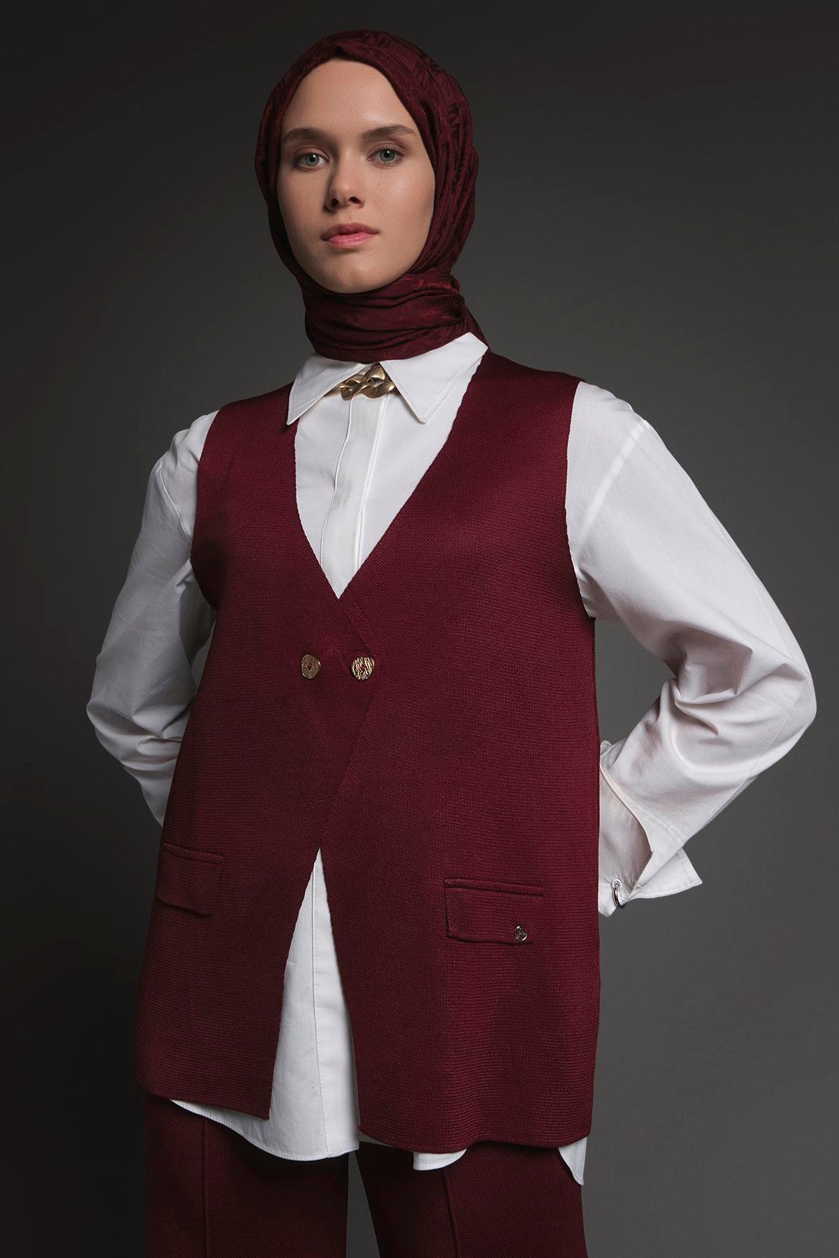Armine Trend 25YTD6117 Çift Düğme Detaylı Yelekli Takım - Bordo (350344909)