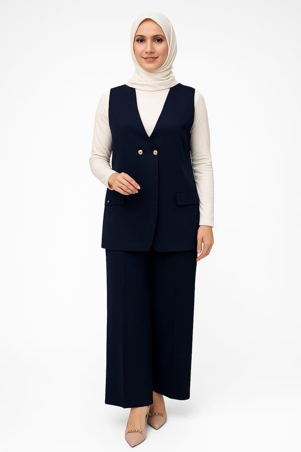 Armine Trend 25YTD6117 Çift Düğme Detaylı Yelekli Takım - Lacivert