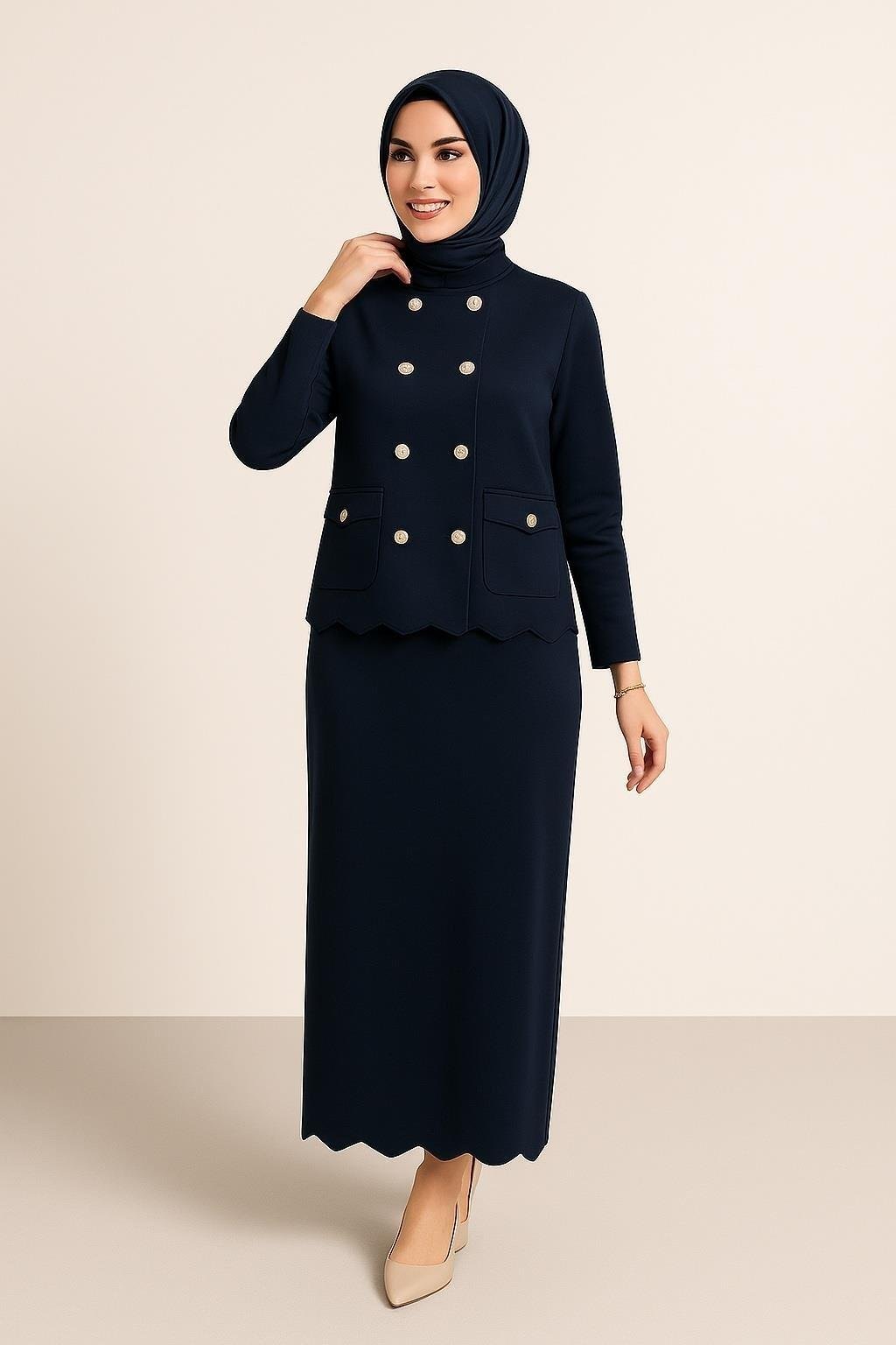 Armine Trend 25YTD6118 Çift Düğme Detaylı Etekli Takım - Lacivert (350344910)