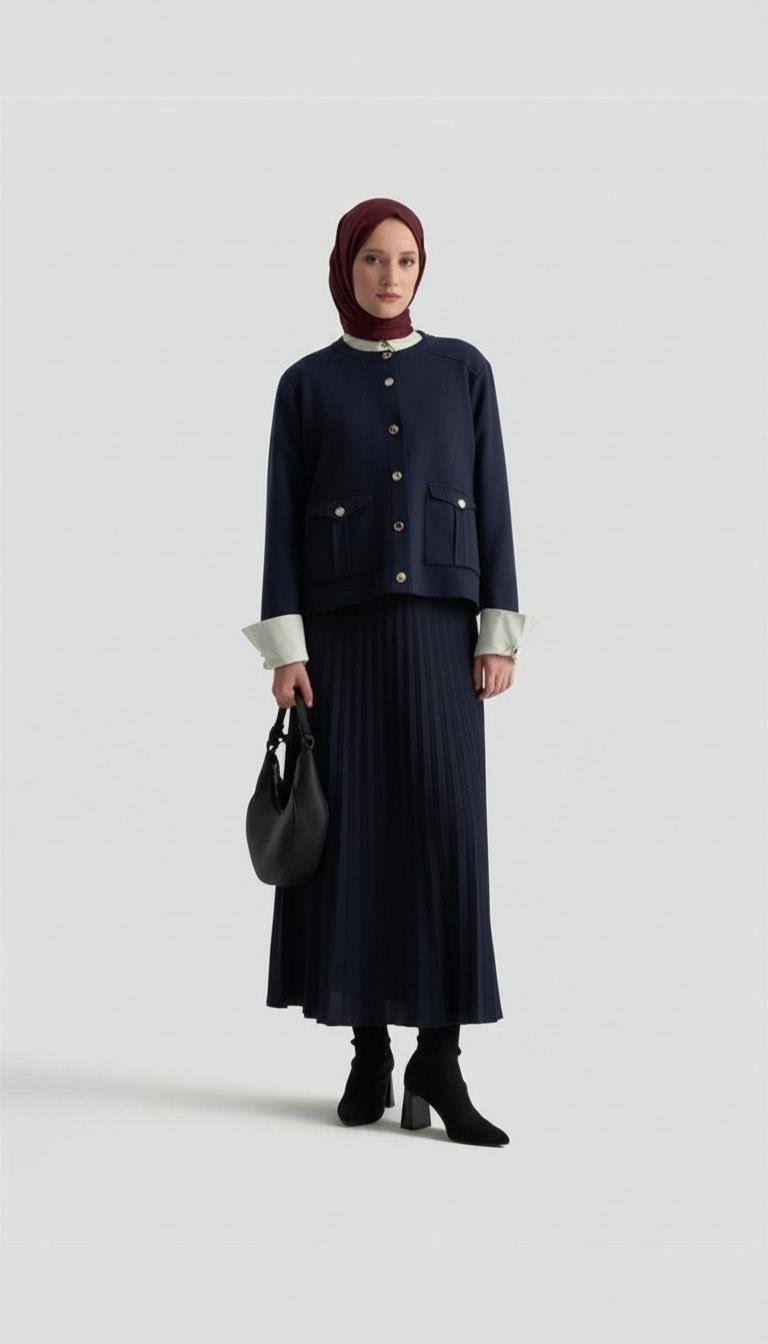 Armine Trend 25YTD6120 Düğmeli Etekli Takım - Lacivert
