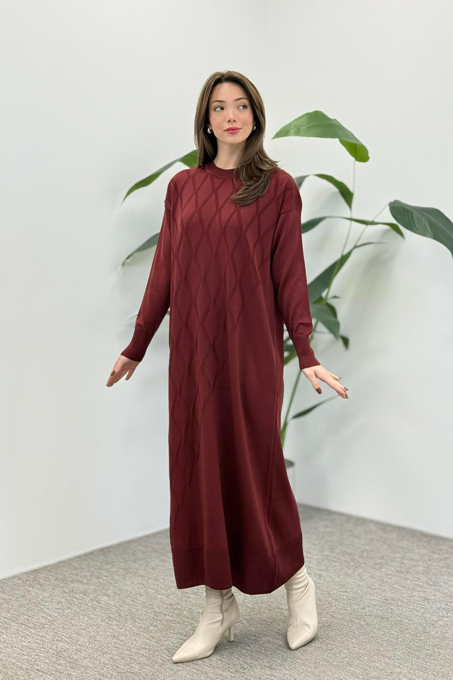 Armine Trend 25YTD957 Geniş Baklava Desen Elbise - Bordo (363344901)