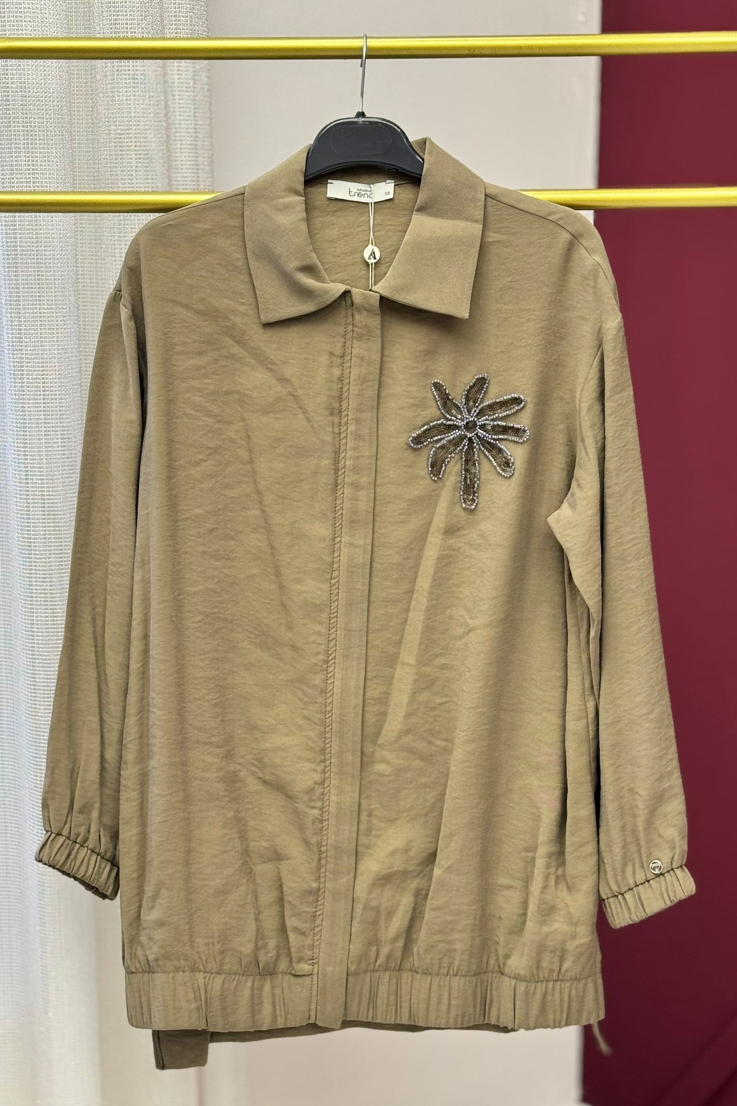 Armine Trend 26YT405 Yaka Palmiye Taş İşlemeli Tunik - Yağ Yeşili