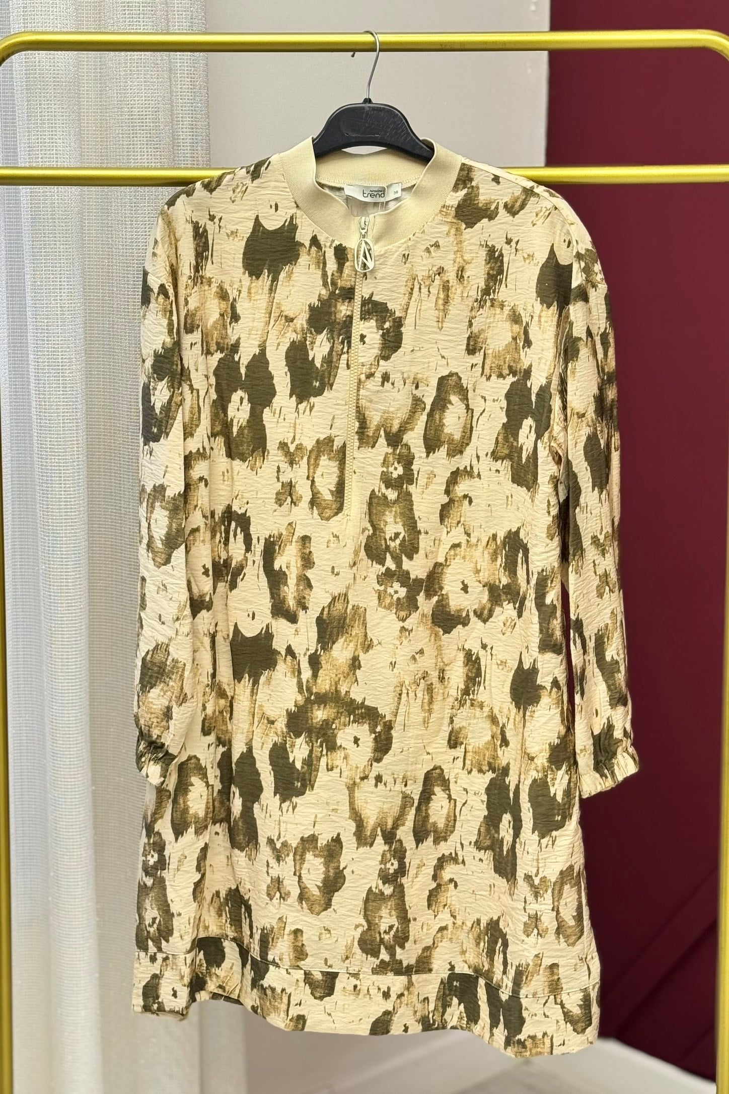 Armine Trend 26YT473 Yarım Fermuar Detay Desenli Tunik - Ekru