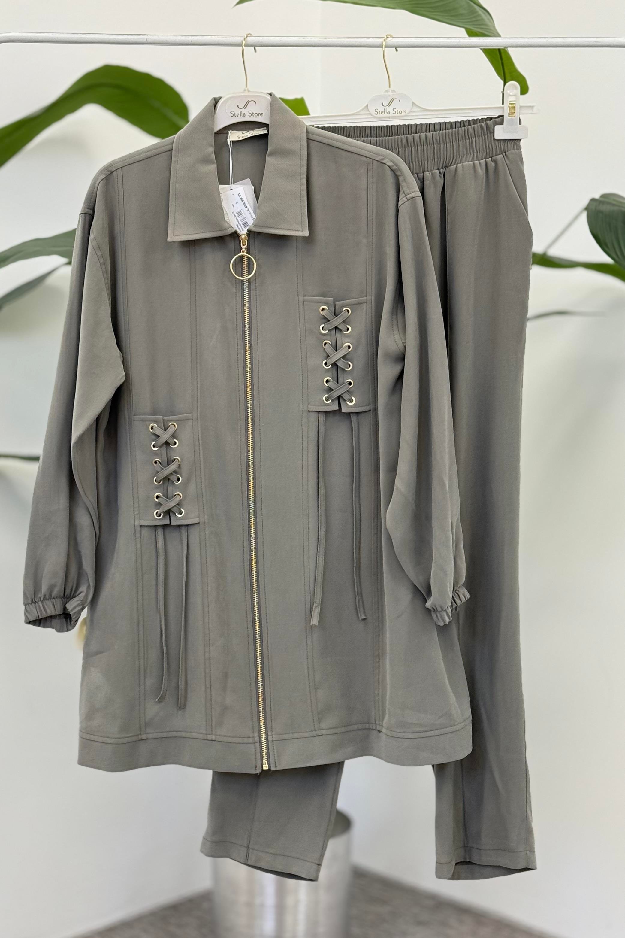 Bağcık Detaylı Pantolonlu Takım 1378 - Haki