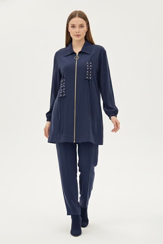 Bağcık Detaylı Pantolonlu Takım 1378 - Lacivert