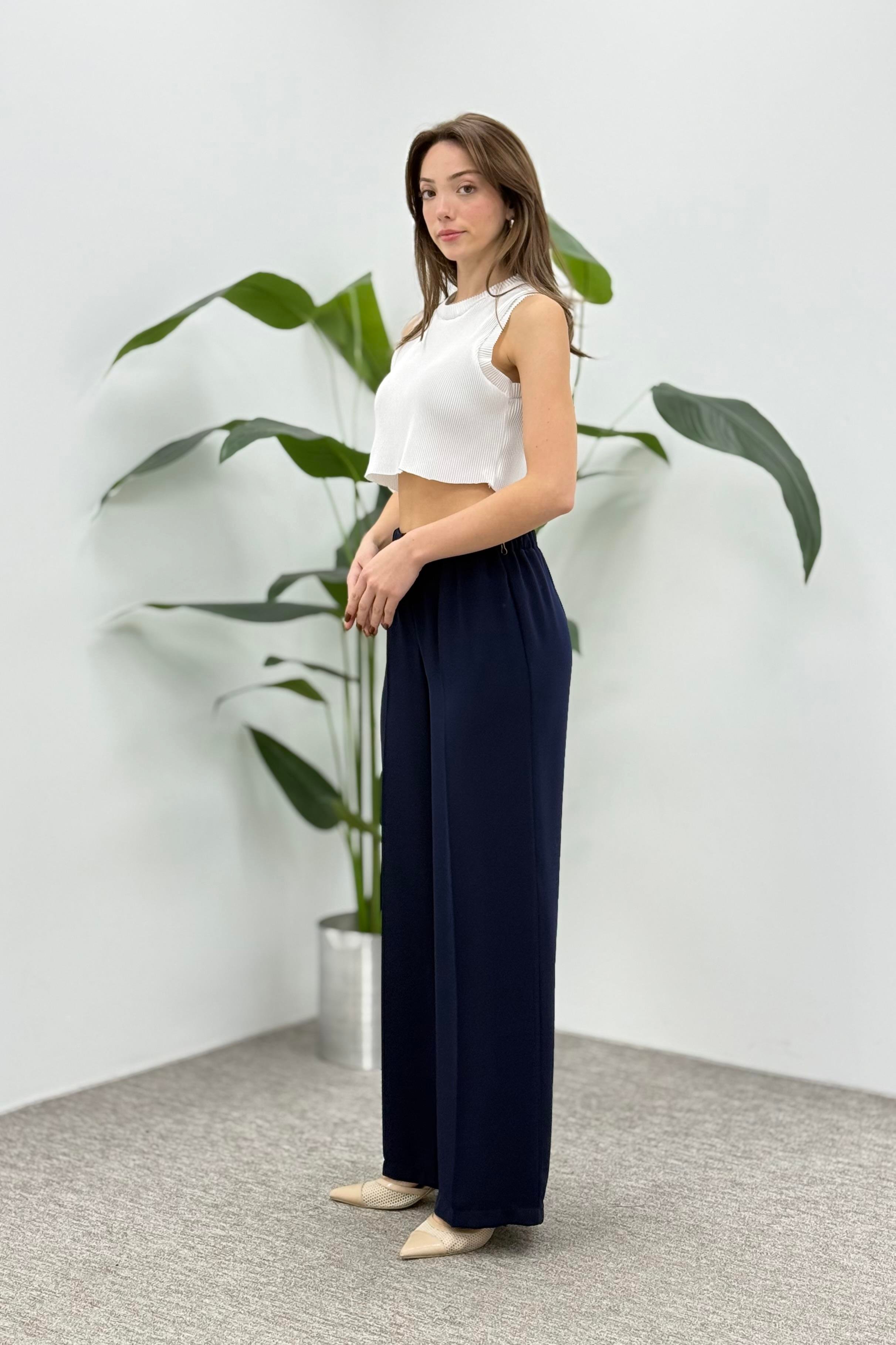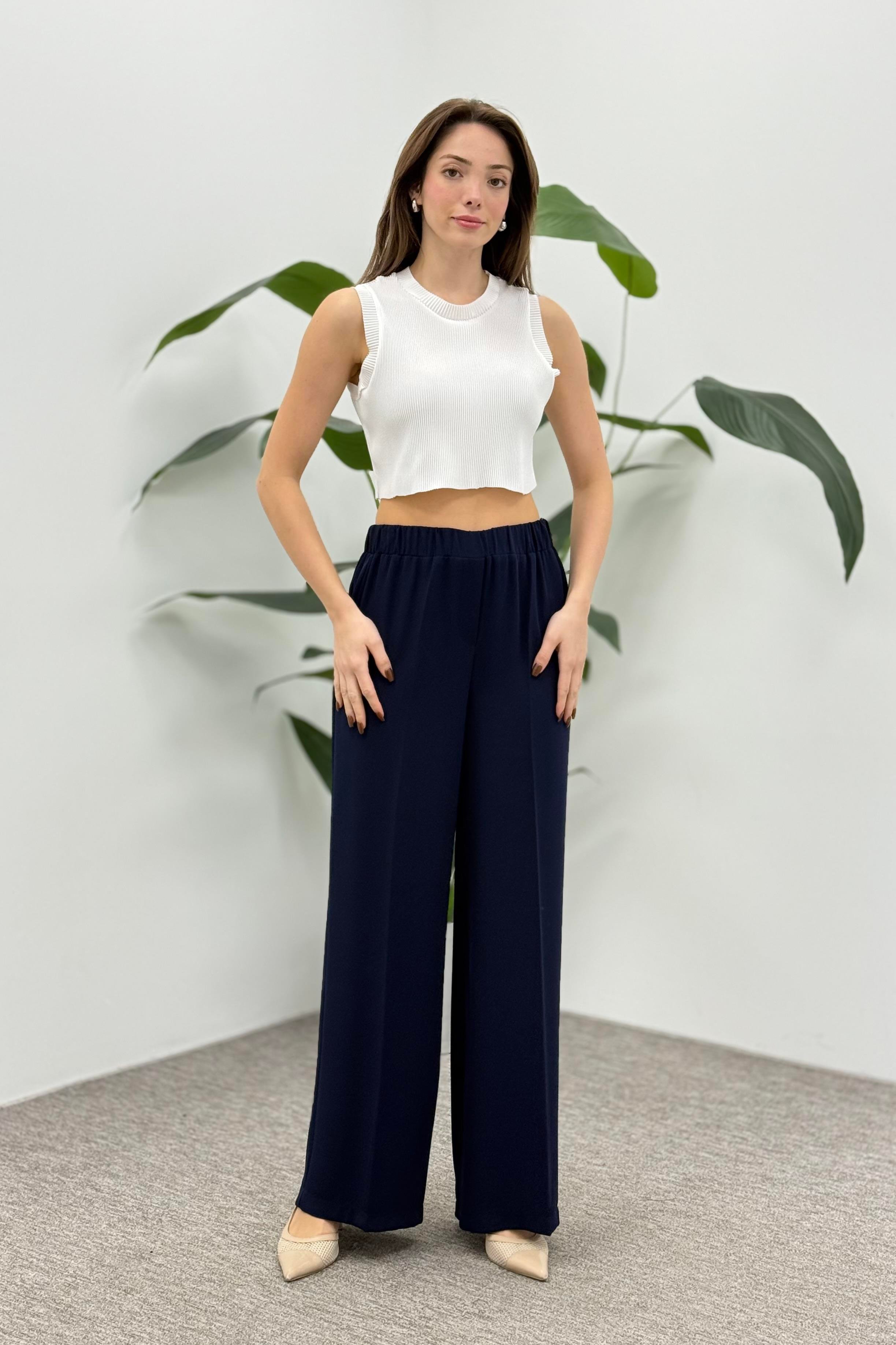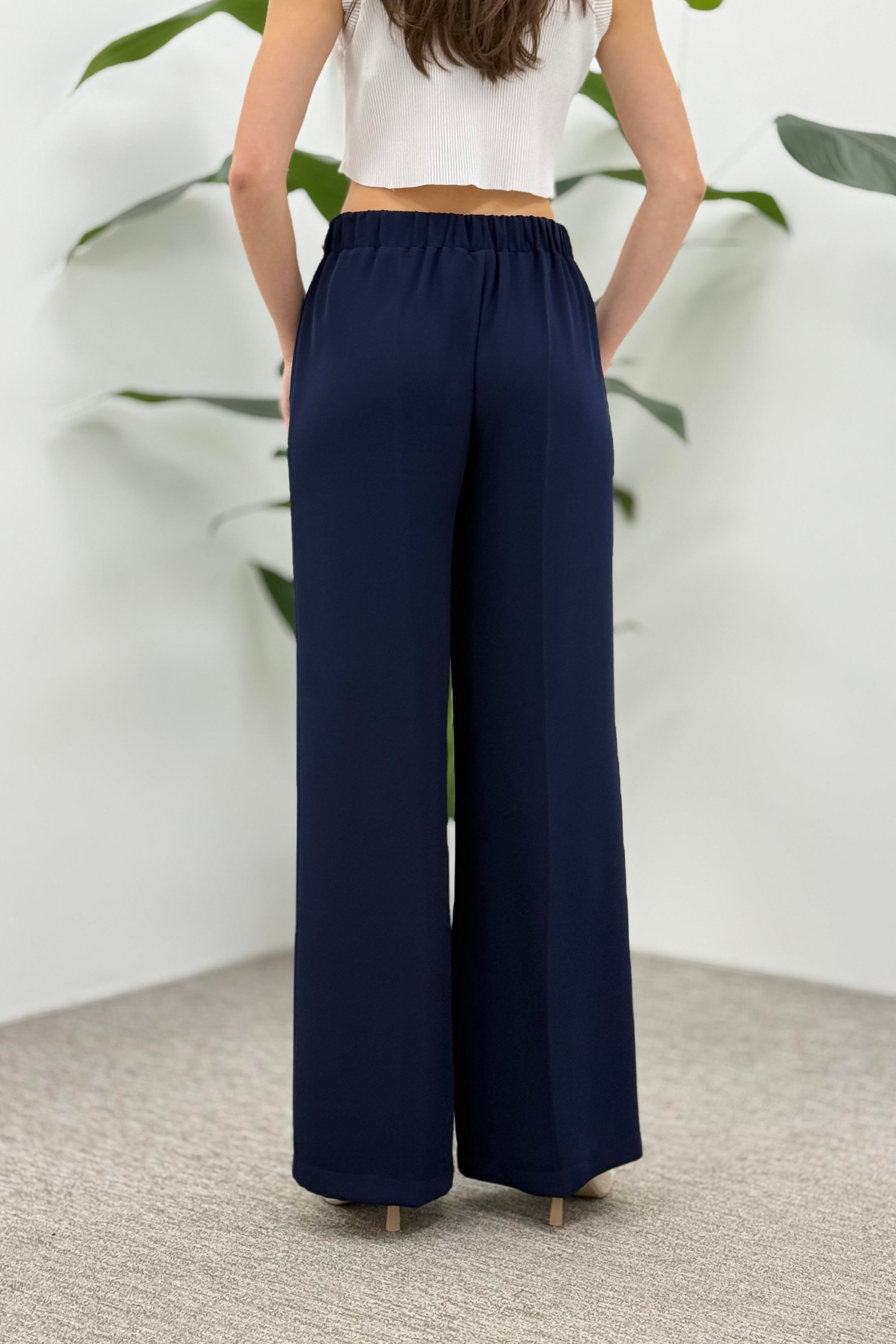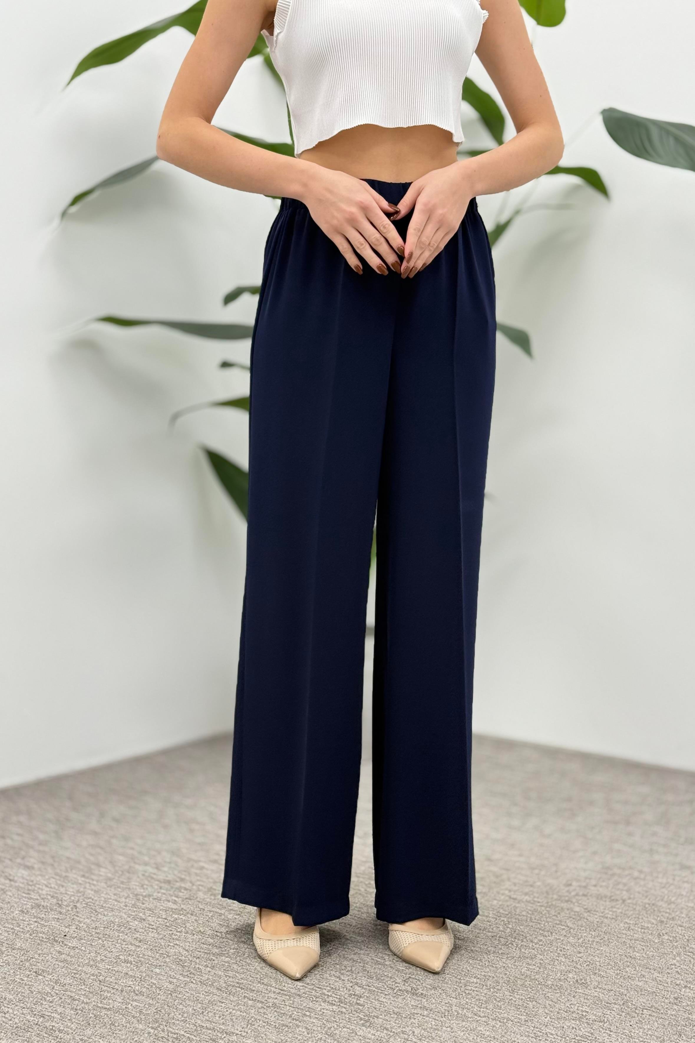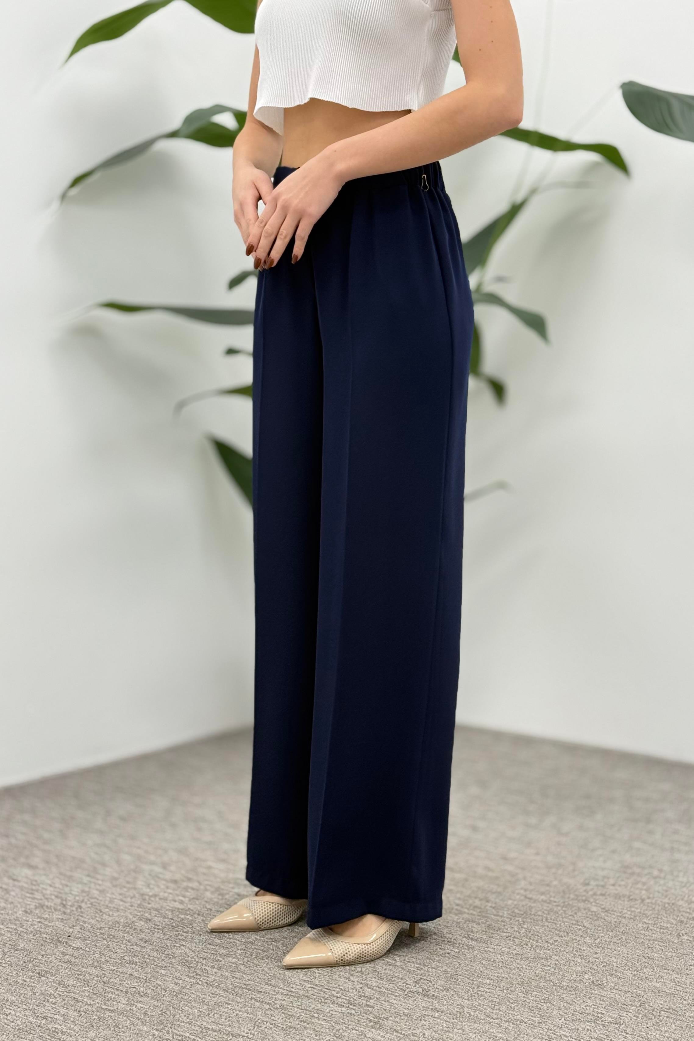 Beli Lastikli Bol Paça Krep Pantolon 1017 - Lacivert (361337803)