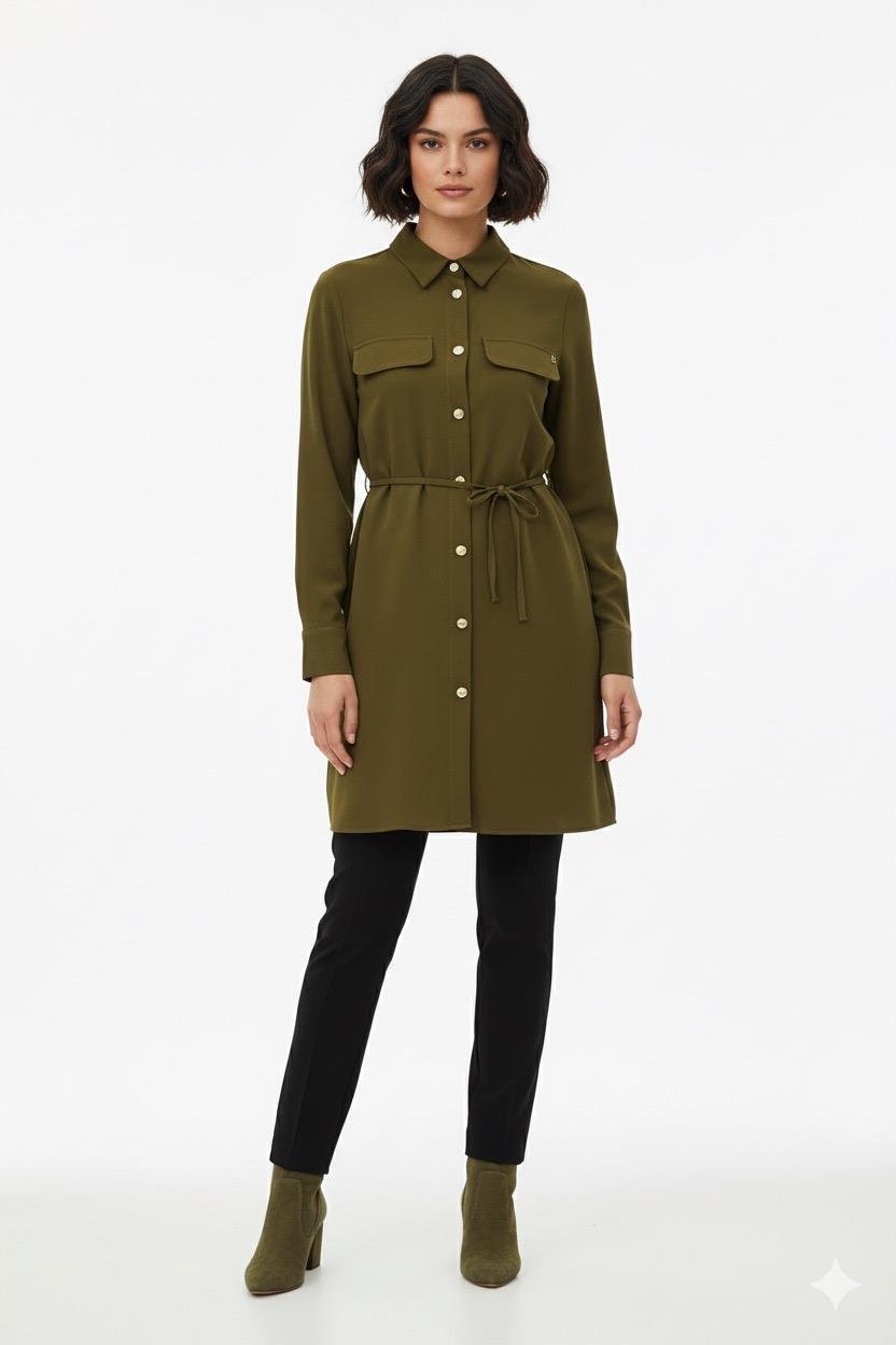 Belli 25K4001 İnce Kemer Detay Tunik - Yağ Yeşili