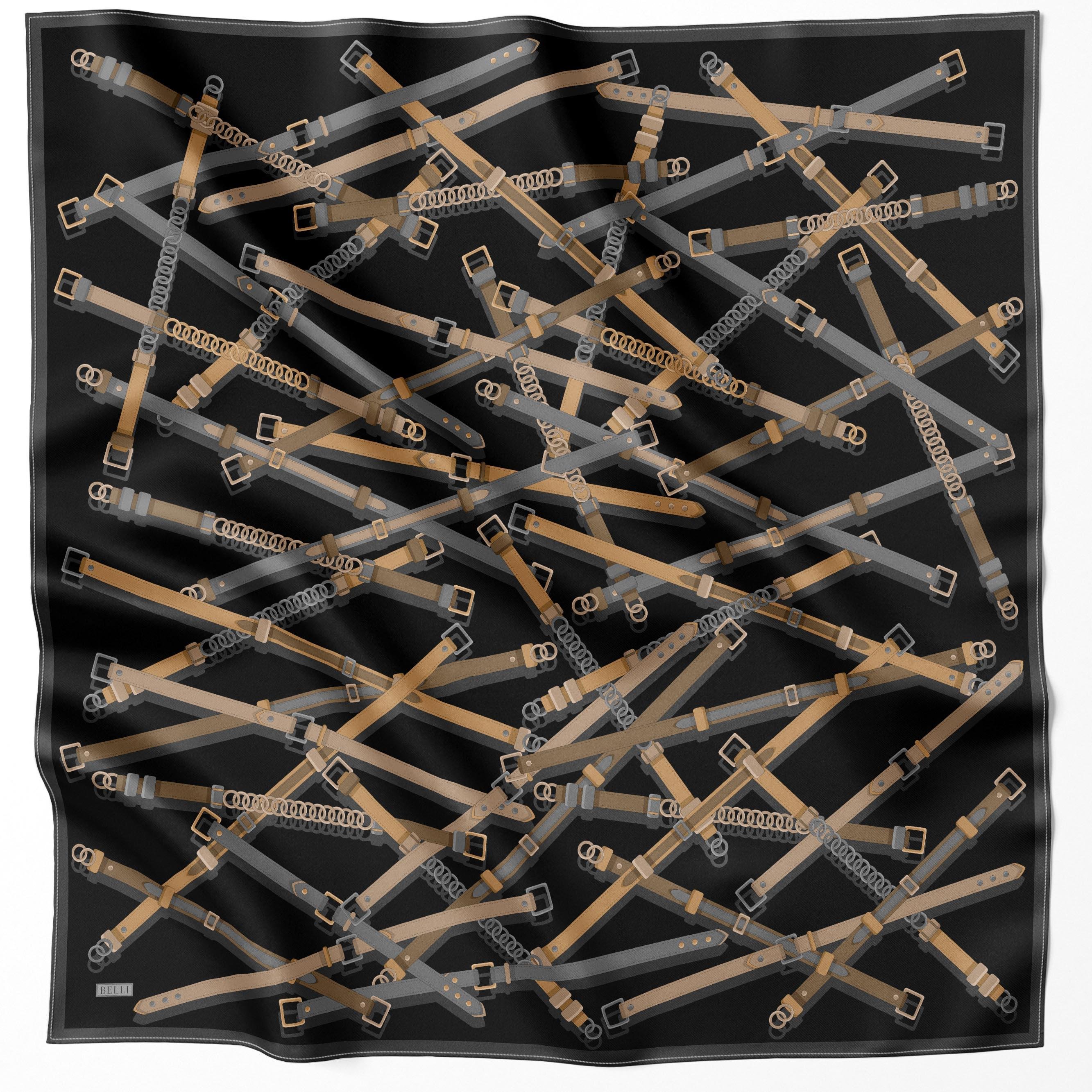 Belli Saf İpek Eşarp 4200D (T) - Siyah Gold (366339900)