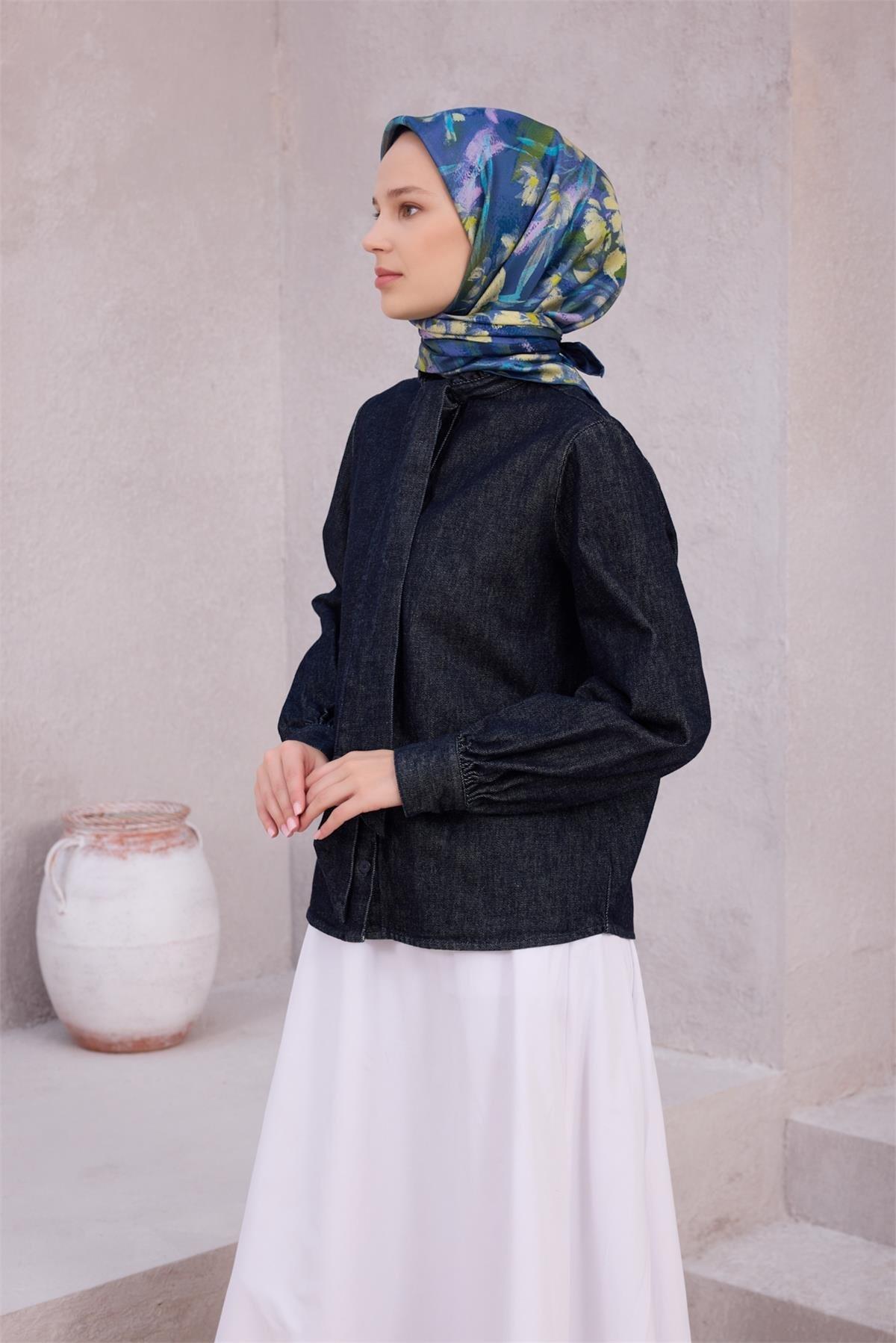 Belli Saf İpek Eşarp 4217D (T) - Lacivert