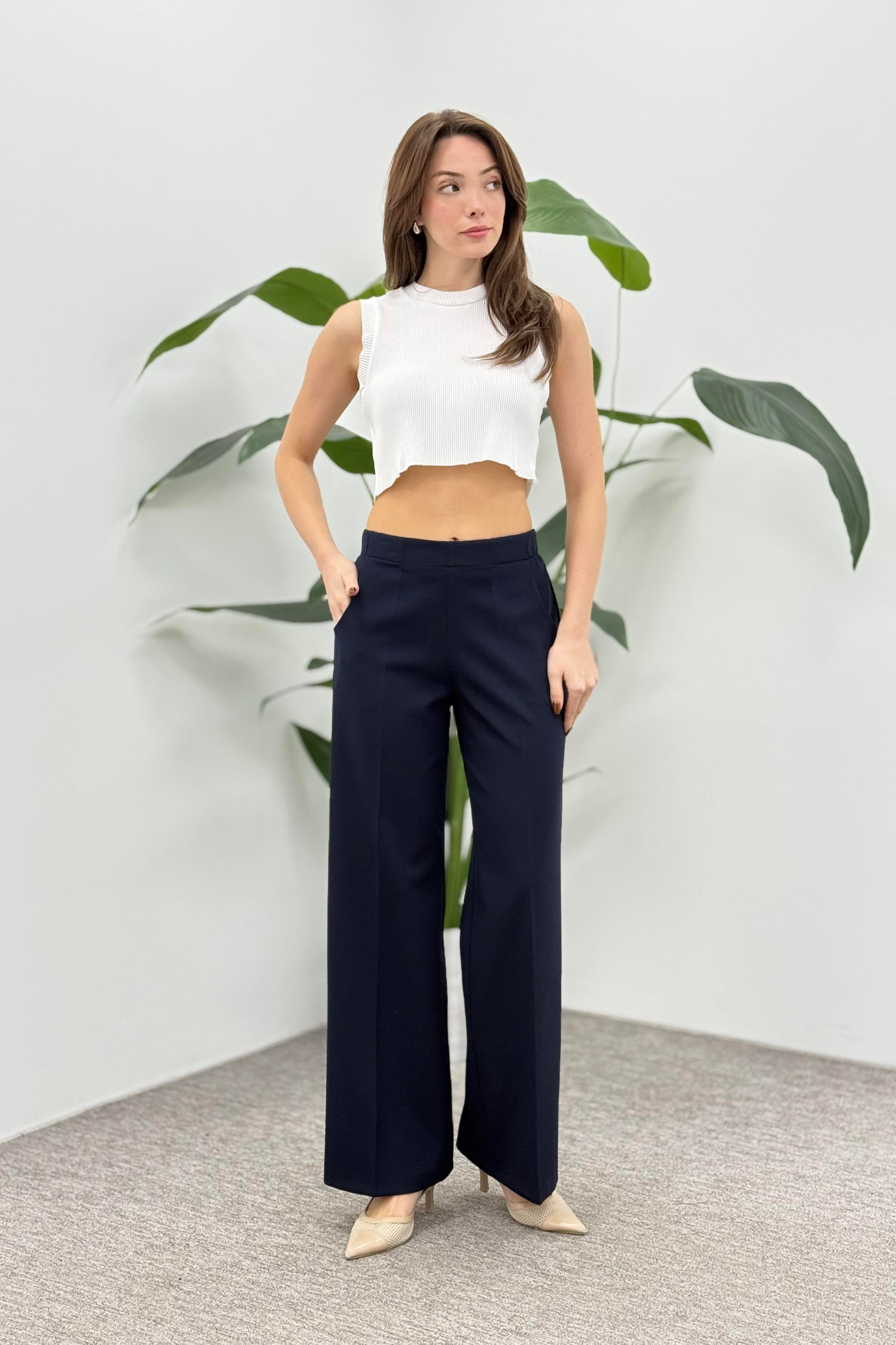 MİZZA Boru Paça Beli Lastikli Kumaş Pantolon 1011 - Lacivert Boru Paça Beli Lastikli Kumaş Pantolon 1011 - Lacivert - Bilen Giyim Pantolon
