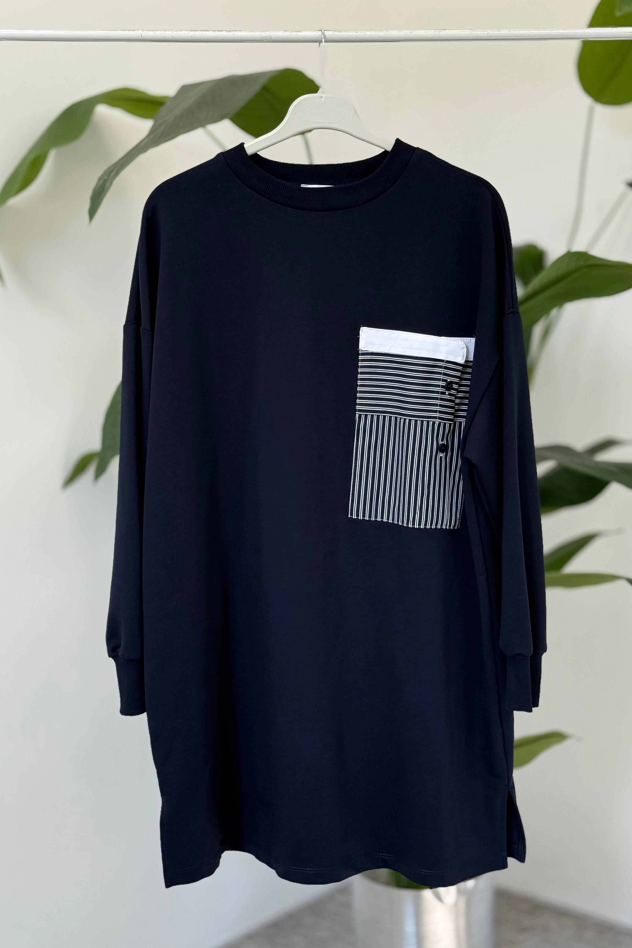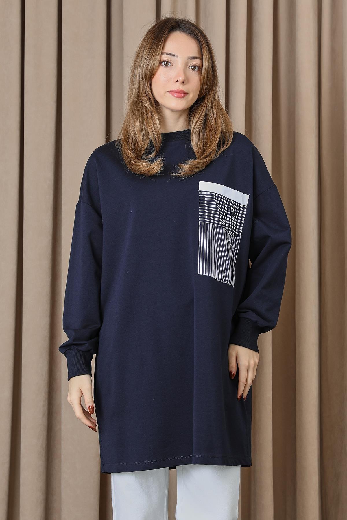 Cebi Çizgili Gömlek Detay Tunik 10719 - F.Navy