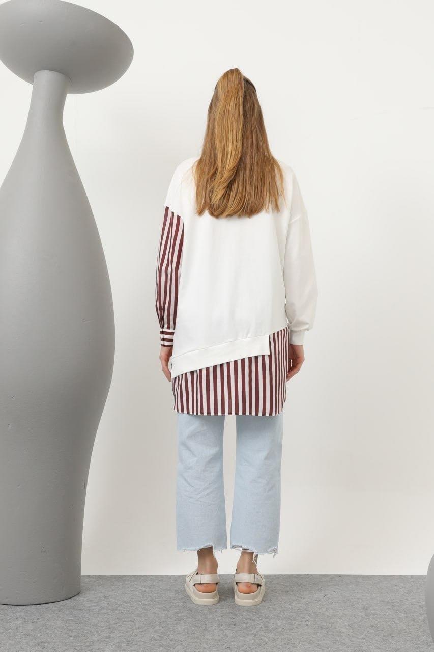 Cebi Popcorn Baskılı Çizgili Tunik 10651 - Bordo (362251910)