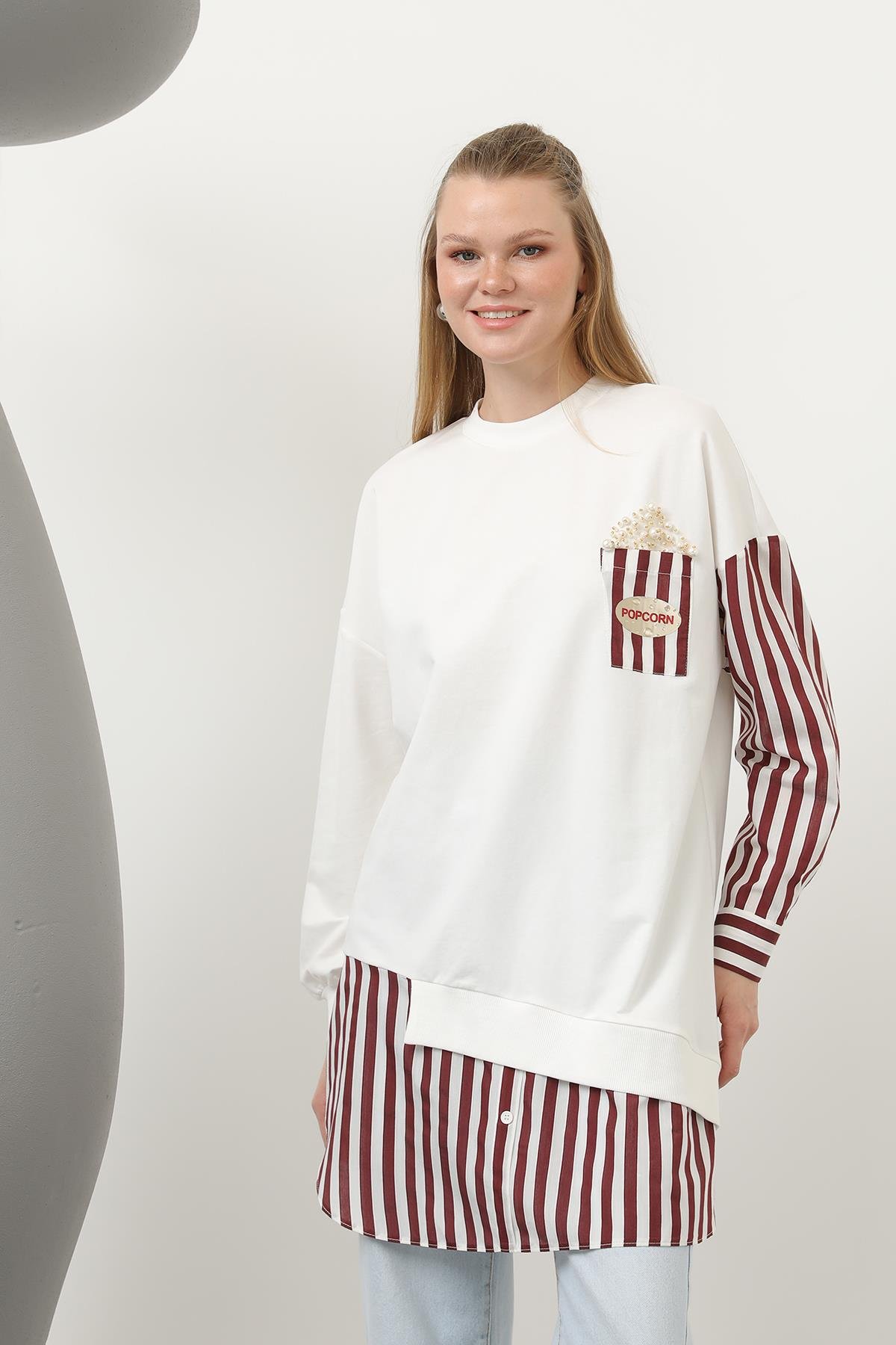 Cebi Popcorn Baskılı Çizgili Tunik 10651 - F.Navy Cebi Popcorn Baskılı Çizgili Tunik 10651 - Bordo Cebi Popcorn Baskılı Çizgili Tunik 10651 - Siyah