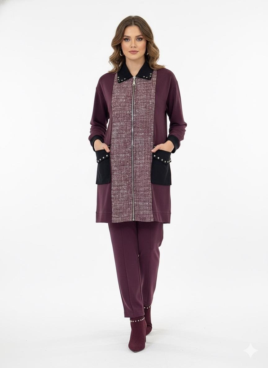 Cep ve Yaka Zımba Detay Pantolonlu Takım 1411 - Mürdüm (350307926)