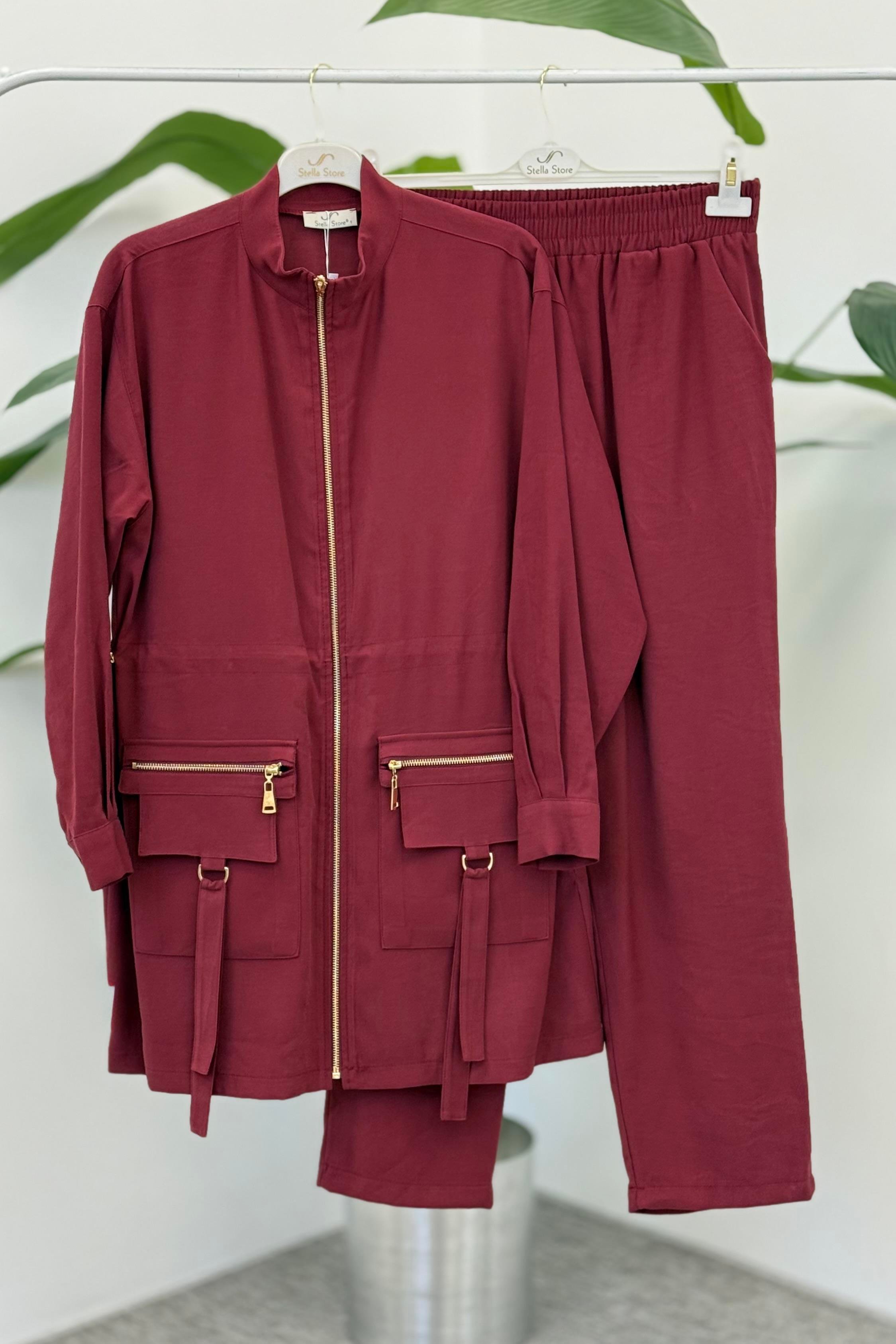 Cepleri Fermuar Detaylı Pantolonlu Takım 1377 - Bordo