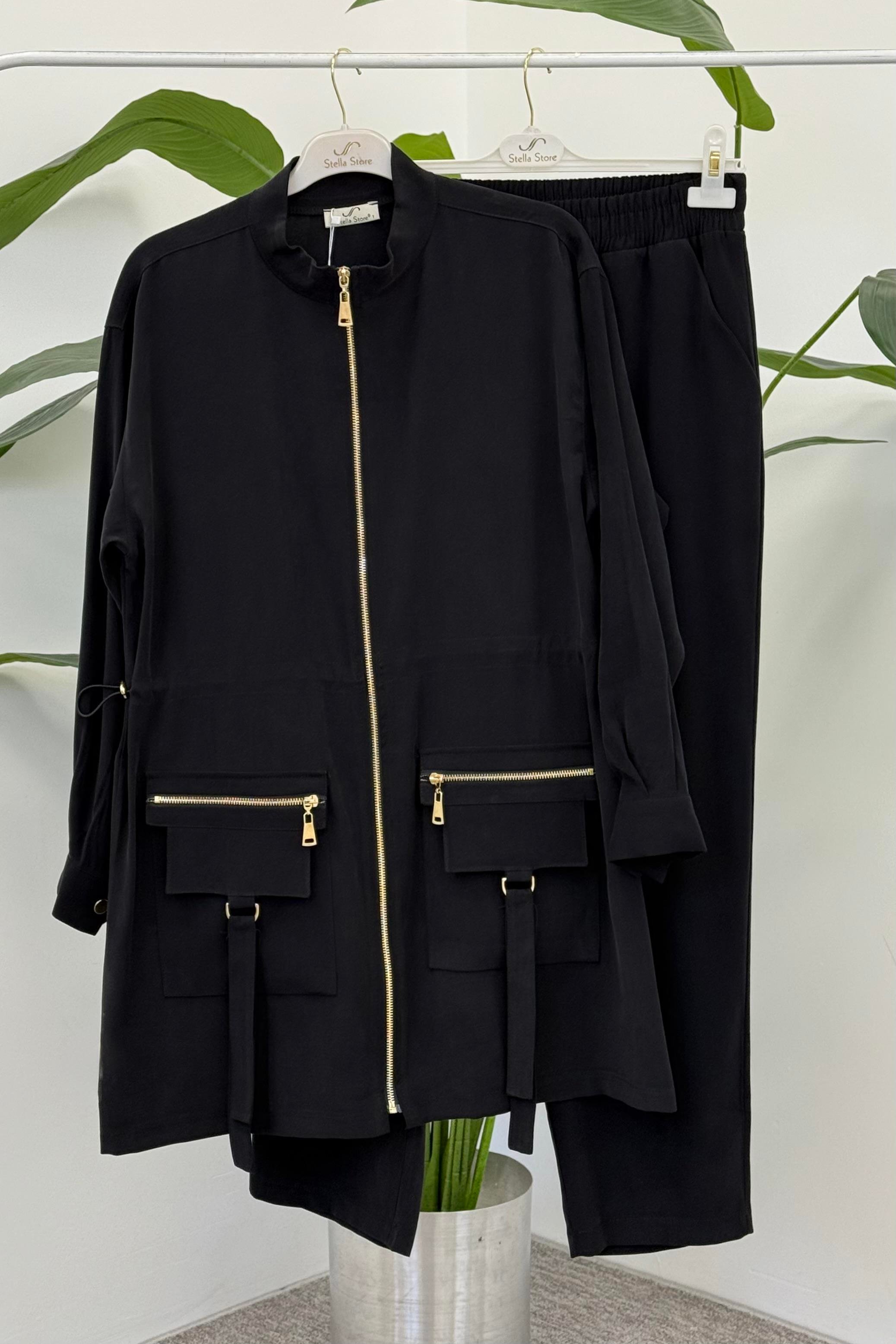 Cepleri Fermuar Detaylı Pantolonlu Takım 1377 - Siyah