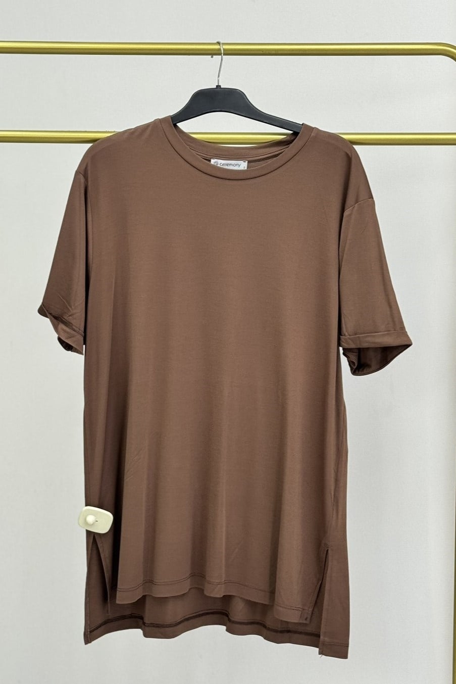 Ceremony 26y161 Kısa Kollu Bambu Bluz - Kahverengi
