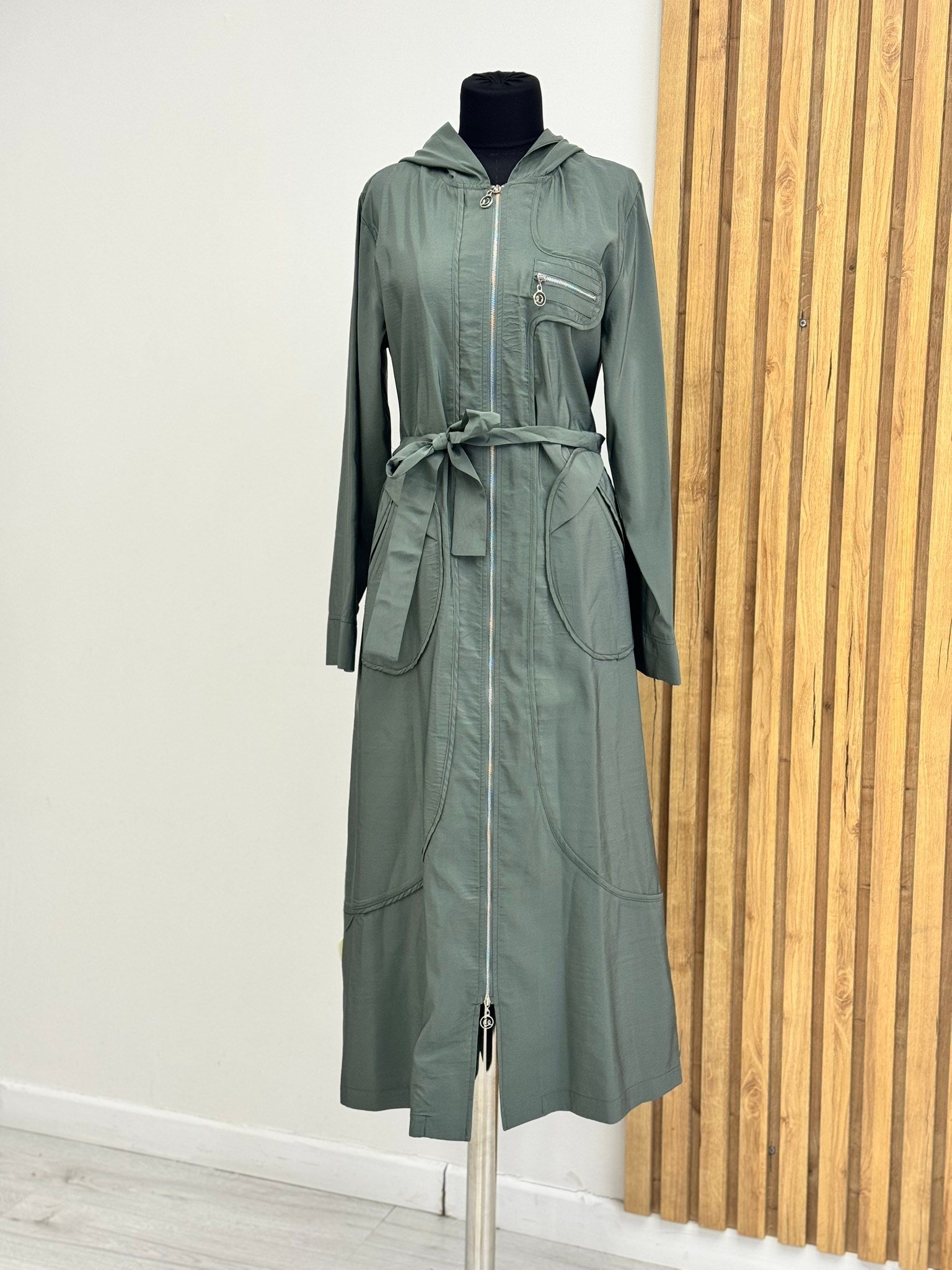 Ceremony 26Y813 Kapüşonlu Yuvarlak Torba Cebli Fermuarli Kap - Yeşil (478144103)
