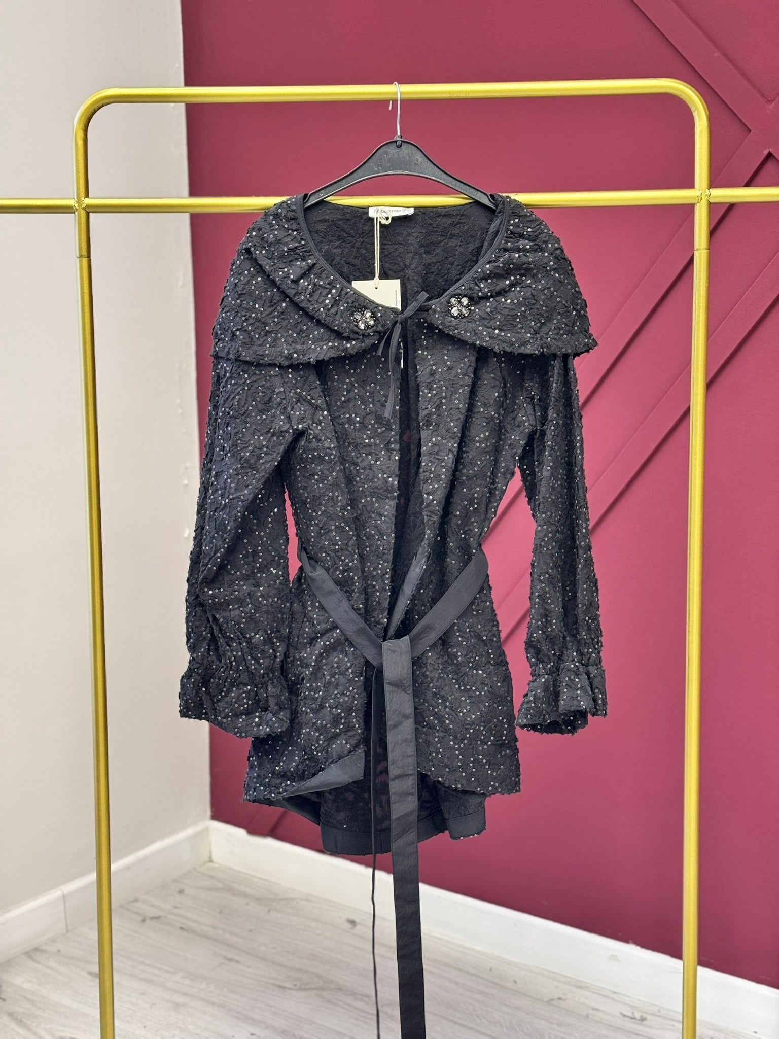Ceremony 26Y865 Yakasi Bağcikli Organze Jakar Kısa Kap - Siyah