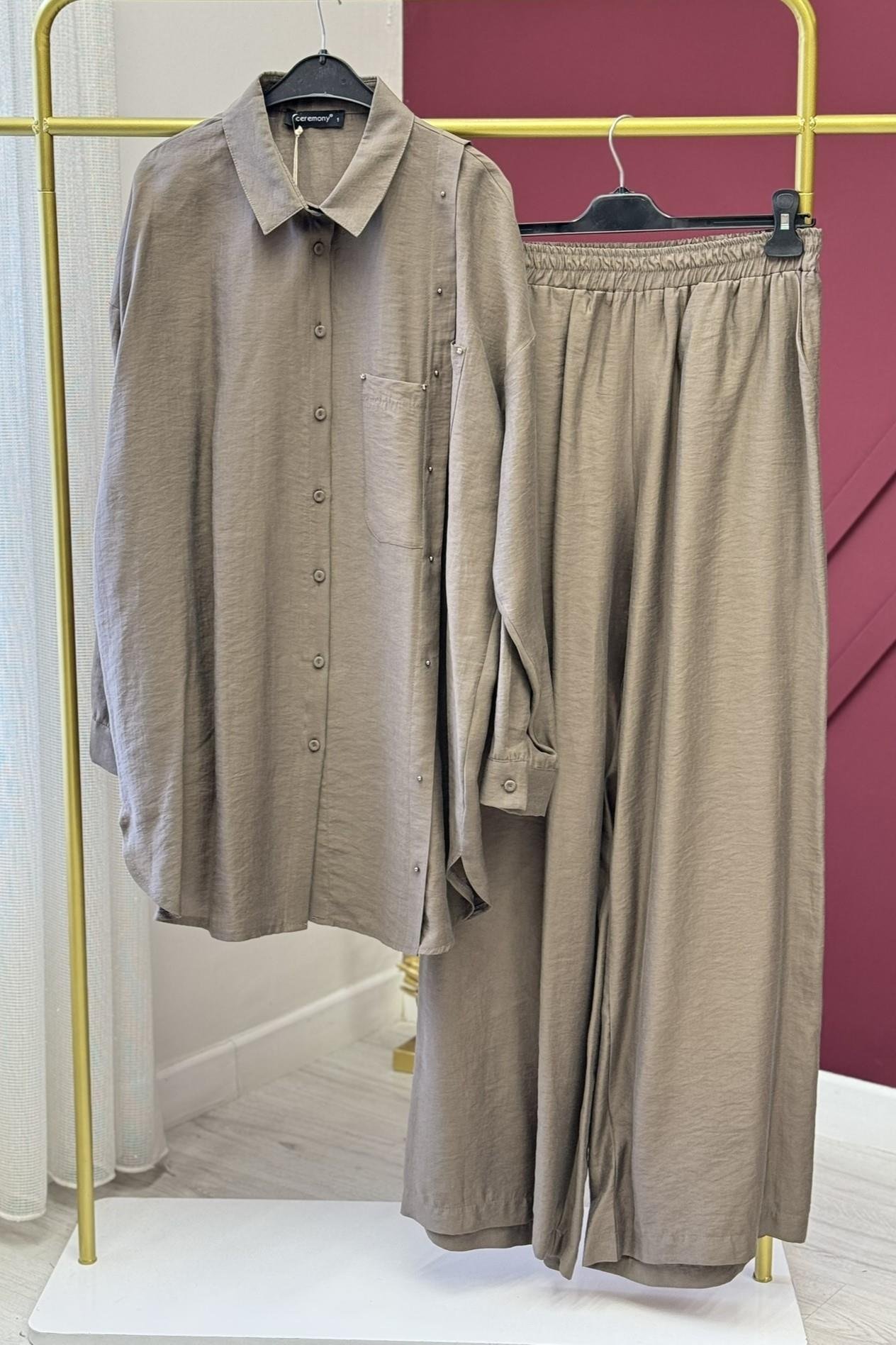 Ceremony 26Y910 Çapraz Cep Detaylı Pantolonlu Safari Takım - Vizon