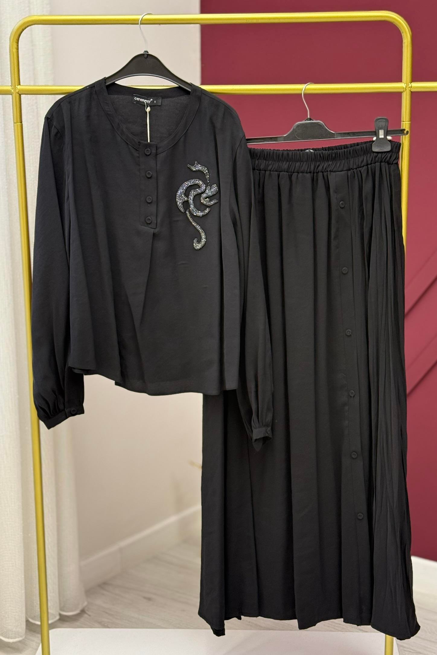 Ceremony 26Y918 Kristal İşlemeli Etekli modal Takım - Siyah