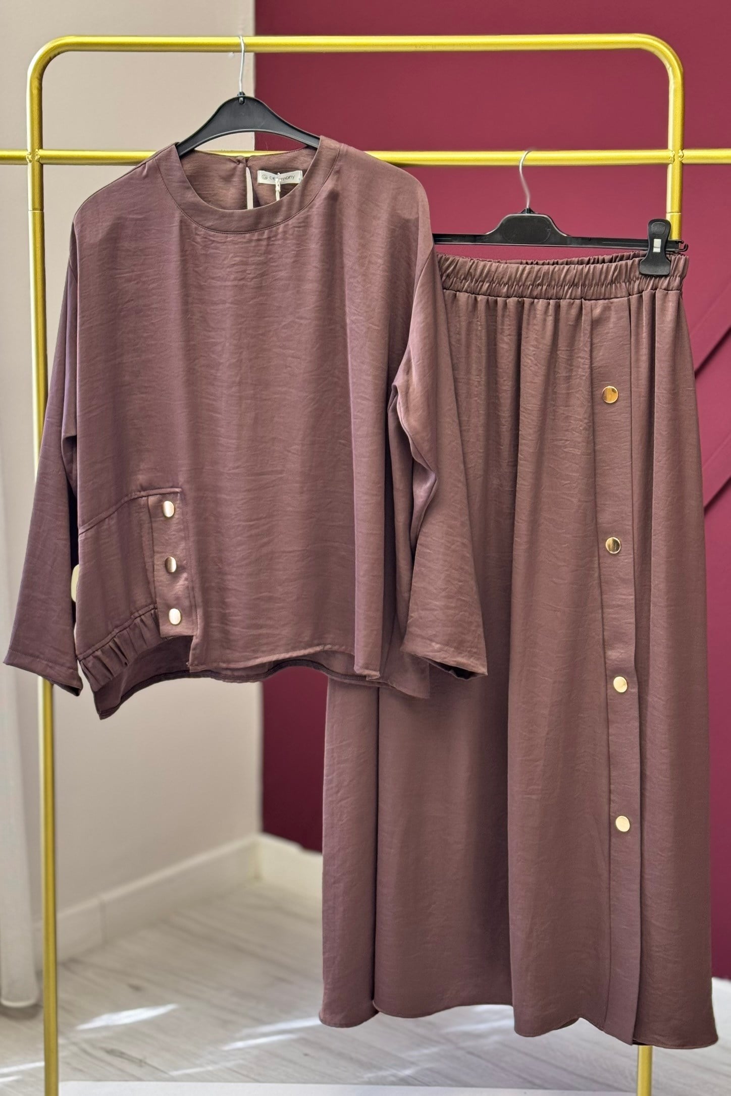 Ceremony 26Y956 Bluzu Ve Eteği Çıtçıt Aksesuar Detaylı Takım - Kahverengi (450144102)