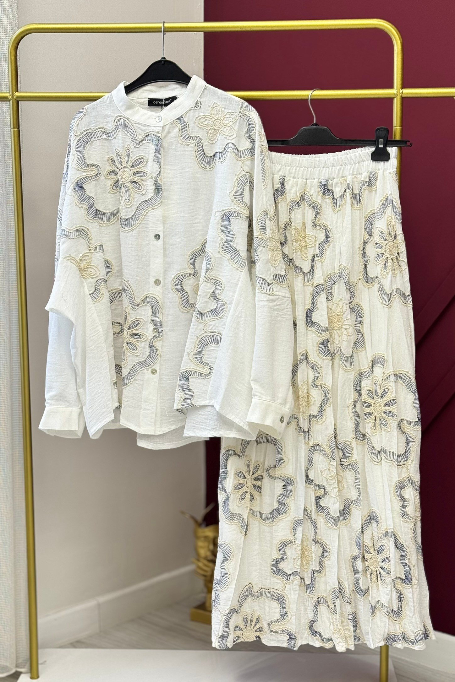 Ceremony 26Y962 Önden Sedef Düğmeli Etekli Simli Keten Takım - Orjinal (450144134)