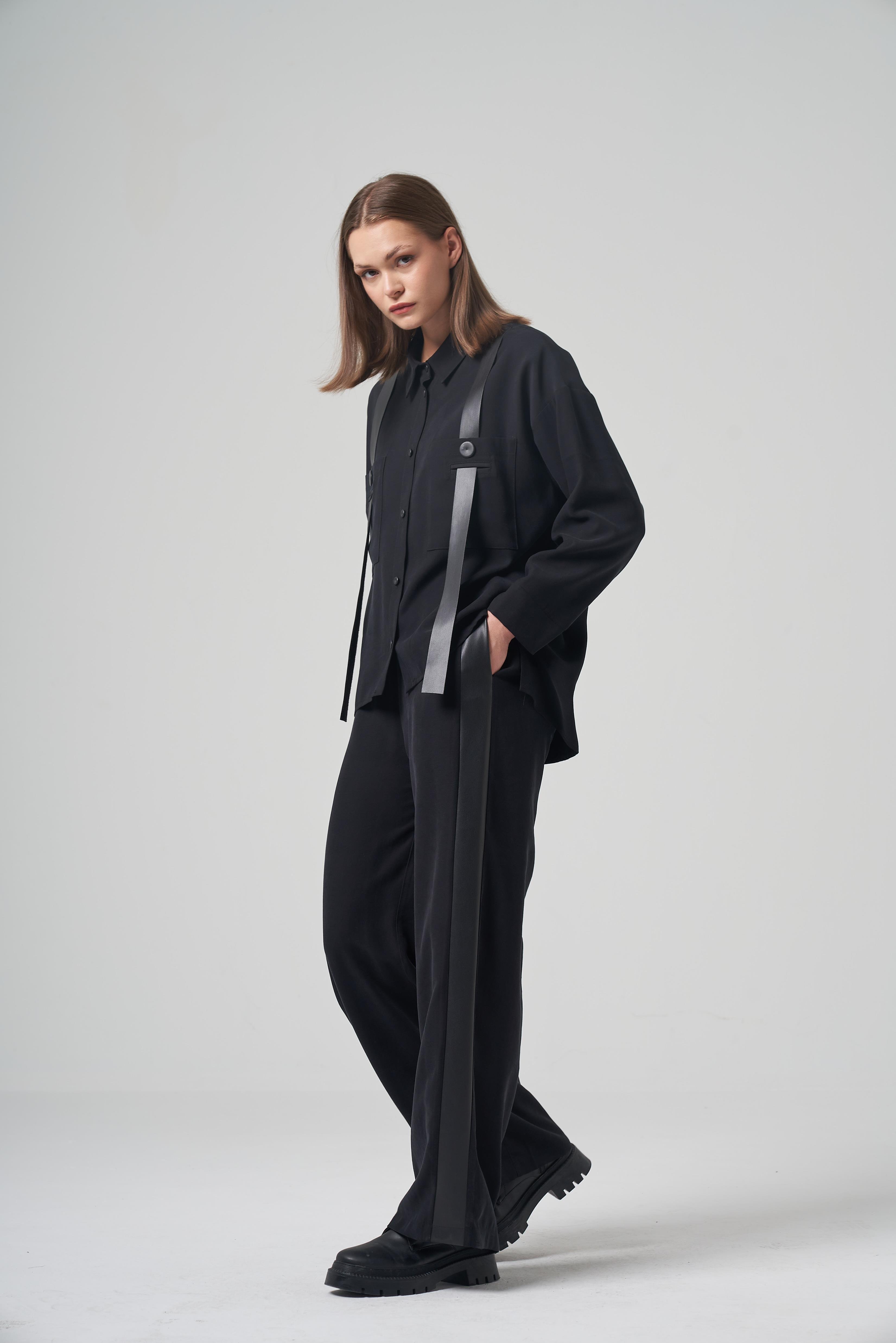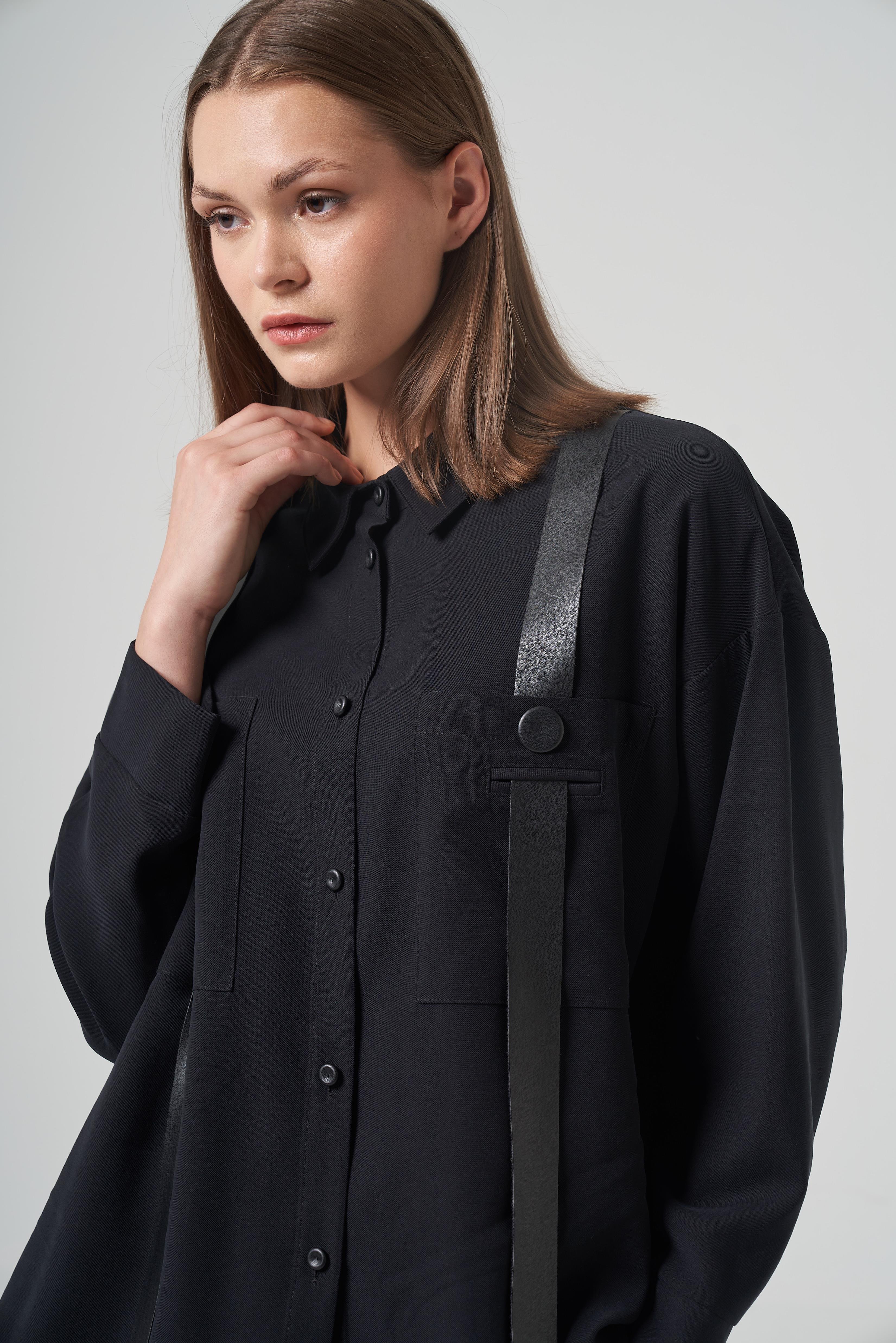 Ceremony 6105 Anjelik Omuzdan Deri Askı Detaylı Tunik - Siyah