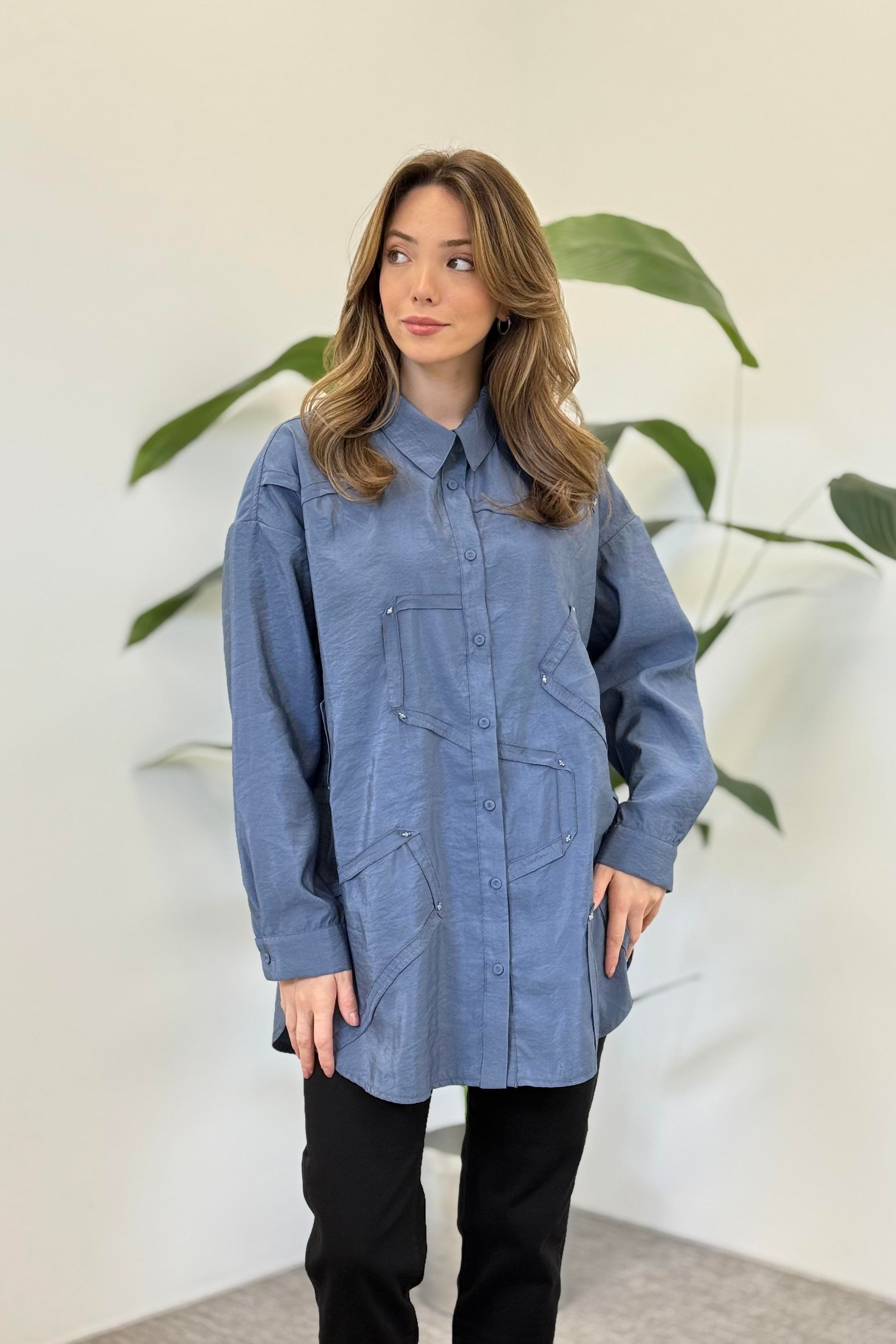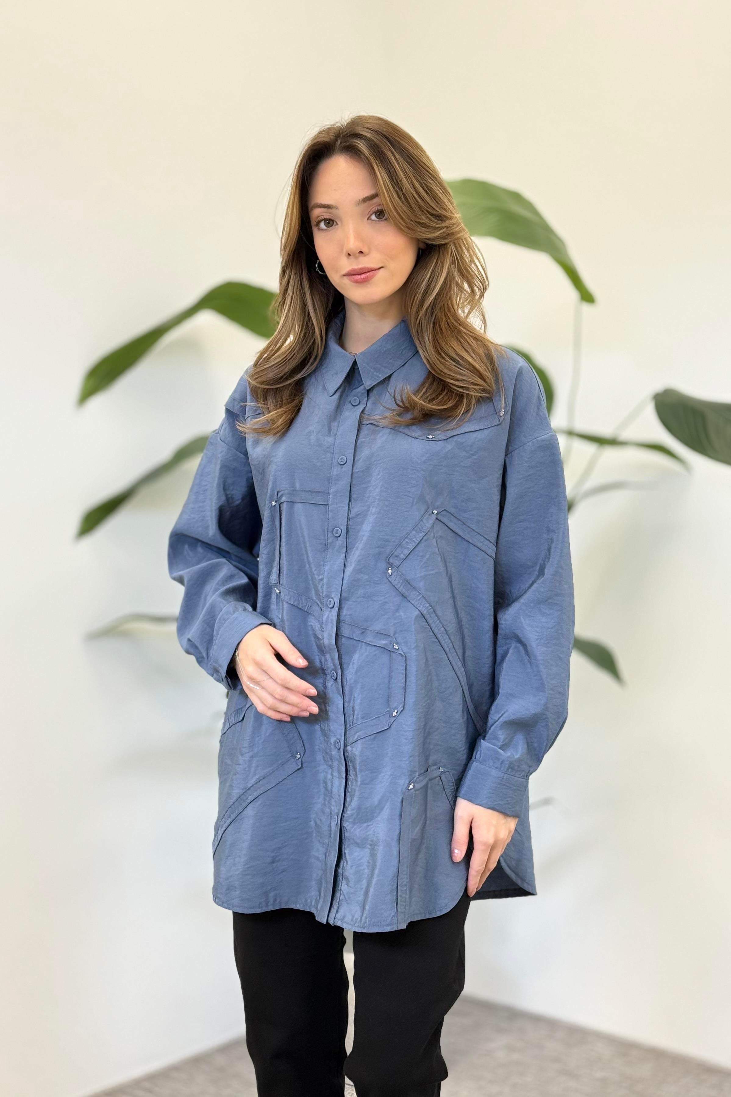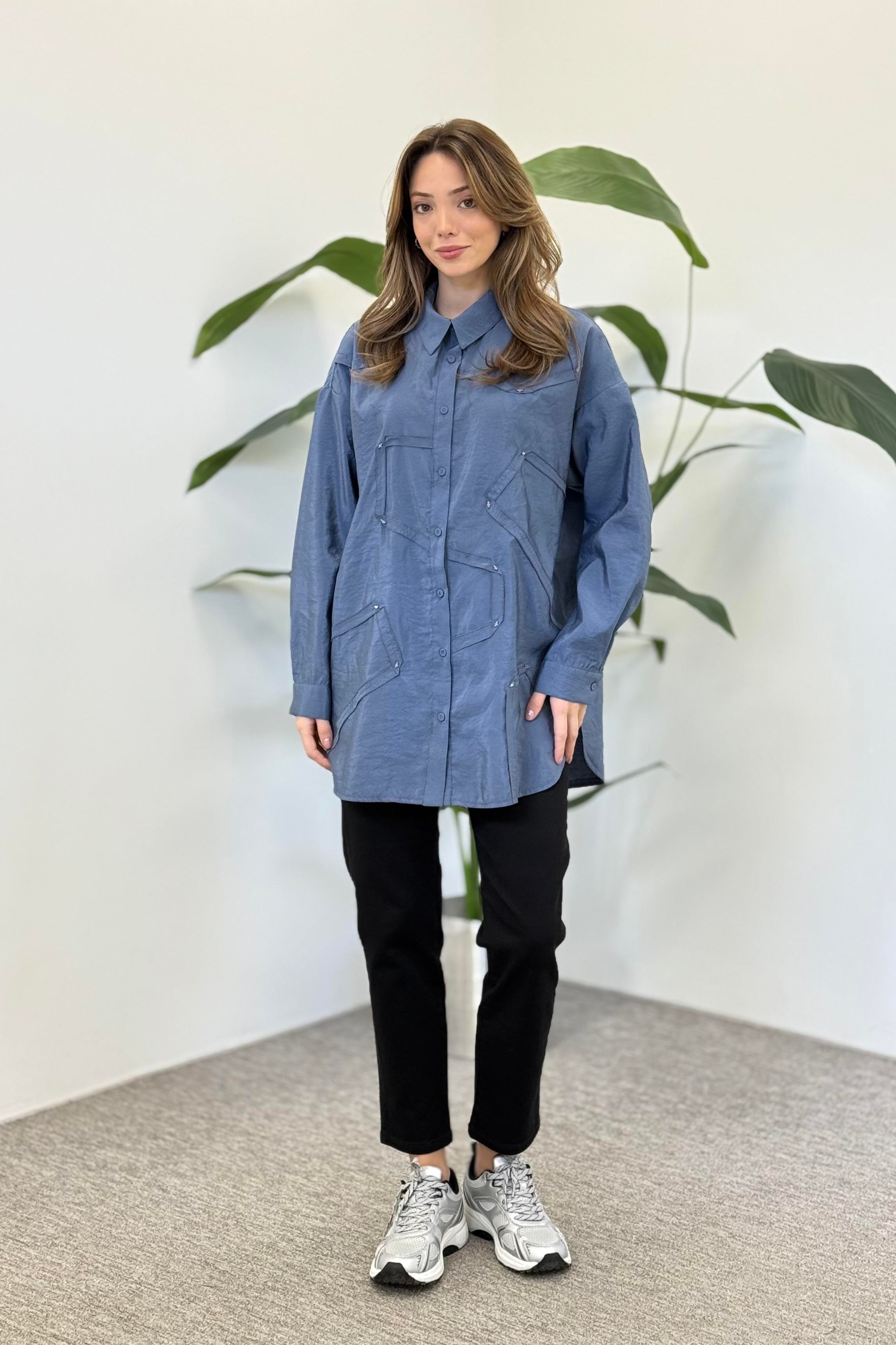 Ceremony 6146 Düğmeli Uzun Kollu Tunik - İndigo (362144904)