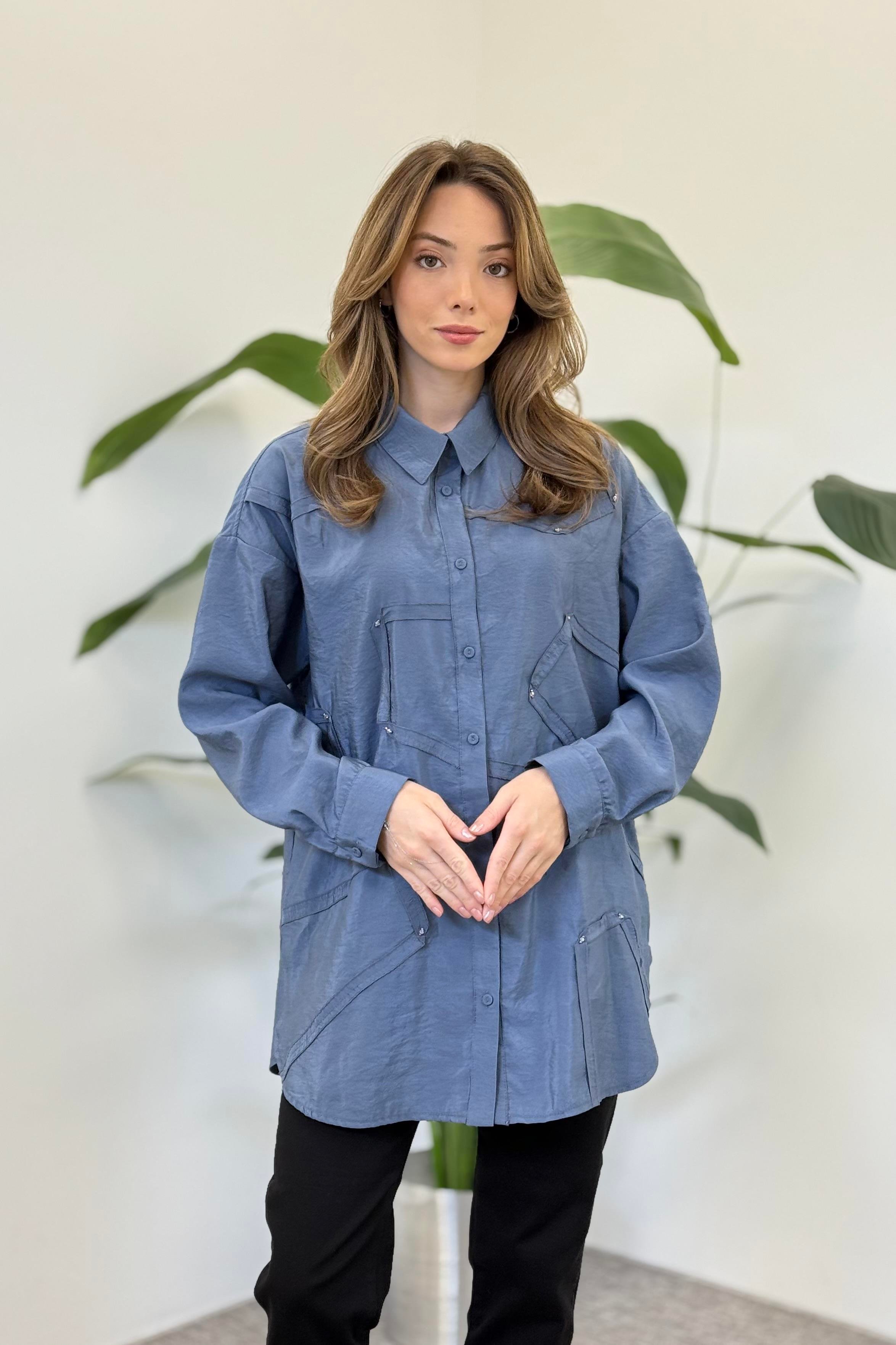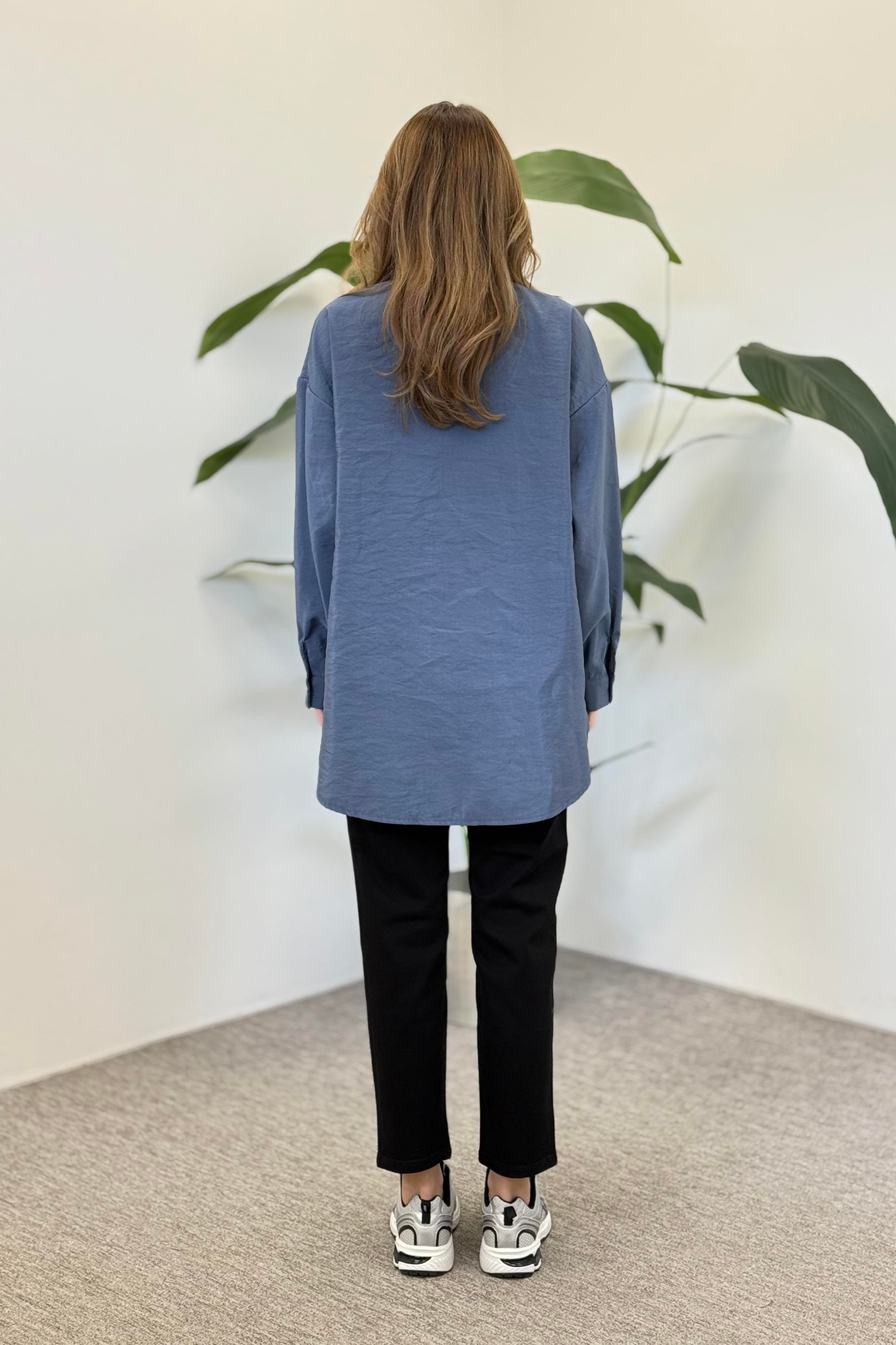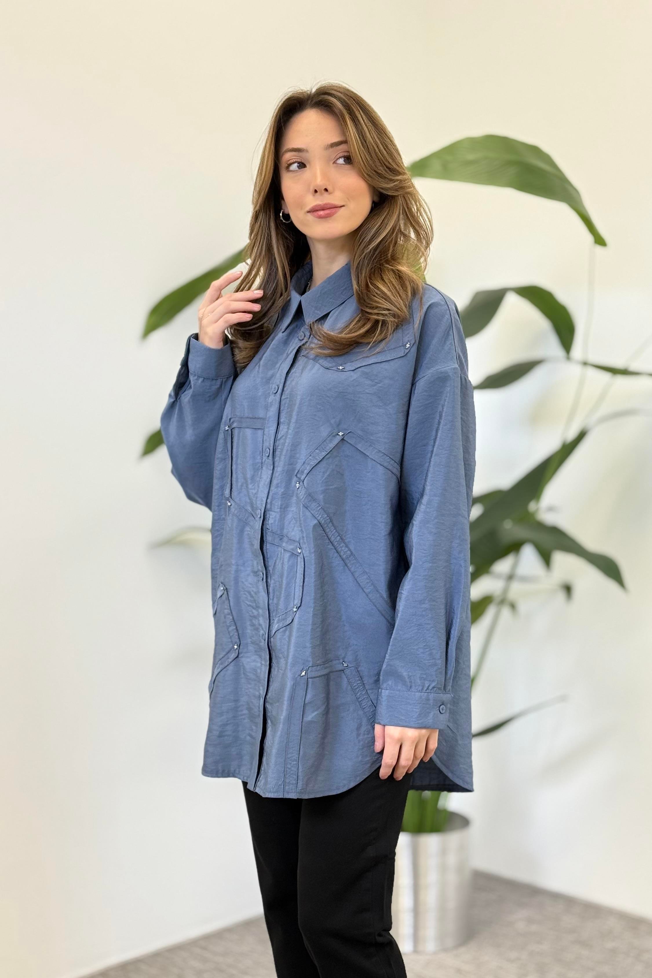 Ceremony 6146 Düğmeli Uzun Kollu Tunik - İndigo (362144904)