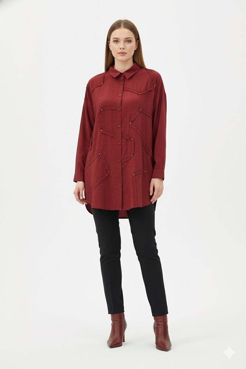 Ceremony 6146 Düğmeli Uzun Kollu Tunik - Kırmızı (362144904)