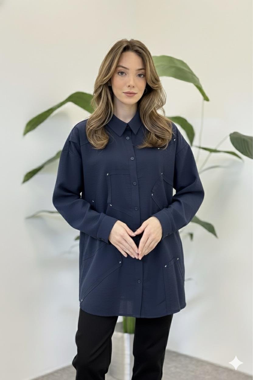 Ceremony 6146 Düğmeli Uzun Kollu Tunik - Lacivert