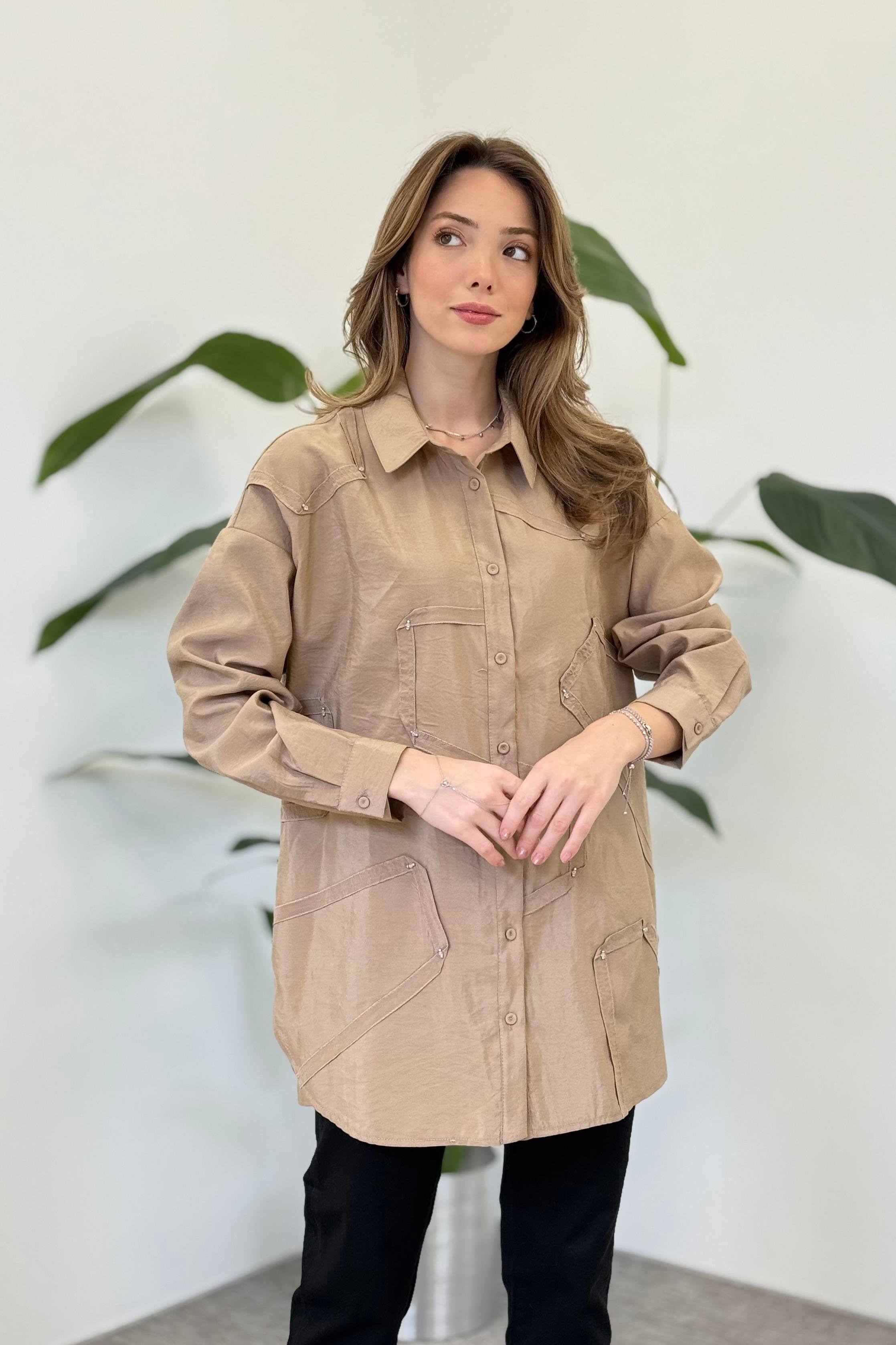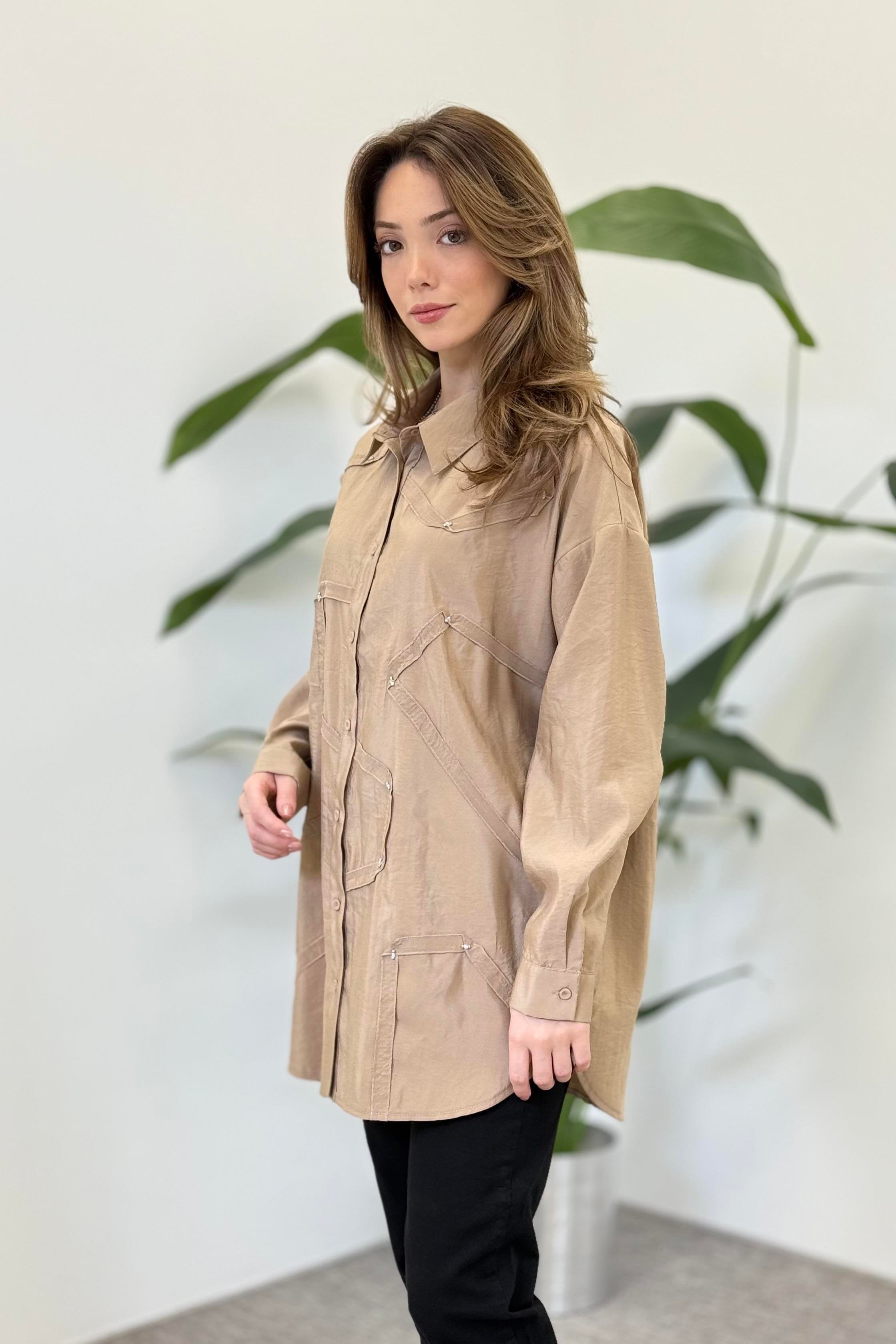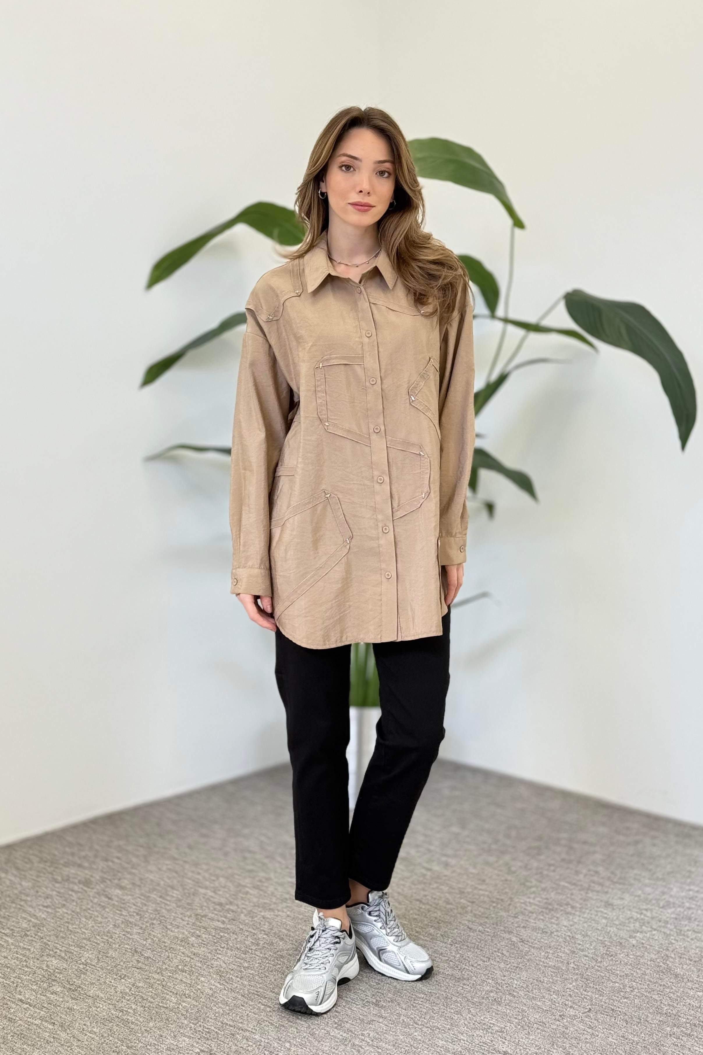 Ceremony 6146 Düğmeli Uzun Kollu Tunik - Vizon (362144904)