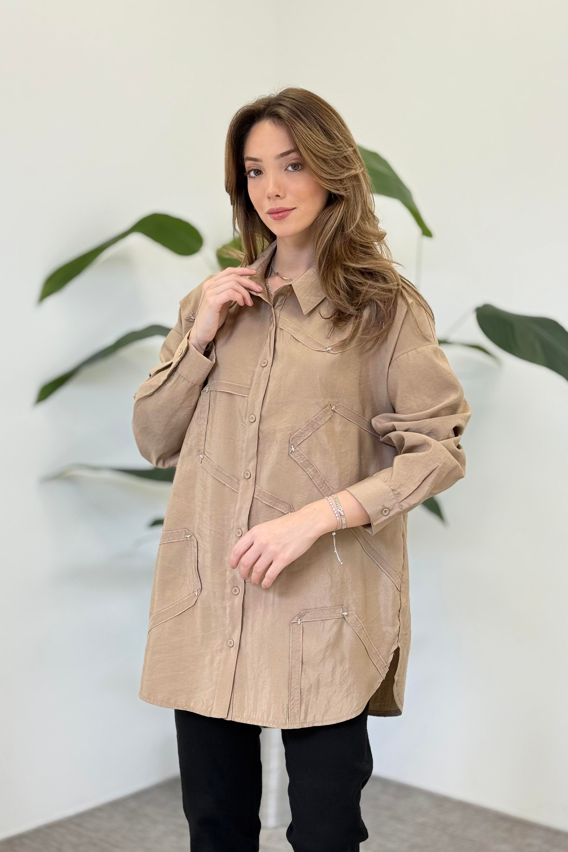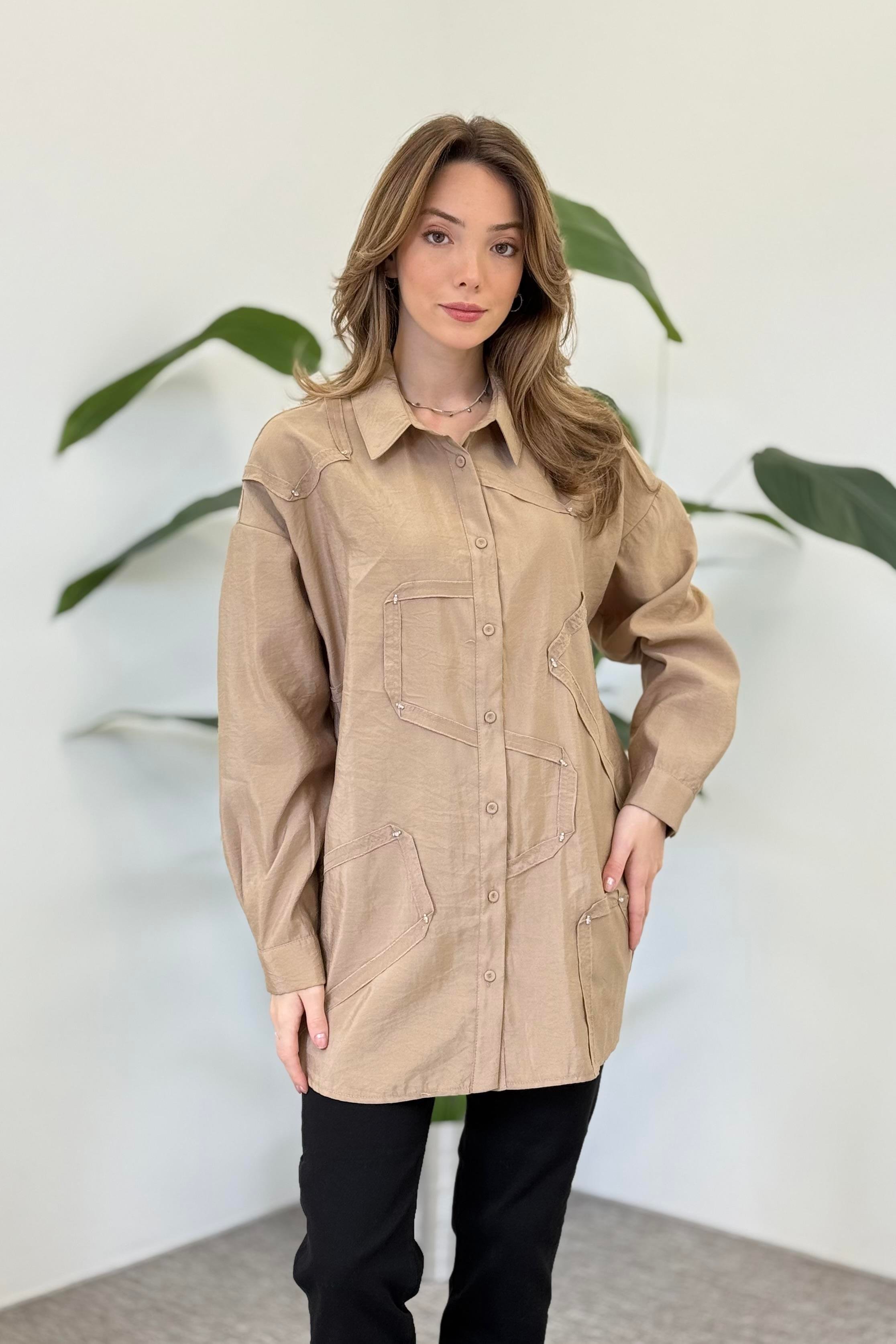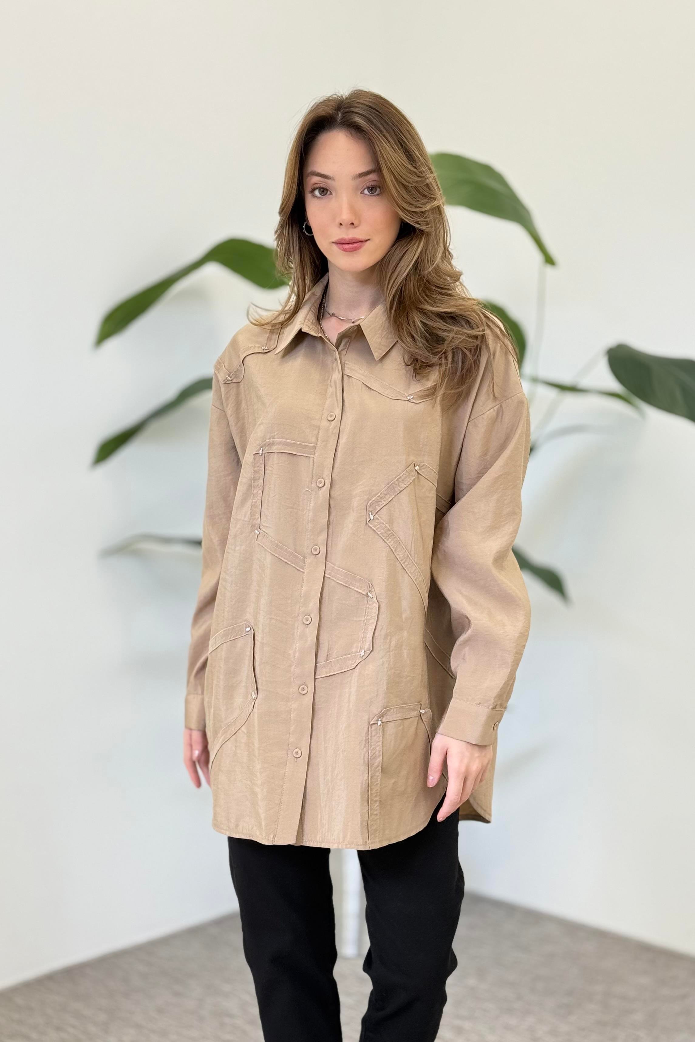 Ceremony 6146 Düğmeli Uzun Kollu Tunik - Vizon (362144904)