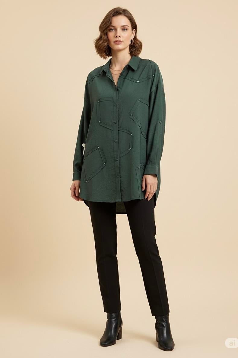 Ceremony 6146 Düğmeli Uzun Kollu Tunik - Zümrüt (362144904)