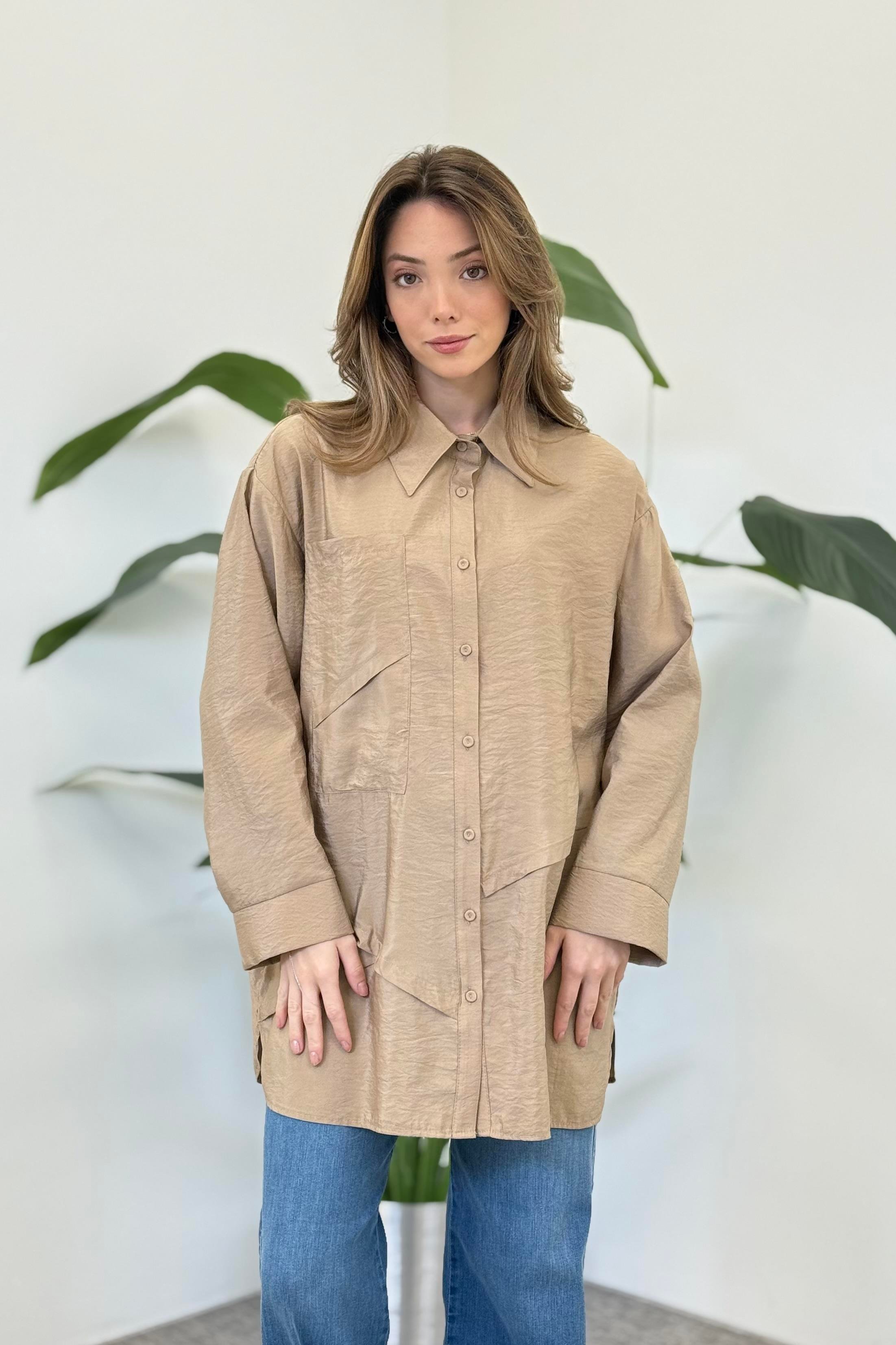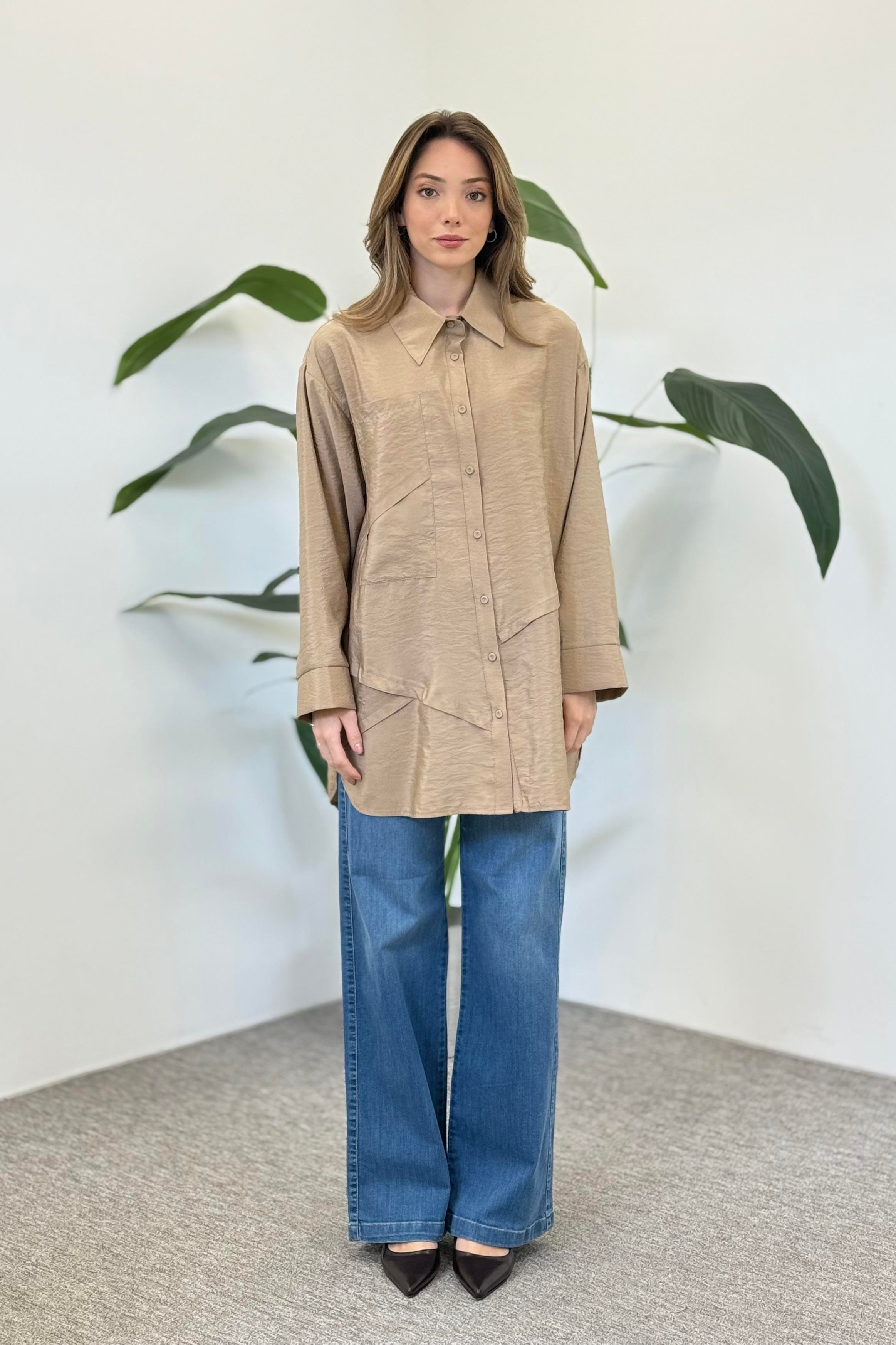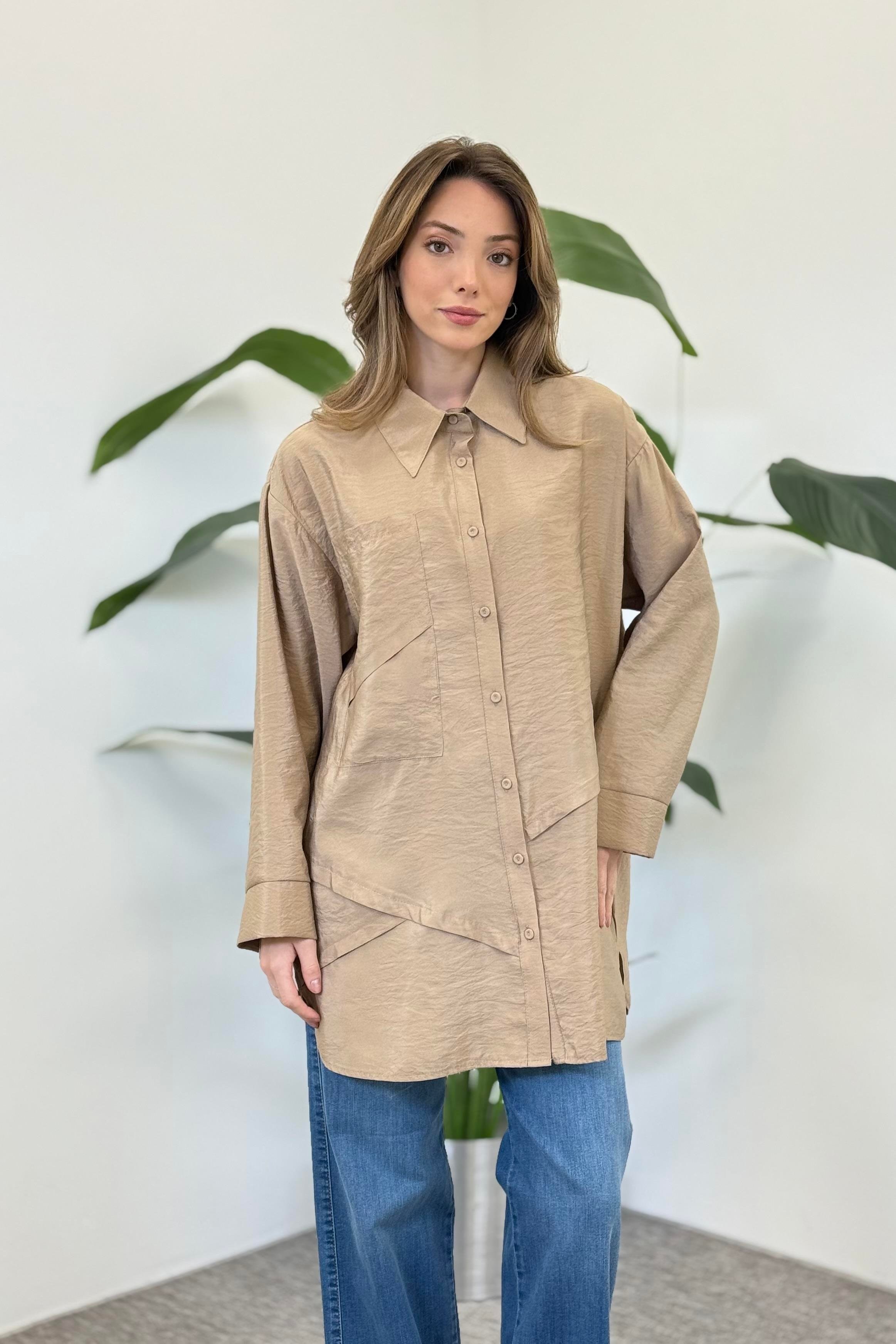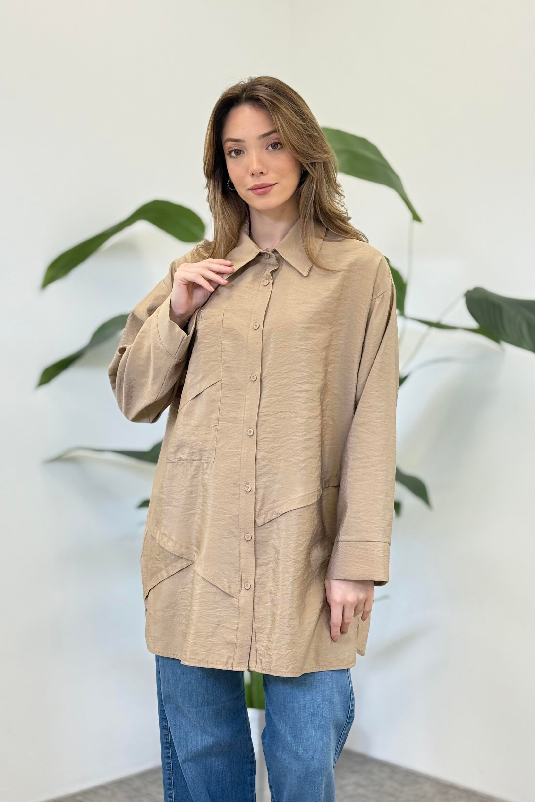 Ceremony 6148 Önden Düğmeli Uzun Cep Detaylı Tunik - Bej