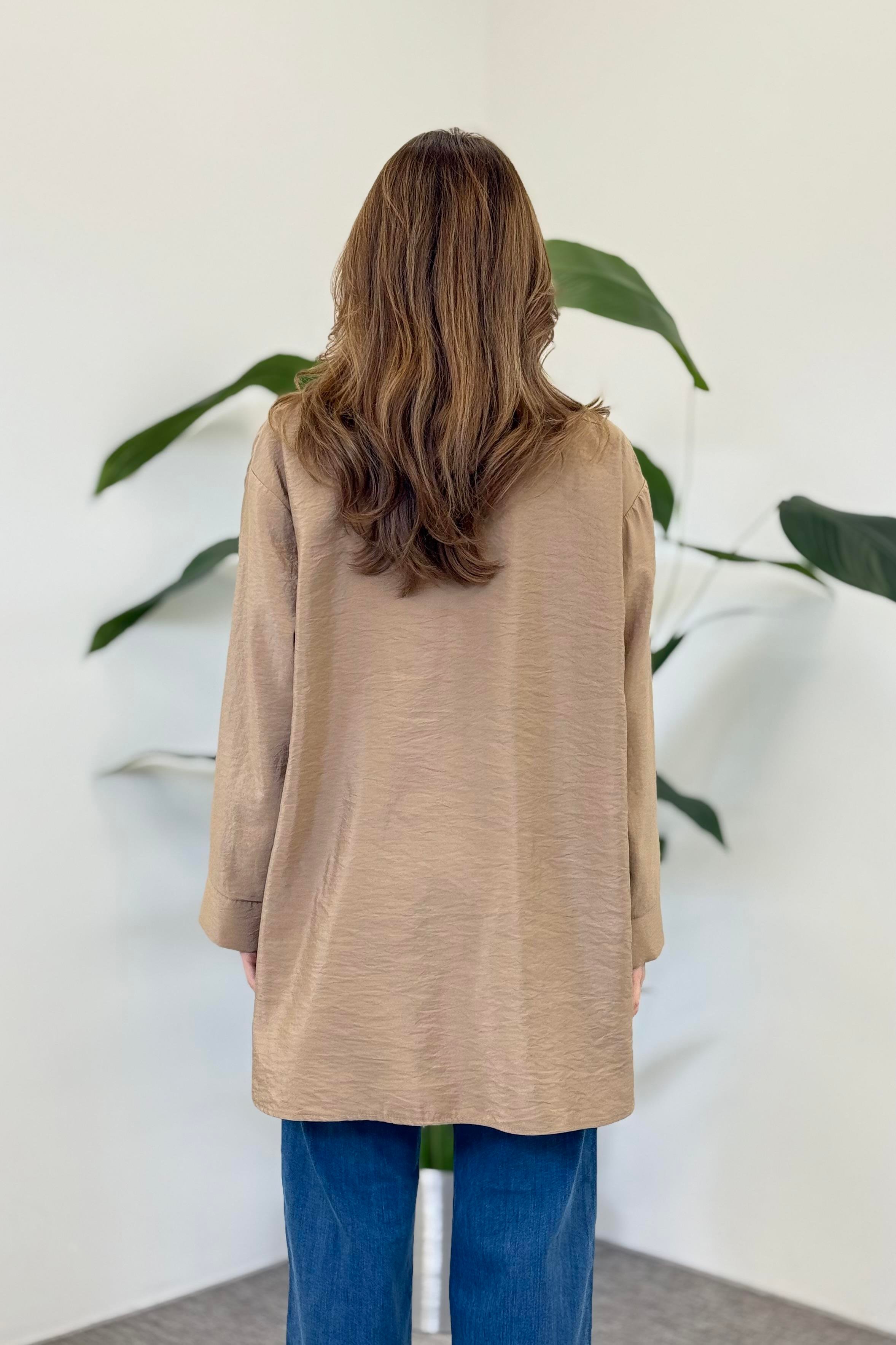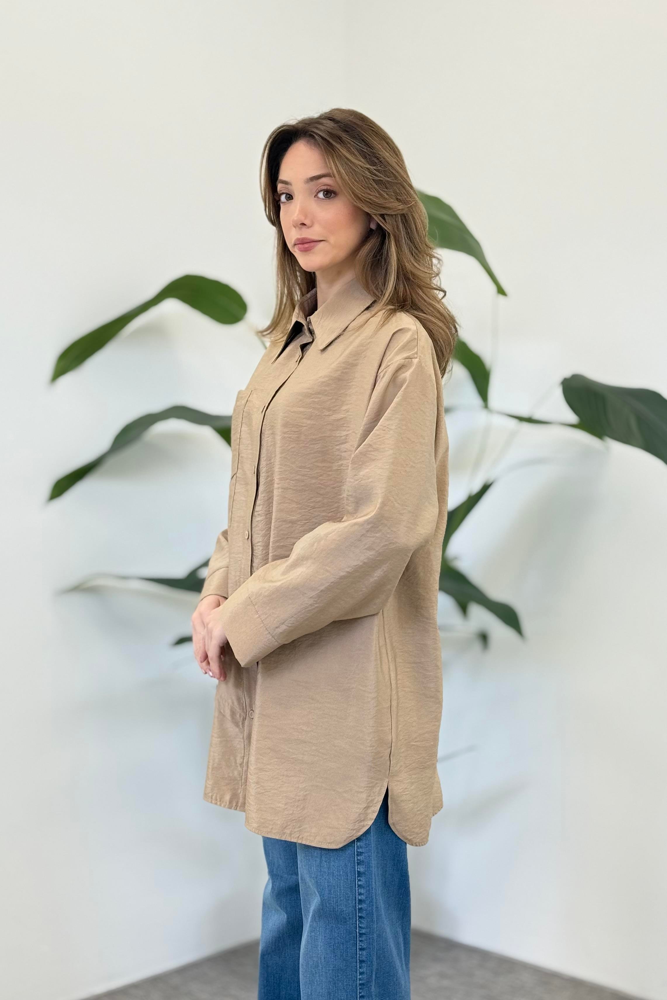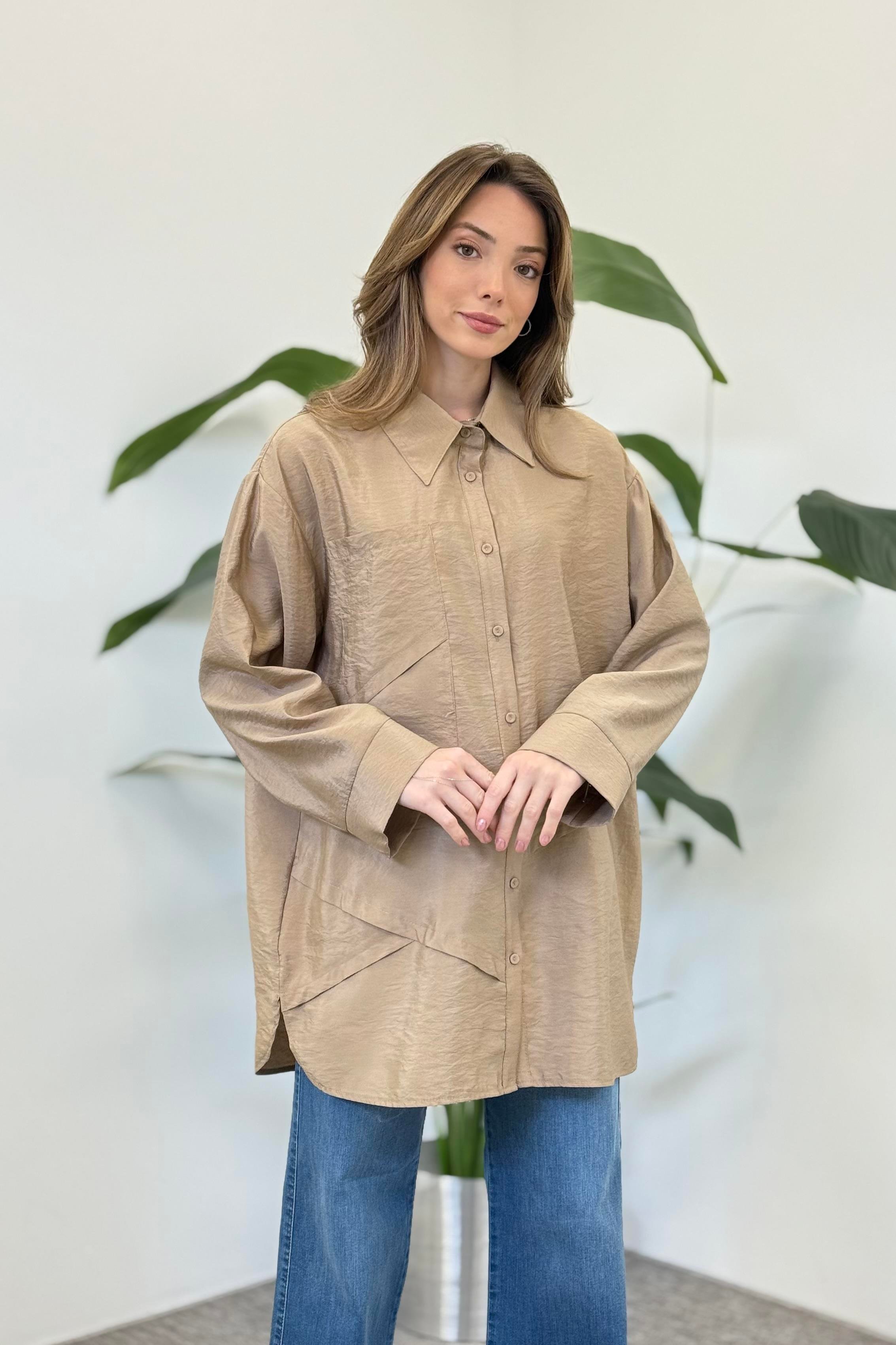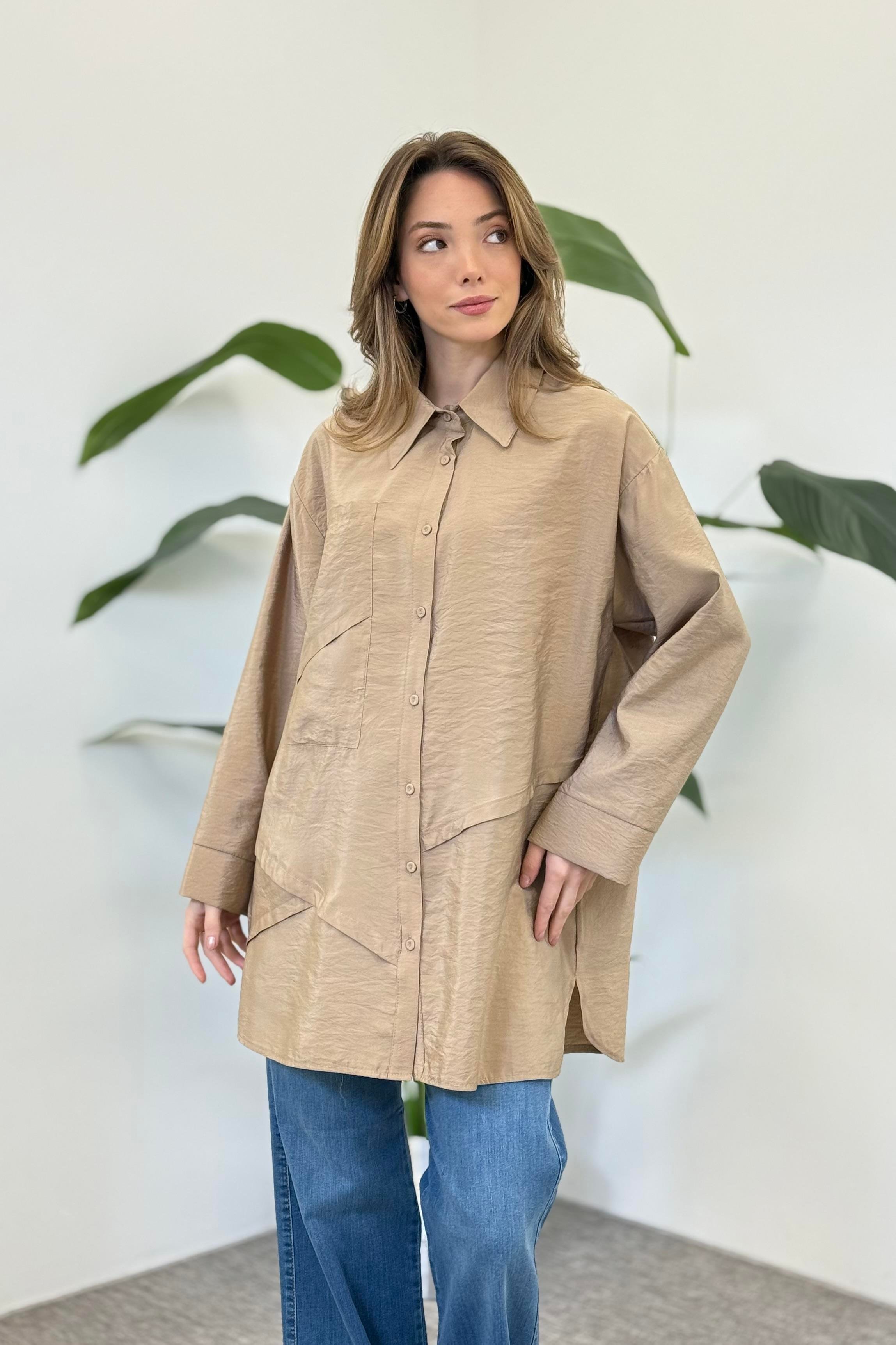 Ceremony 6148 Önden Düğmeli Uzun Cep Detaylı Tunik - Bej
