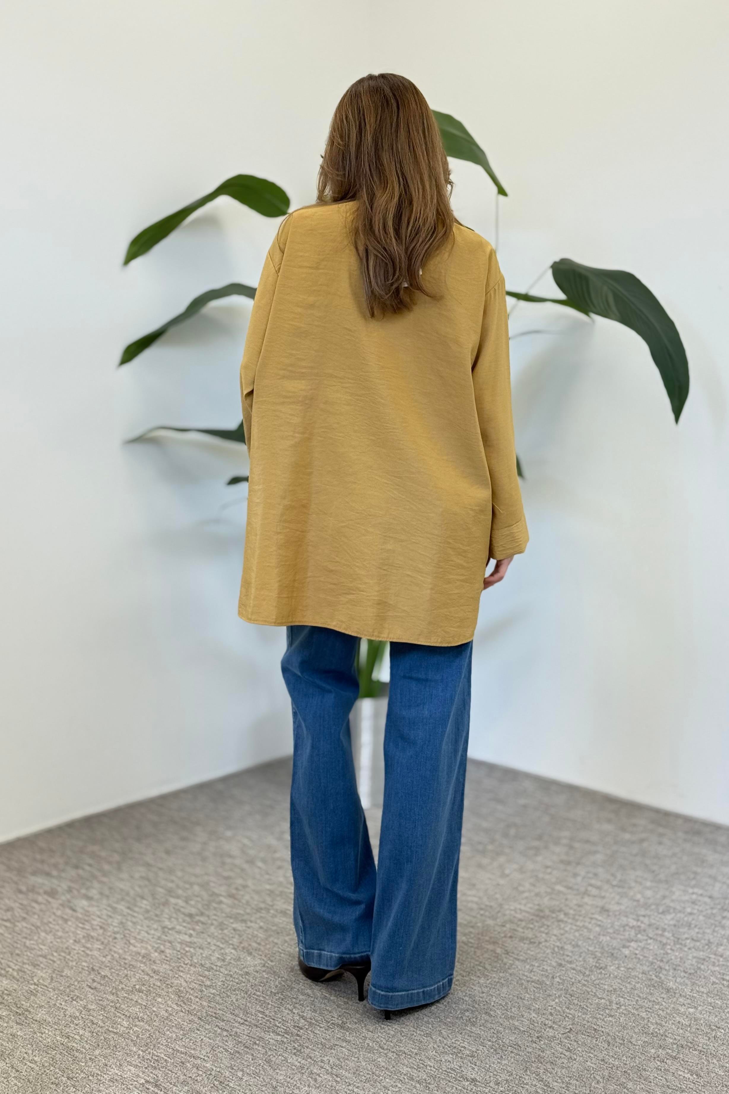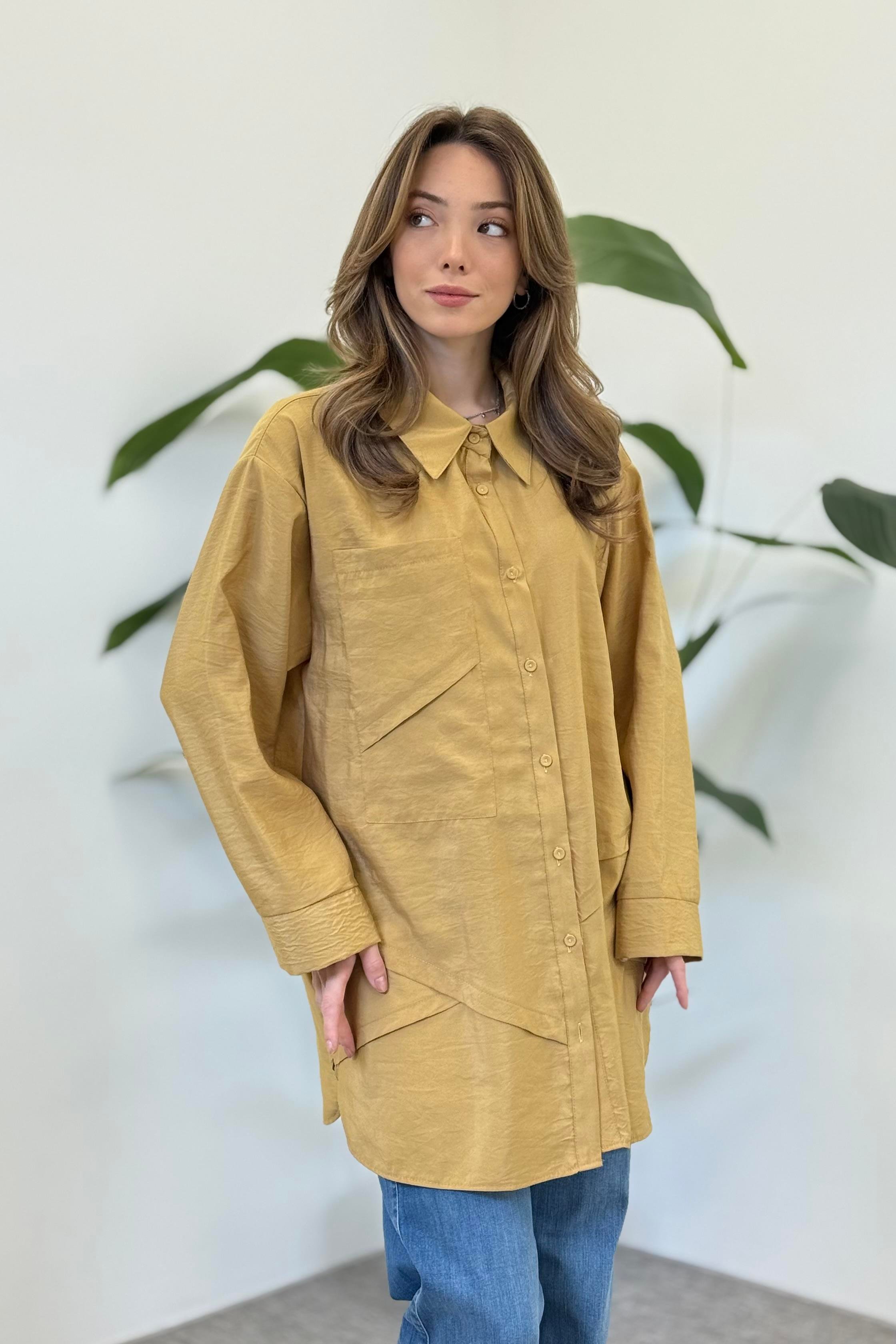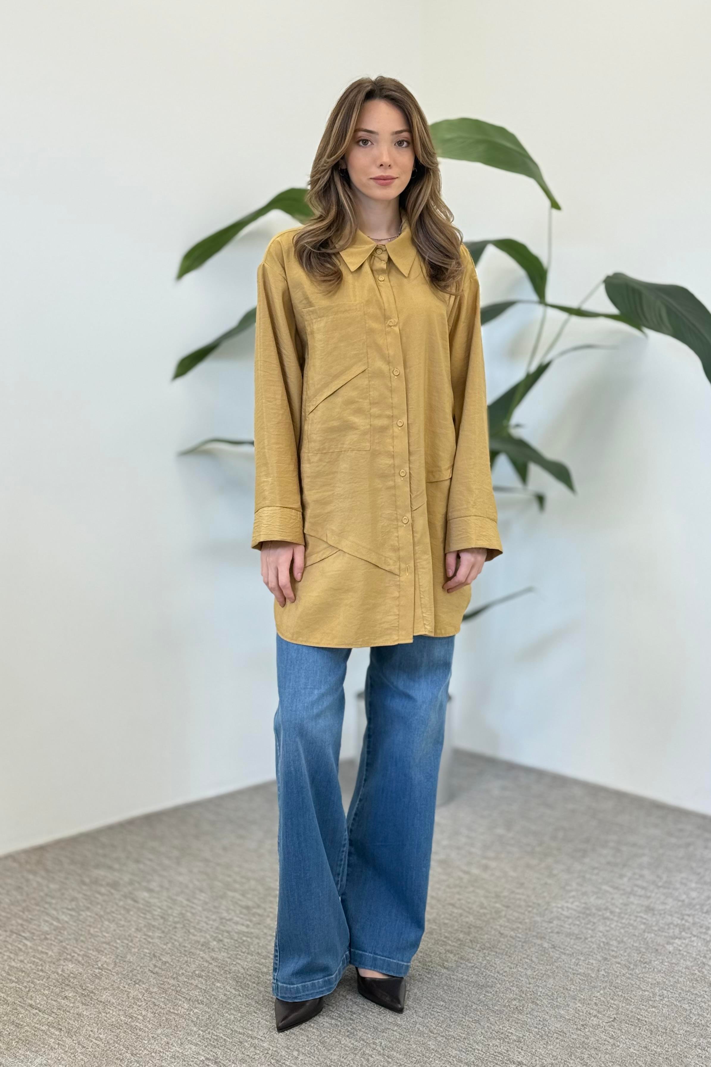 Ceremony 6148 Önden Düğmeli Uzun Cep Detaylı Tunik - Hardal