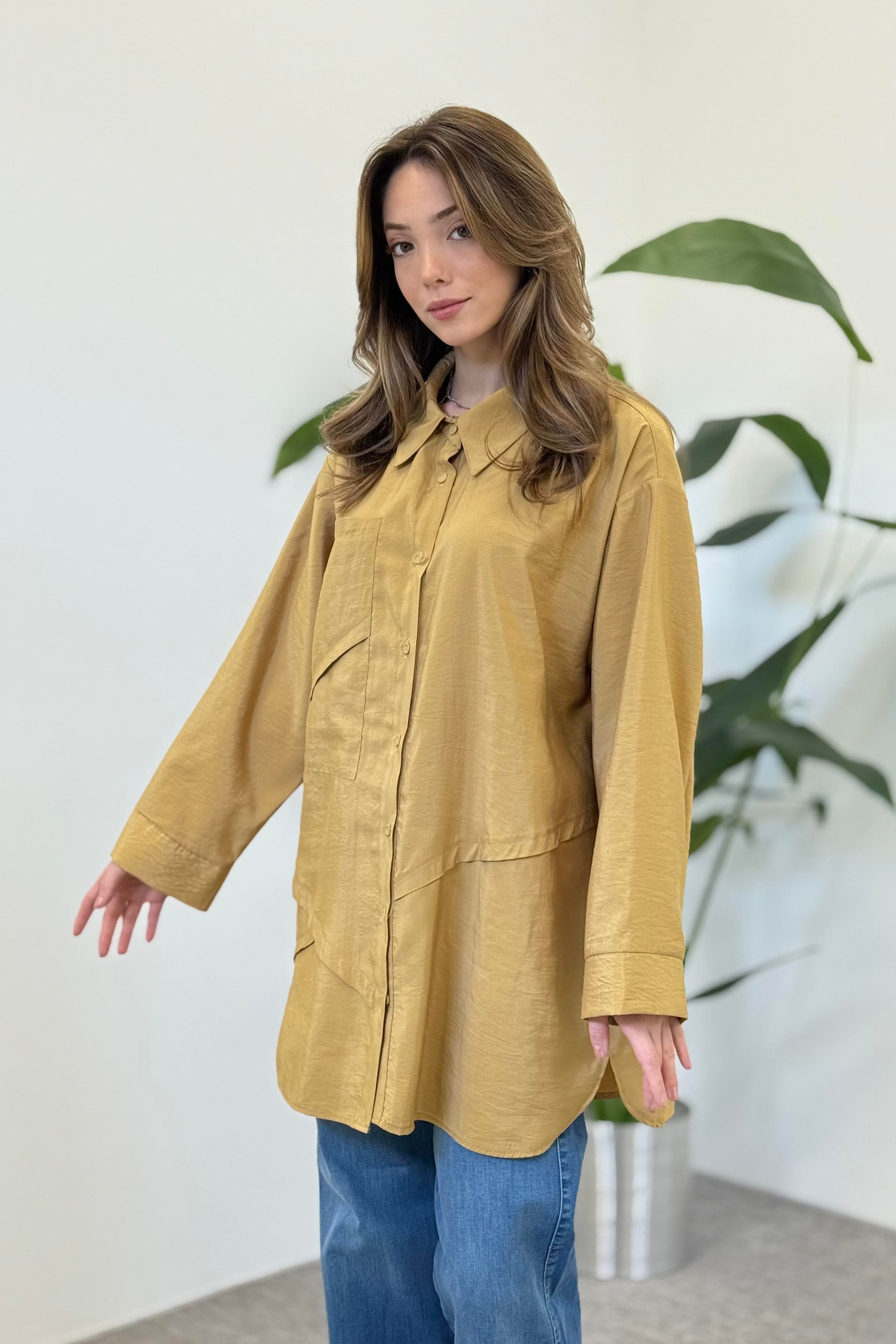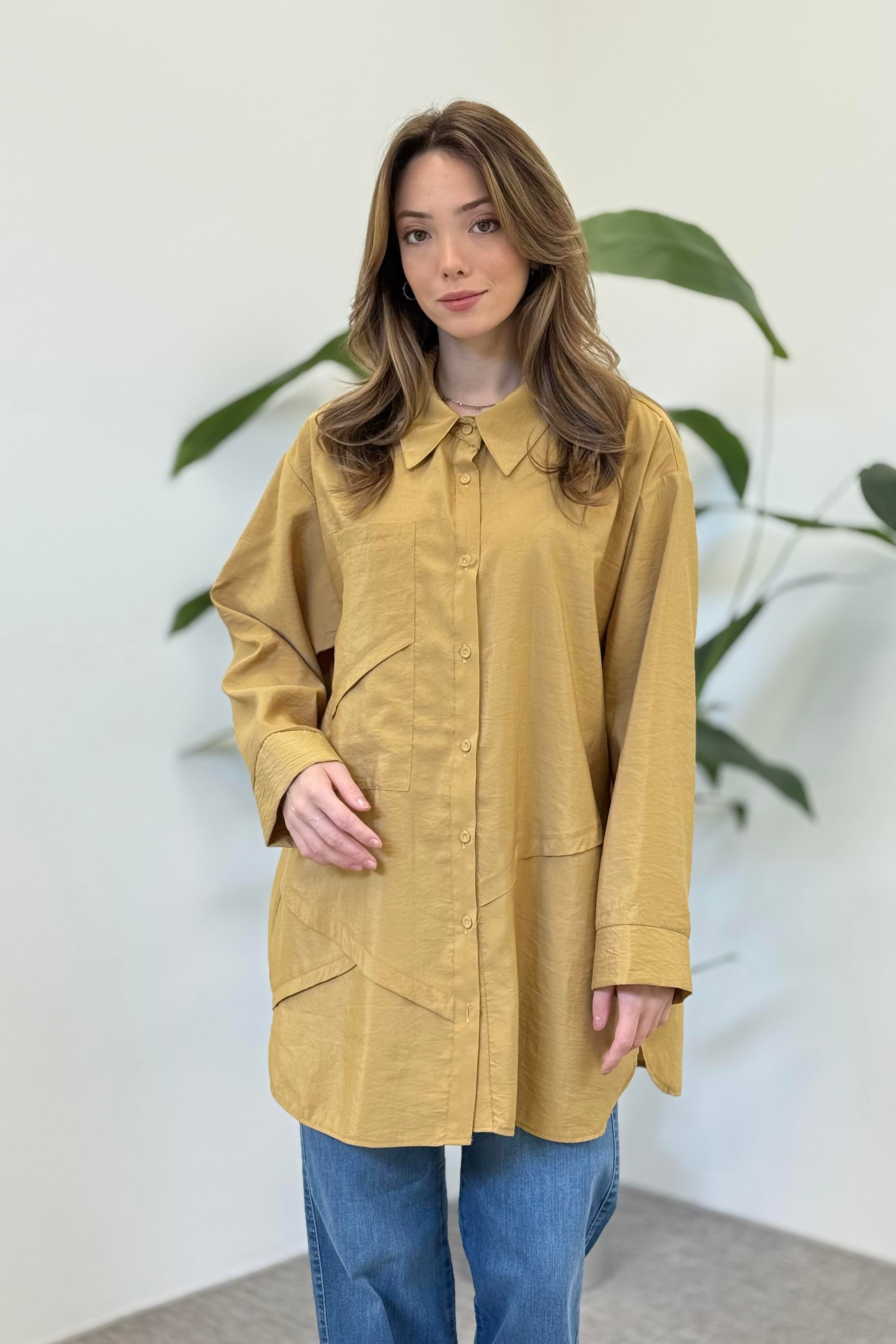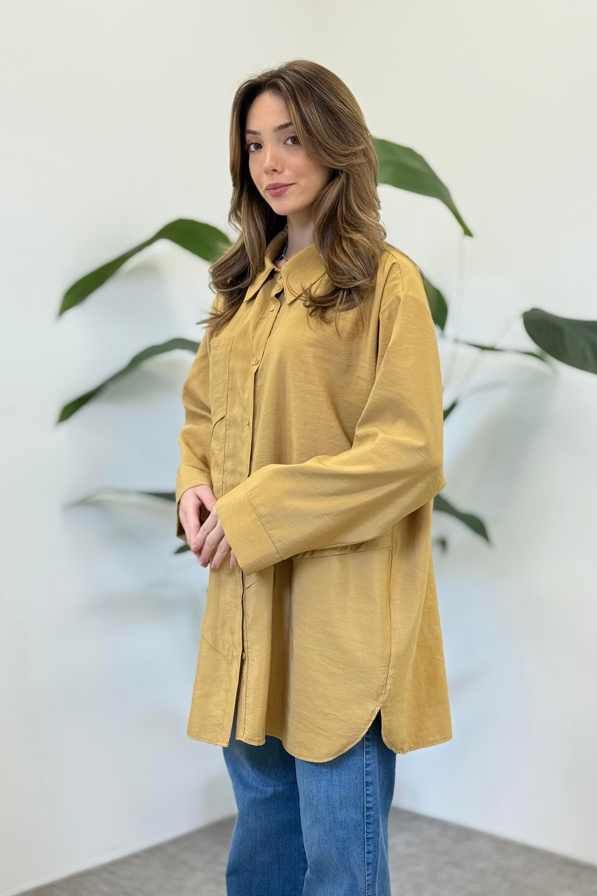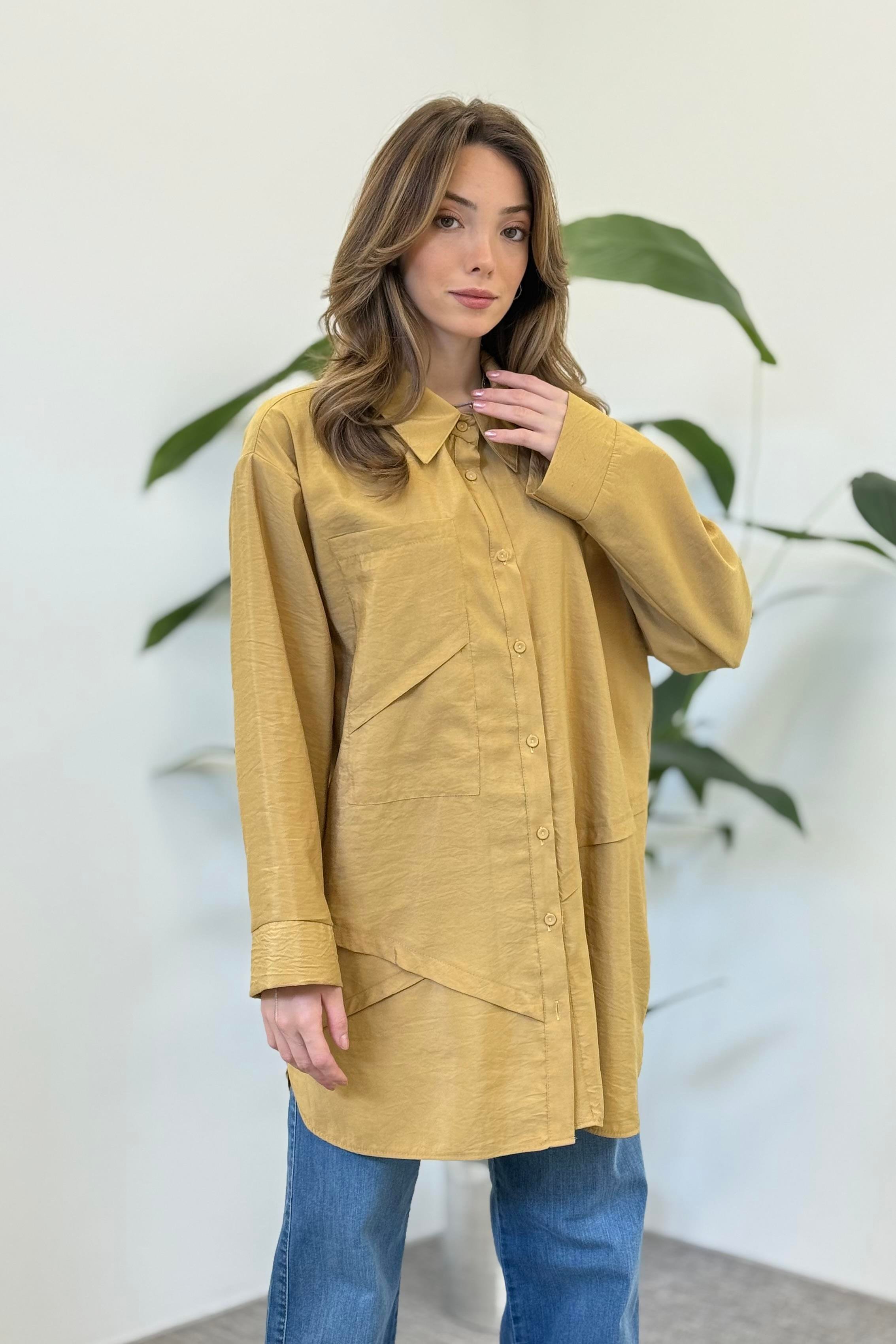 Ceremony 6148 Önden Düğmeli Uzun Cep Detaylı Tunik - Hardal