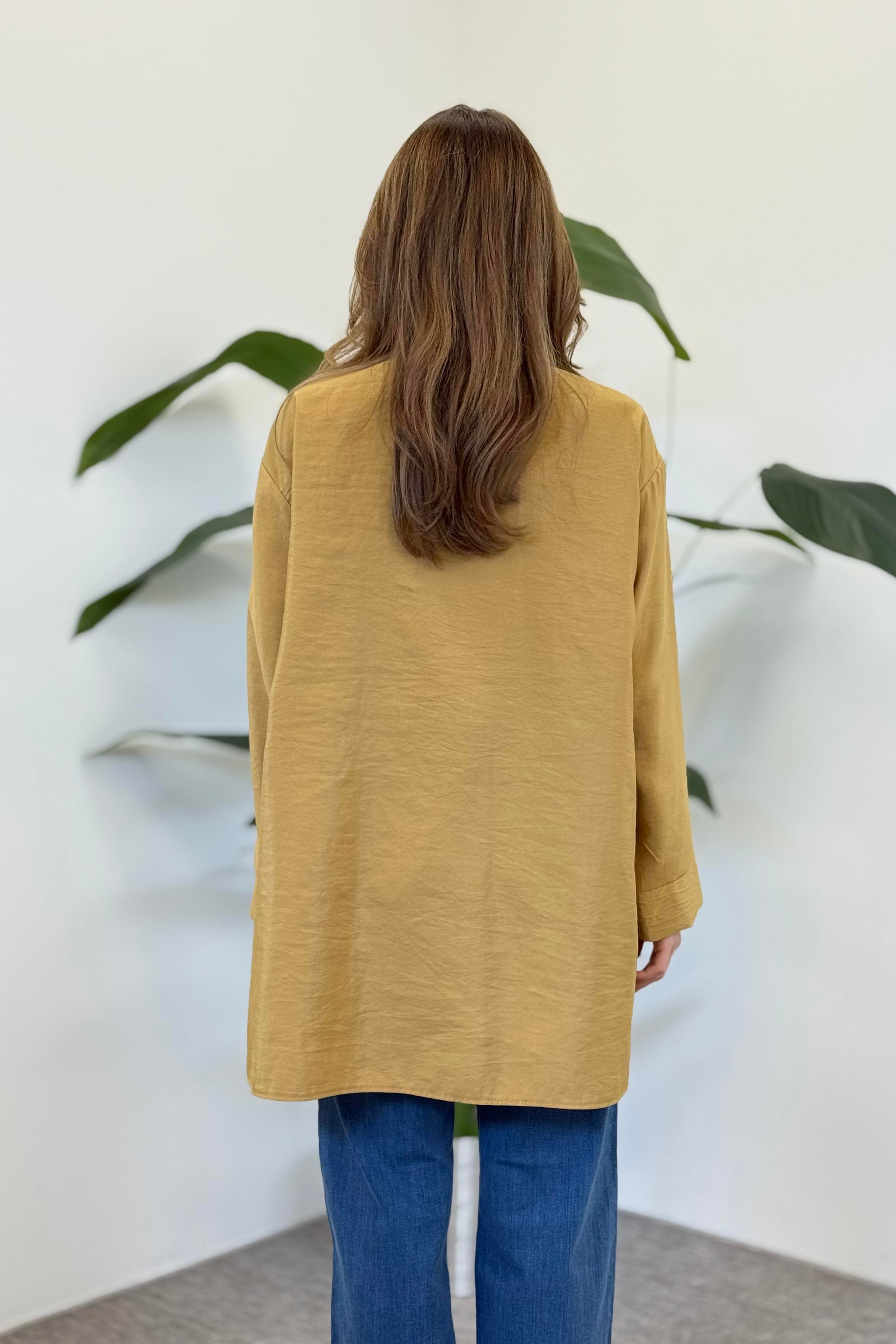 Ceremony 6148 Önden Düğmeli Uzun Cep Detaylı Tunik - Hardal (362144902)