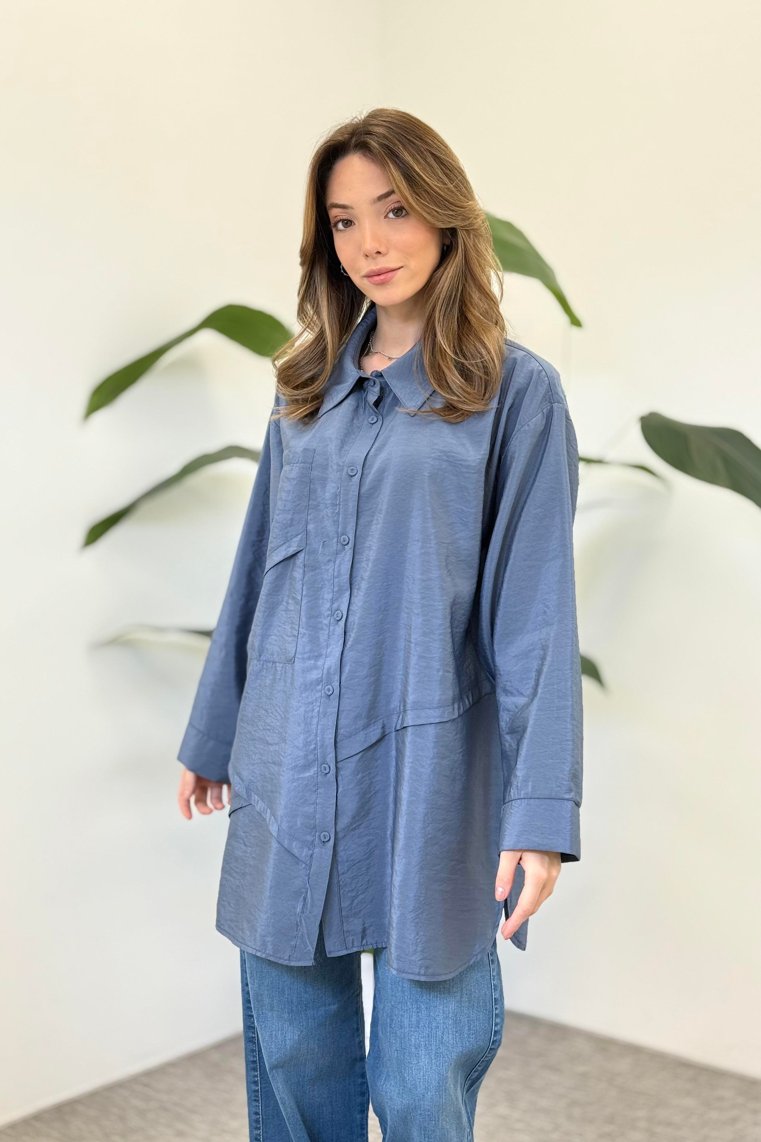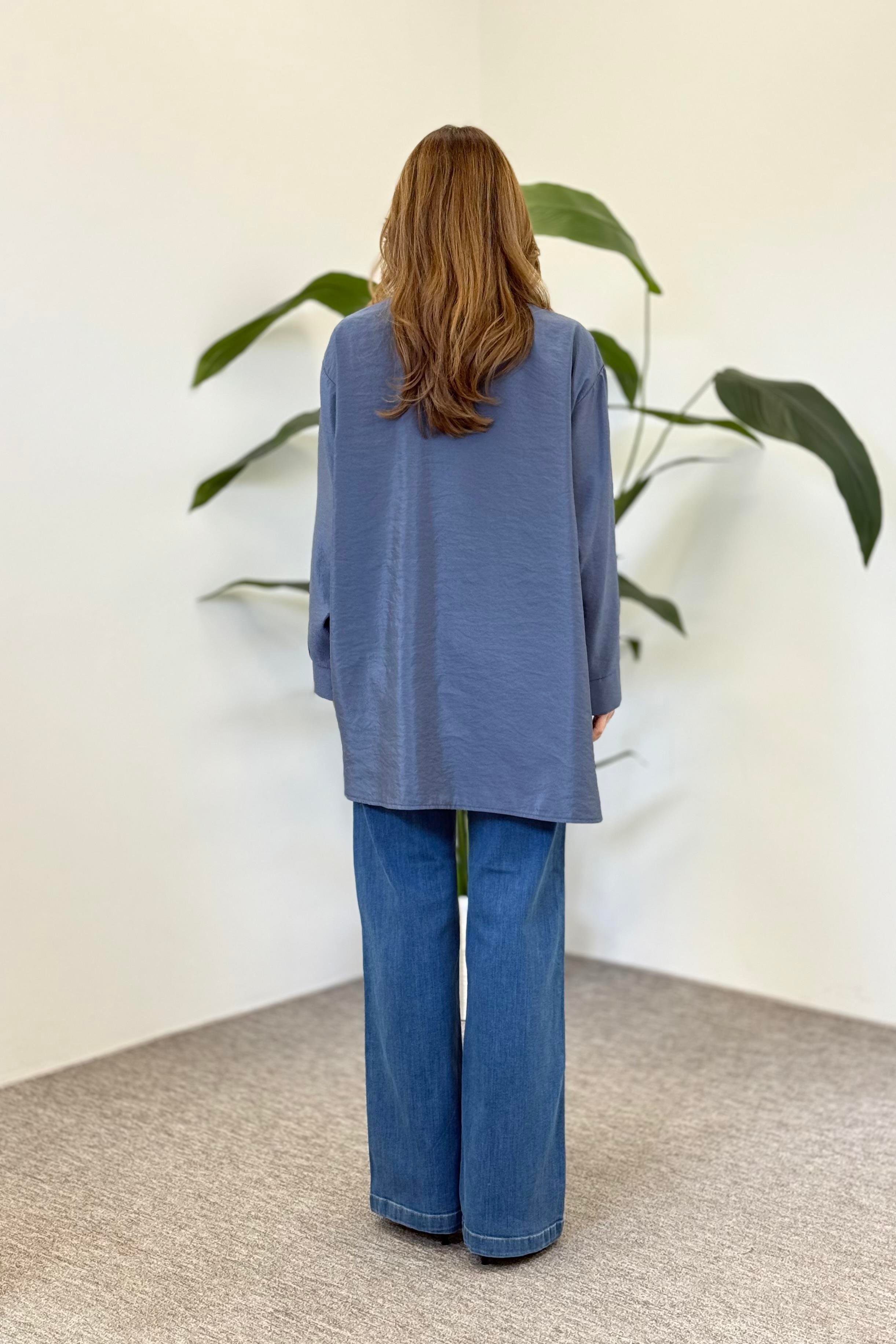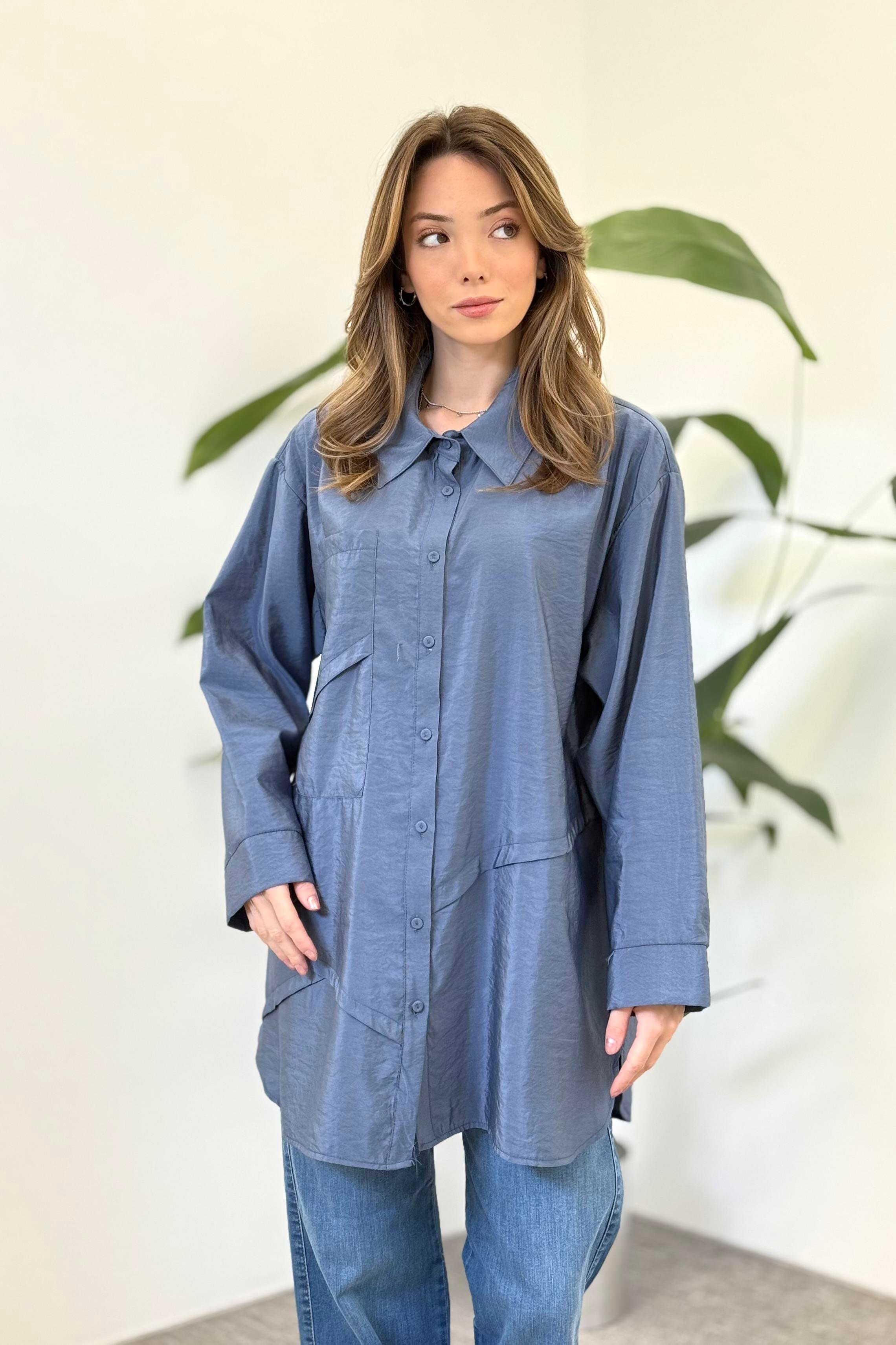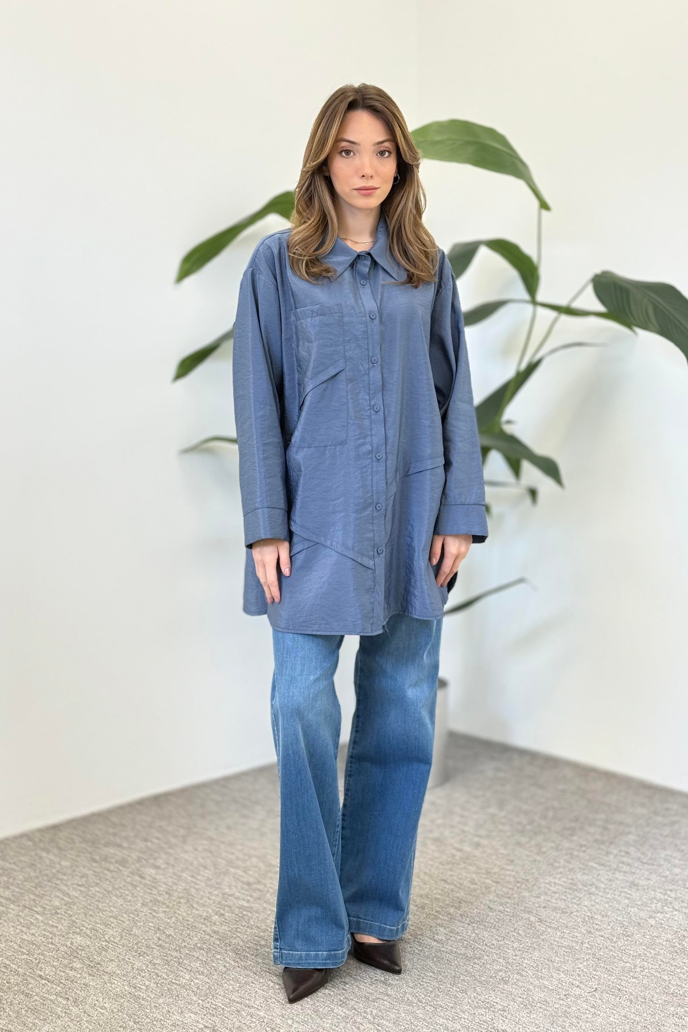 Ceremony 6148 Önden Düğmeli Uzun Cep Detaylı Tunik - İndigo