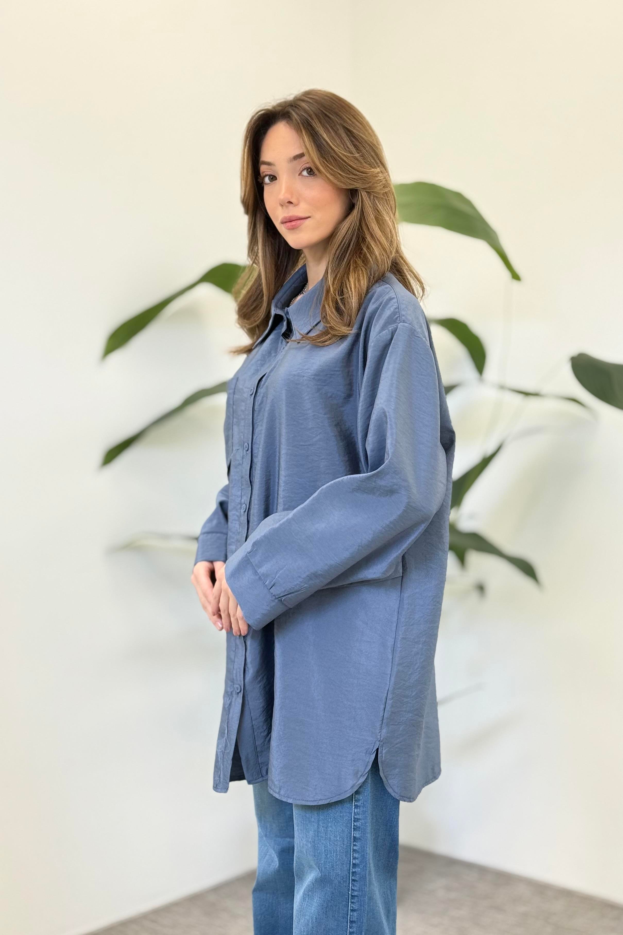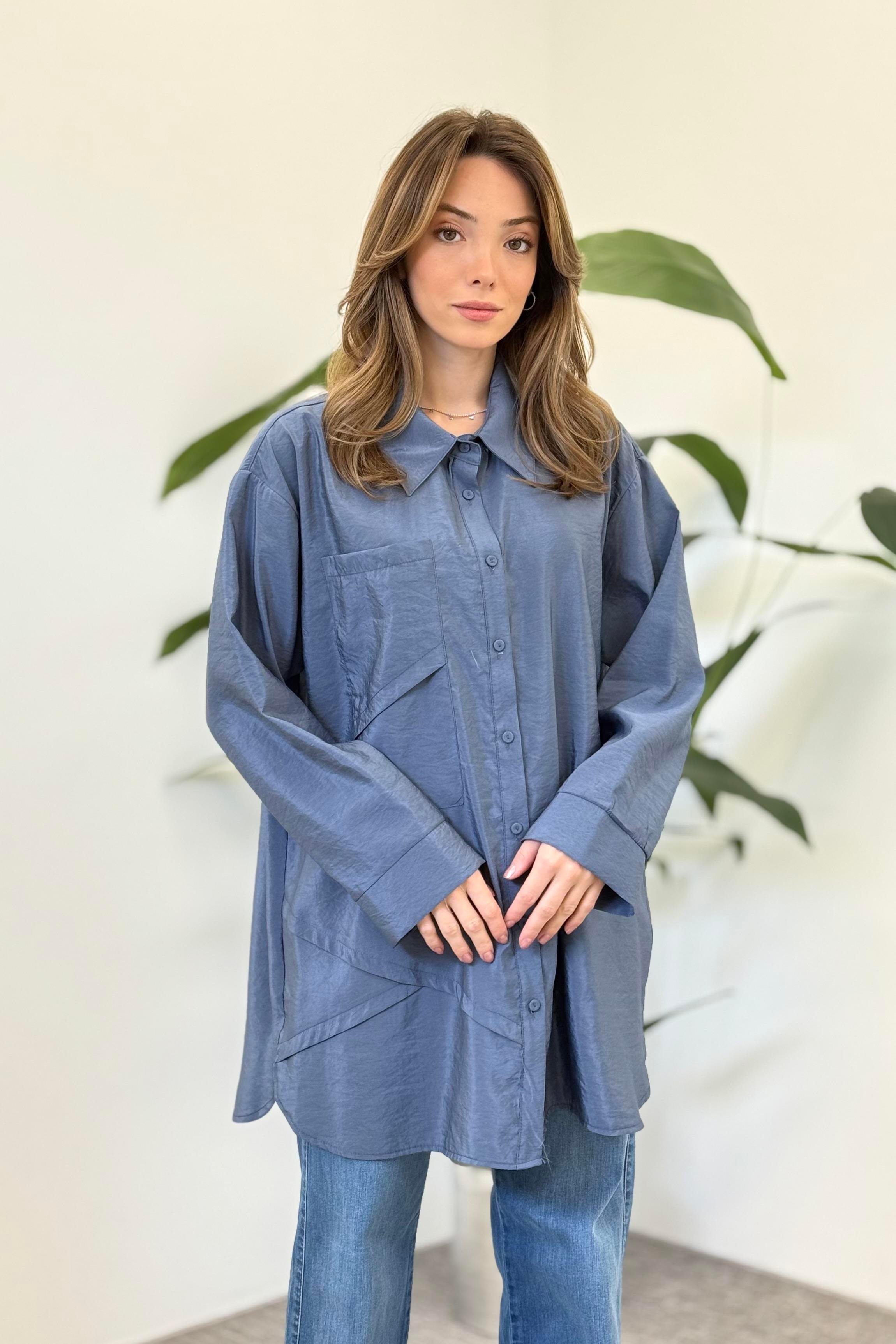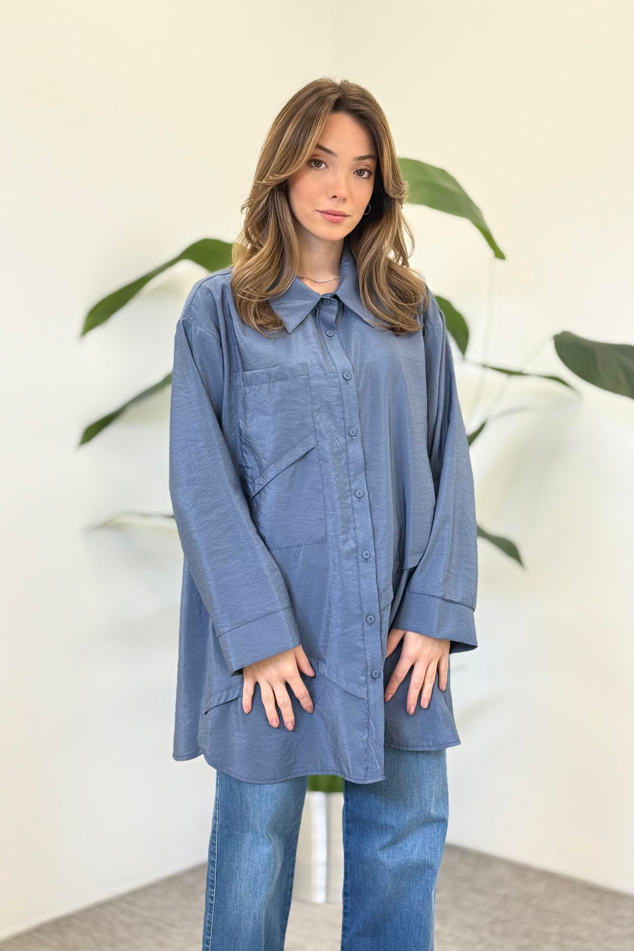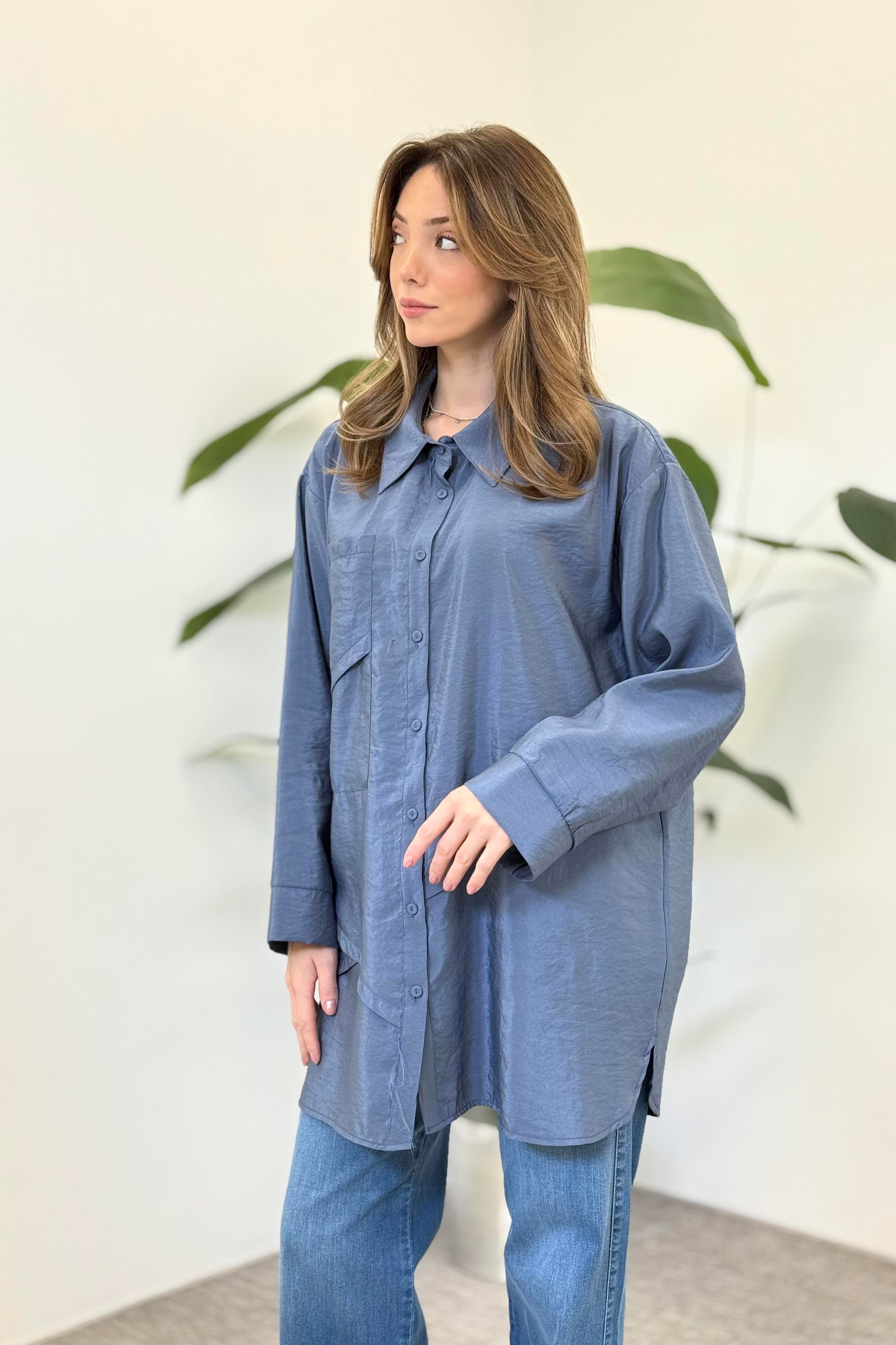 Ceremony 6148 Önden Düğmeli Uzun Cep Detaylı Tunik - İndigo