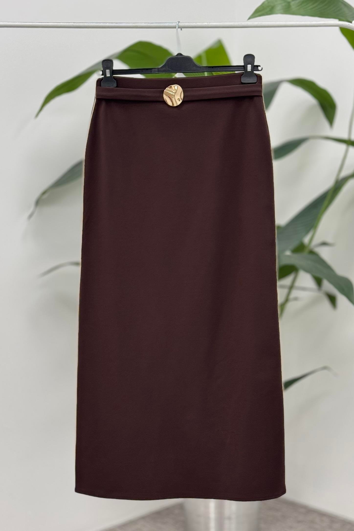 Ceremony 6617 Biye Detaylı Kemeri Gold Aksesuarlı Çelik Etek - Kahverengi