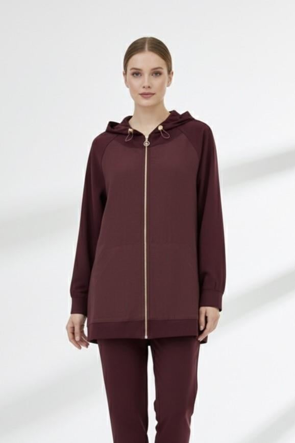 Ceremony 6865 Önden Fermuarlı Kapüşonlu Kap - Bordo