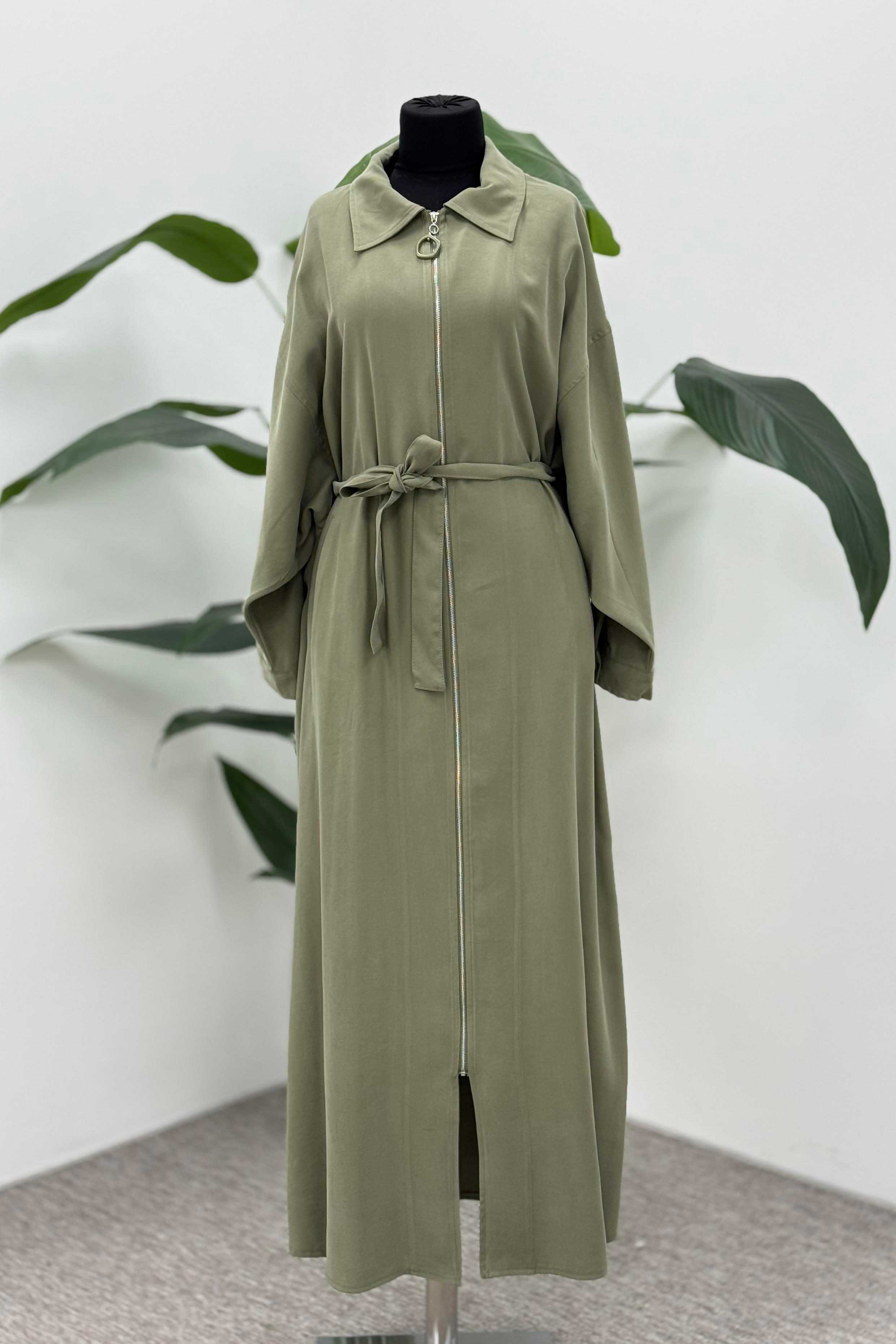 Ceremony 6881 Önden Fermuarlı  Taş Detay İçten Kemerli Kap - Haki