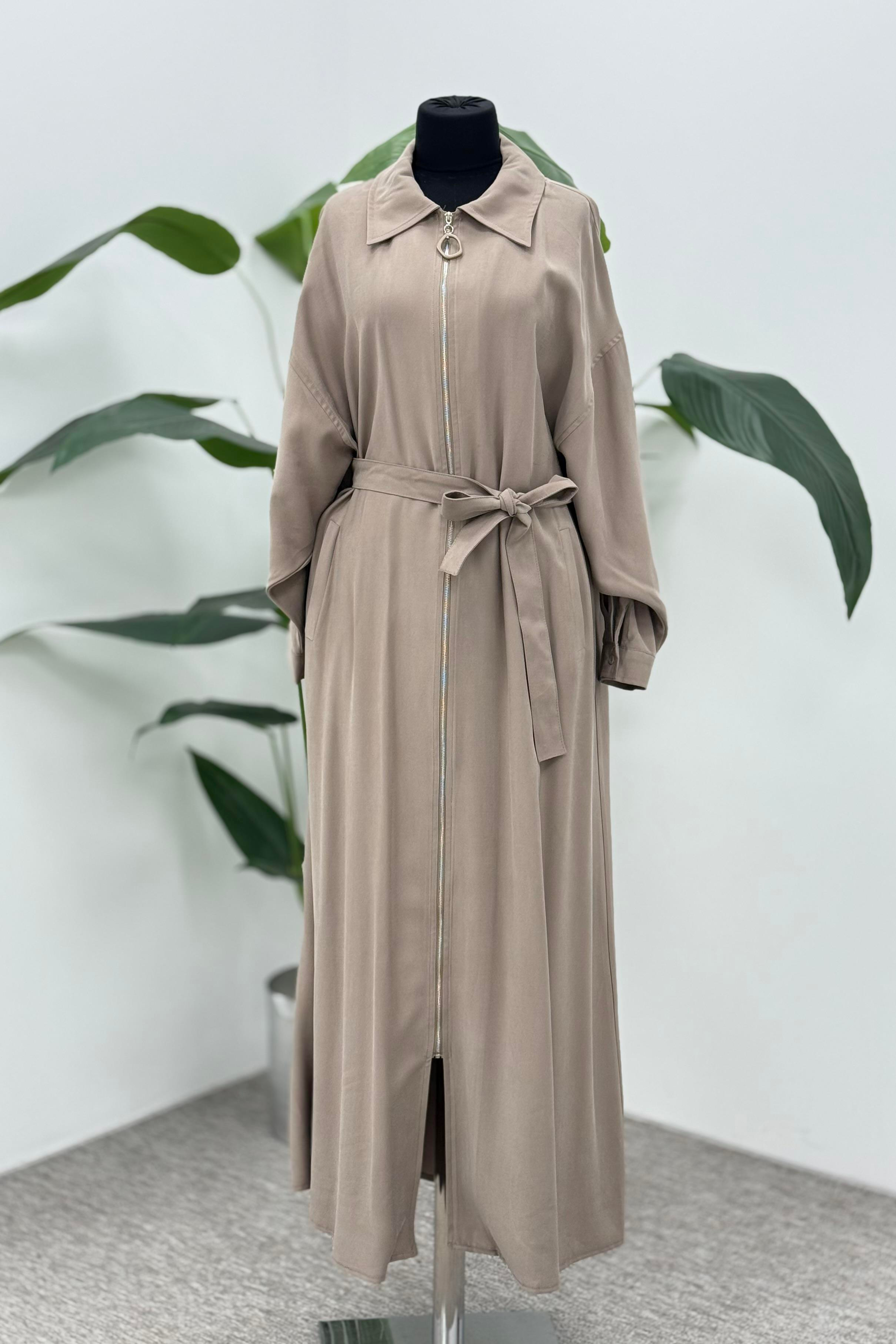 Ceremony 6881 Önden Fermuarlı Taş Detay İçten Kemerli Kap - Vizon (378144915)