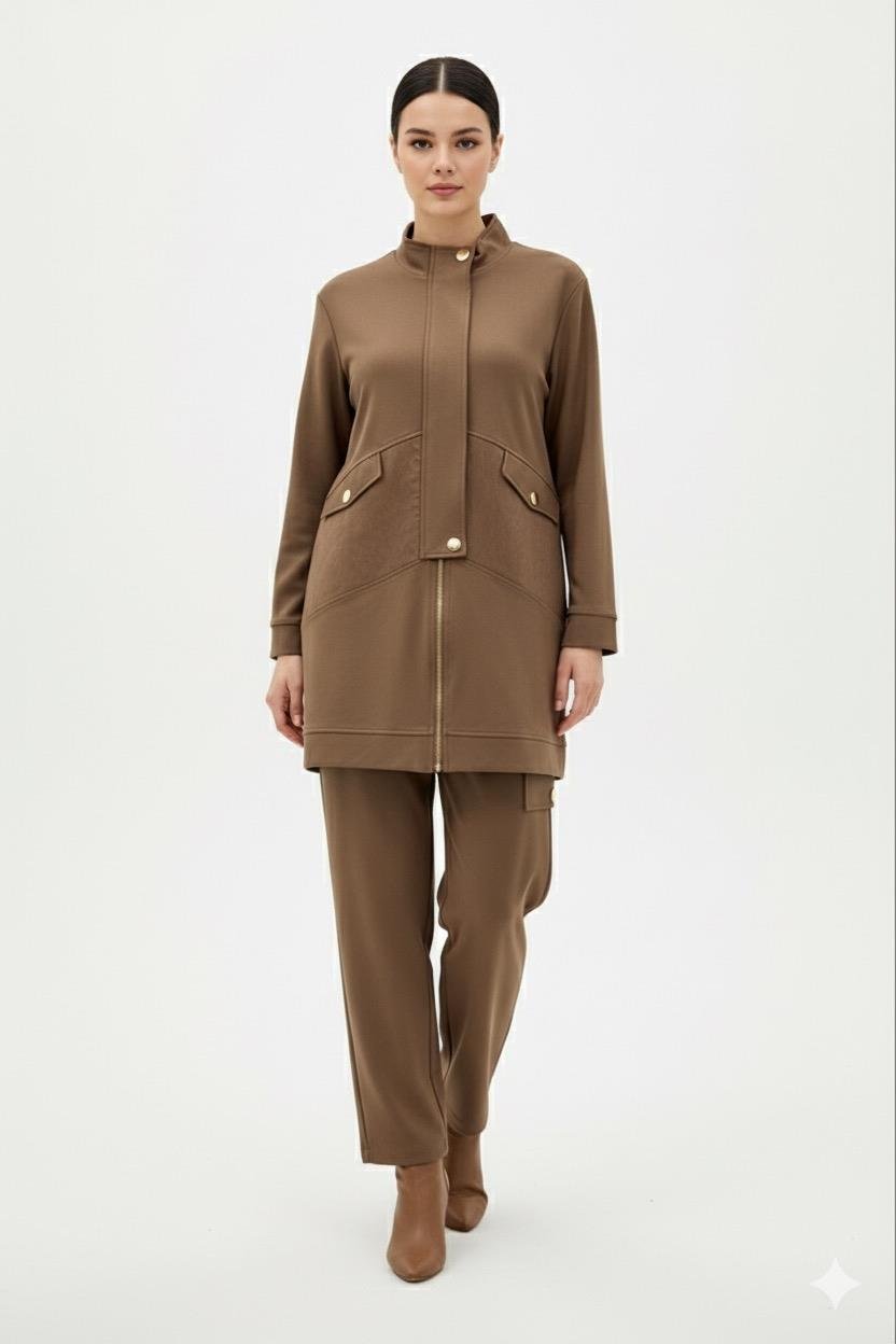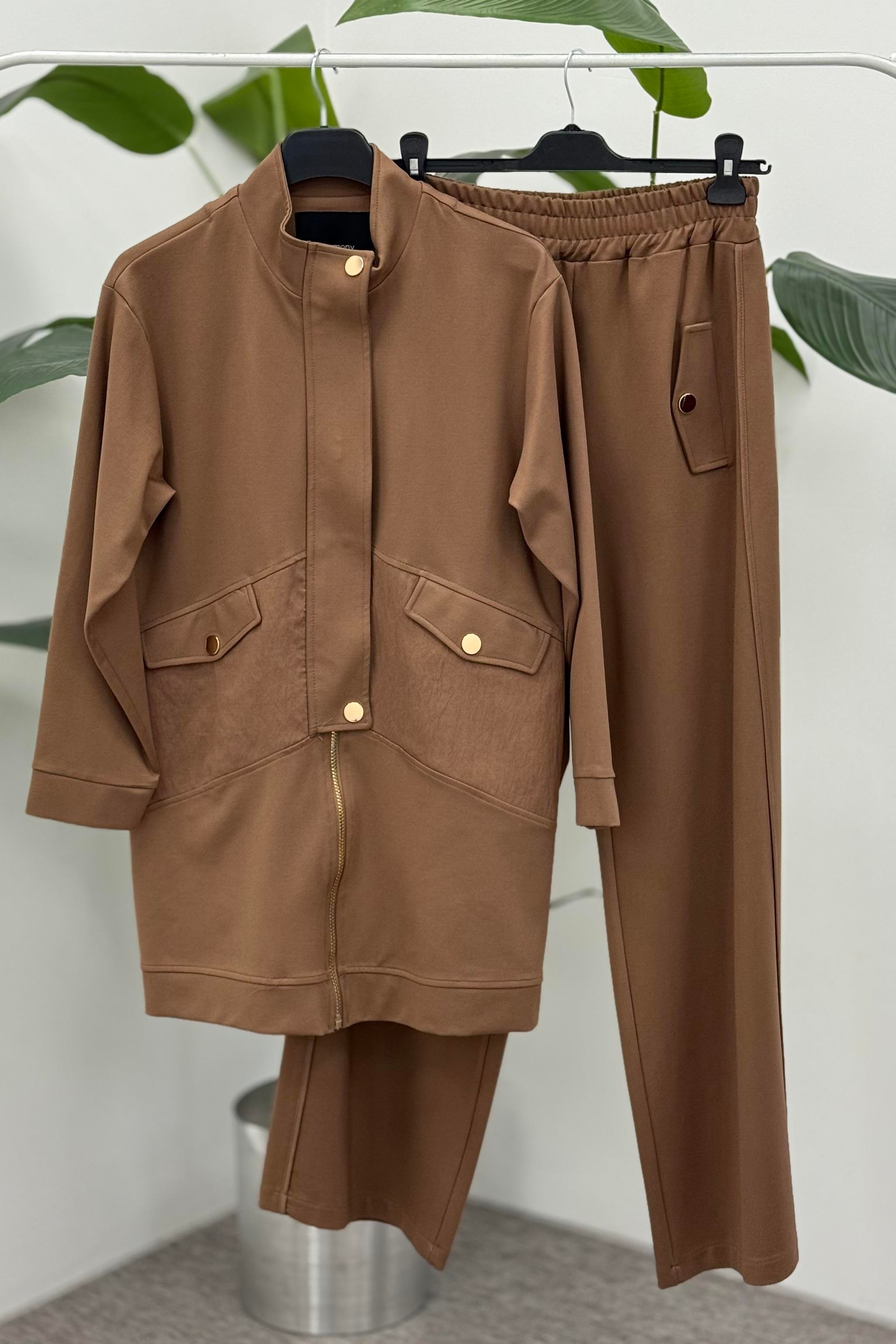 Ceremony 6921 Önden Fermuarlı Yarım Patlı Çelik Takım - Camel