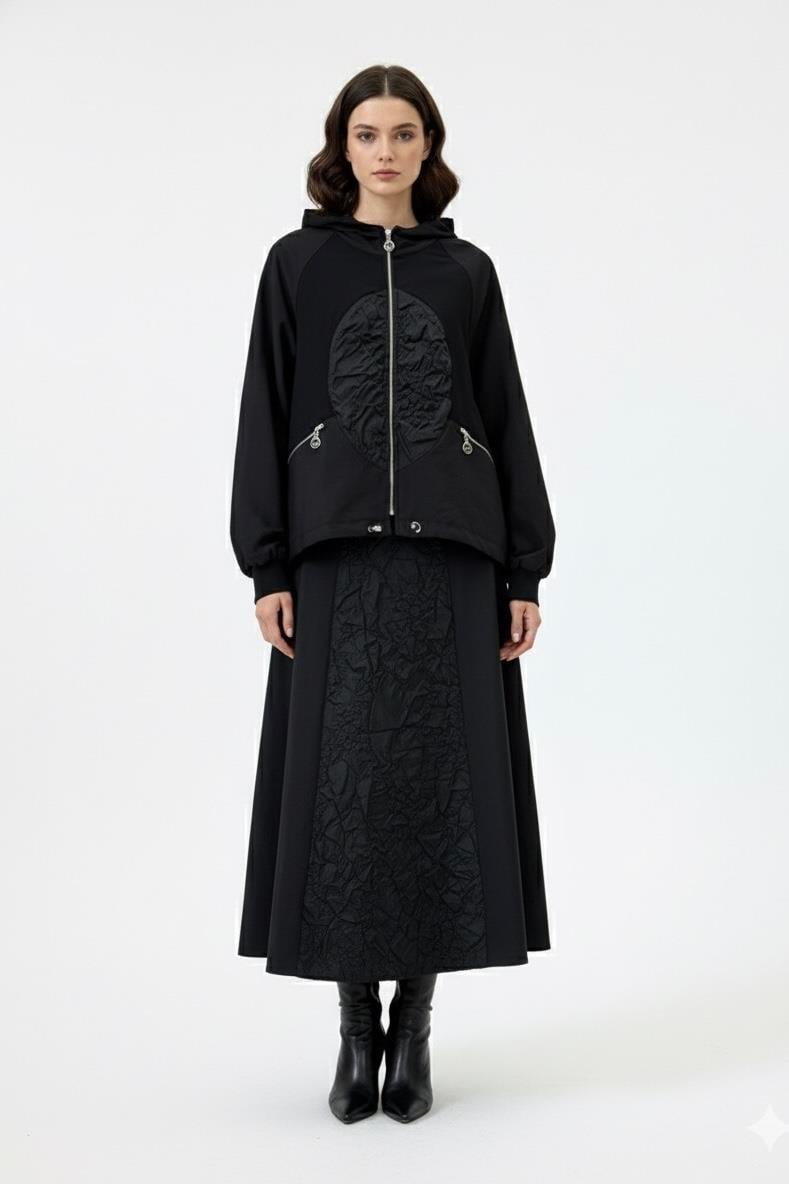 Ceremony 6924 Fermuar Detaylı Ceketli Etekli Star Takım - Siyah