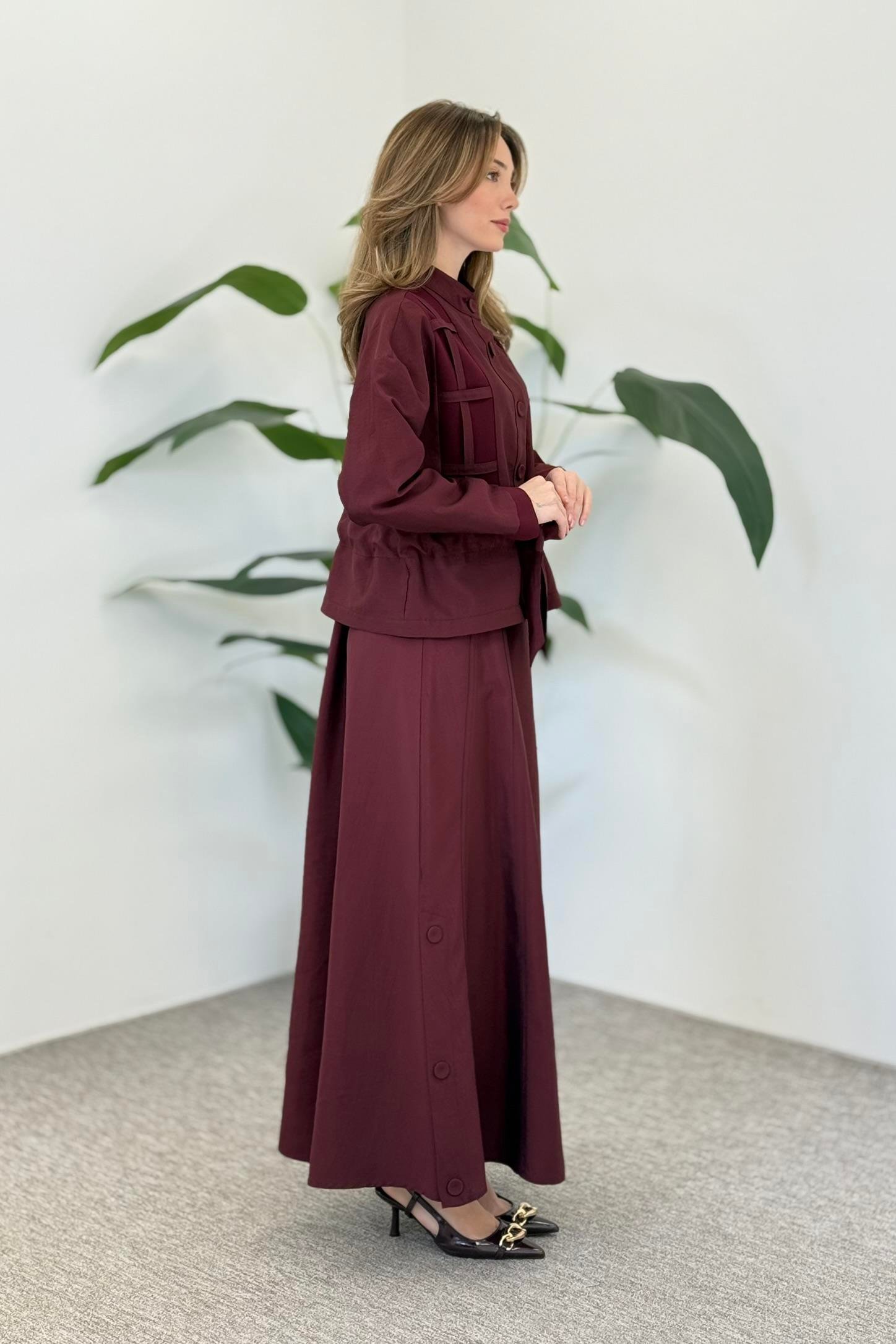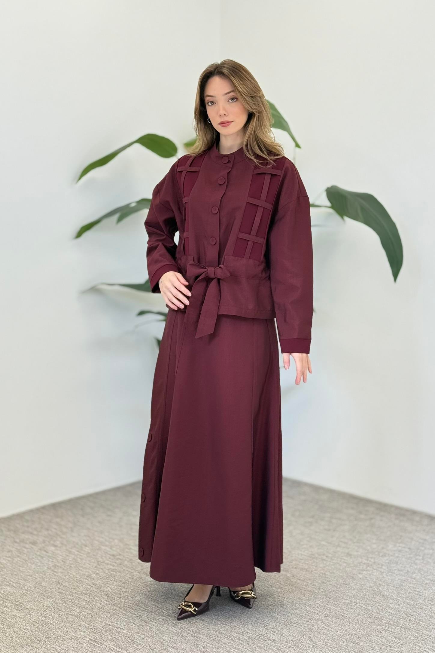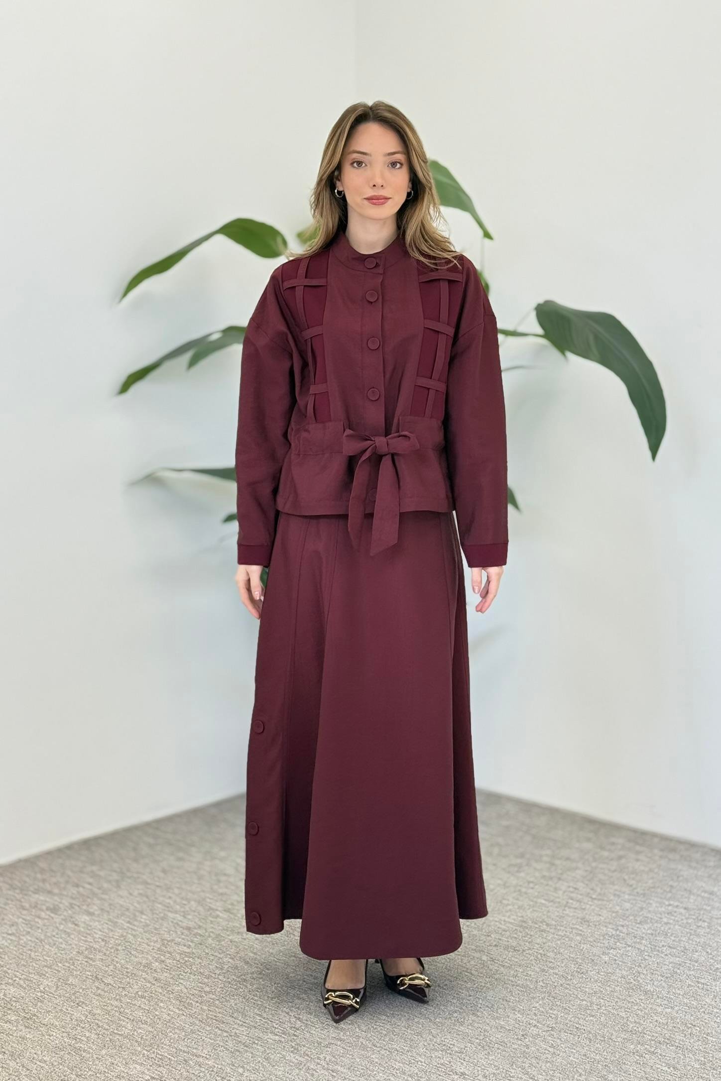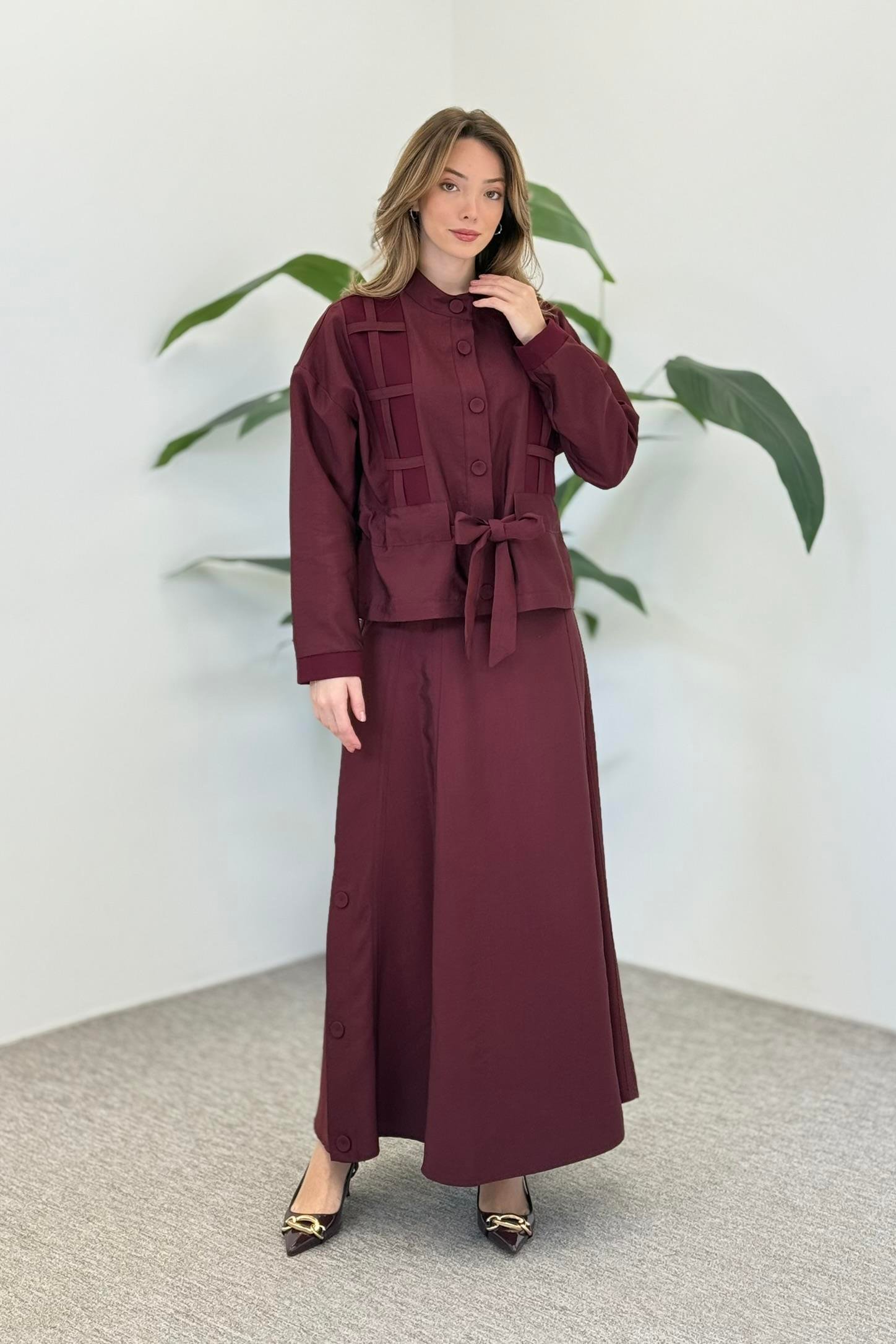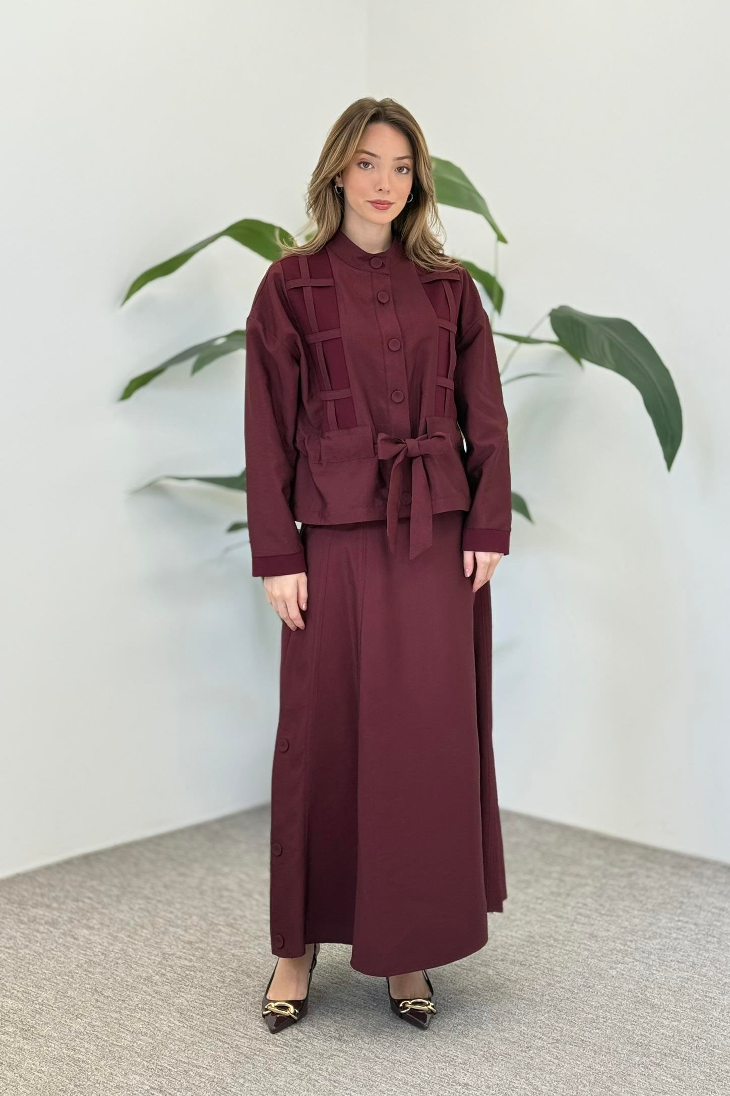 Ceremony 6930 Ceketi Kafes Detaylı Etek Yanı Düğmeli Takım - Mürdüm (350144909)