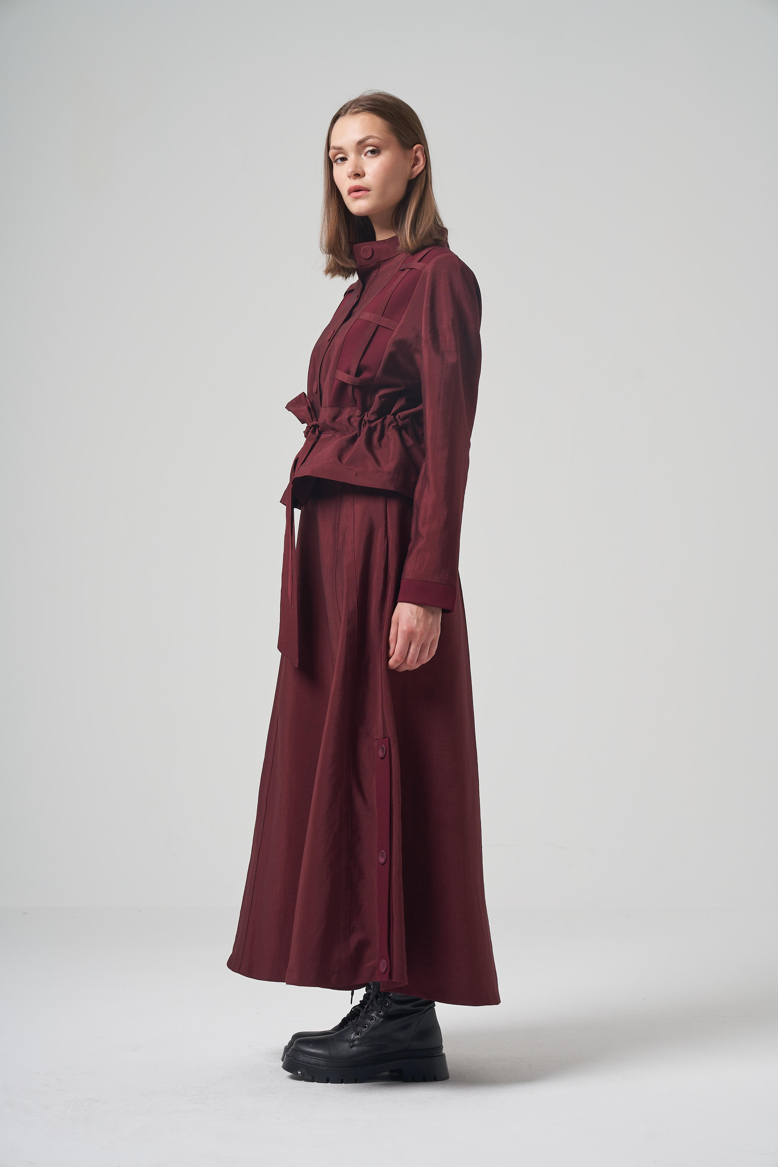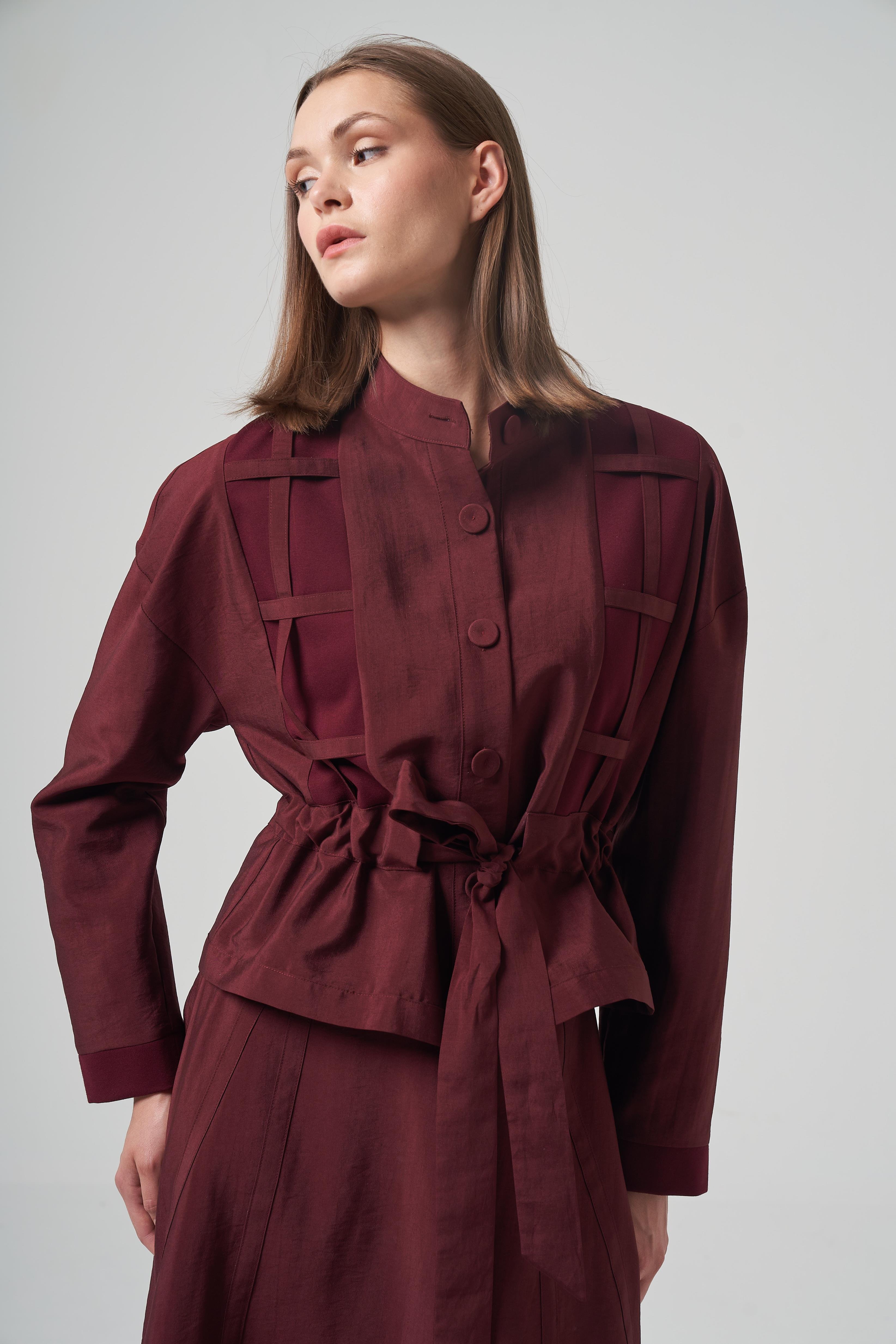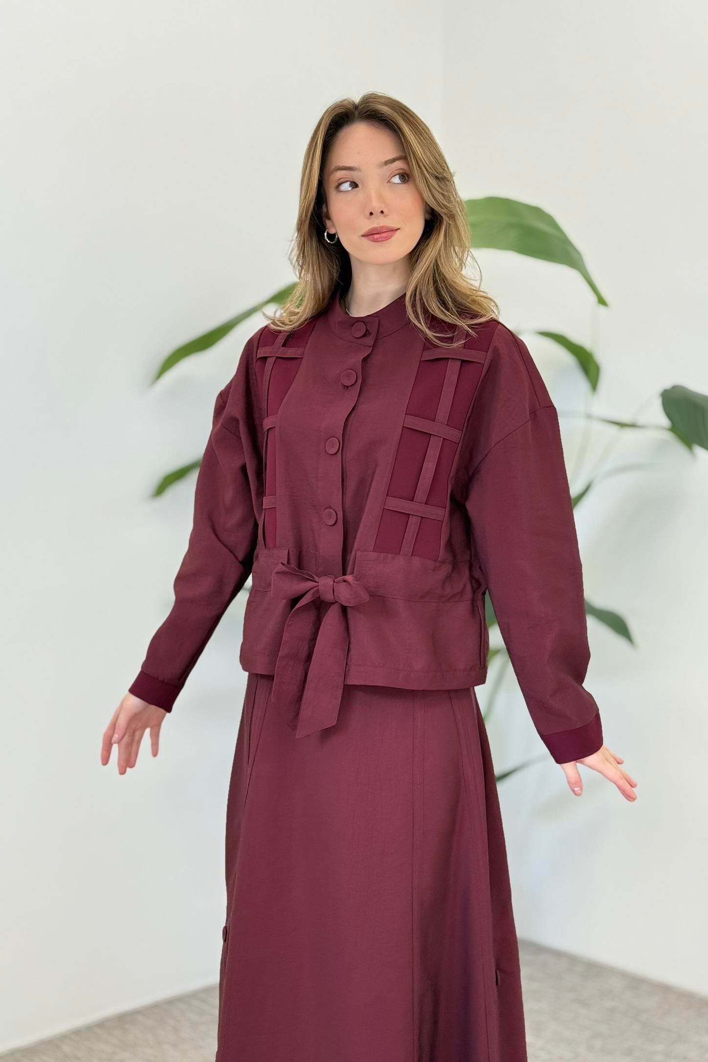 Ceremony 6930 Ceketi Kafes Detaylı Etek Yanı Düğmeli Takım - Mürdüm